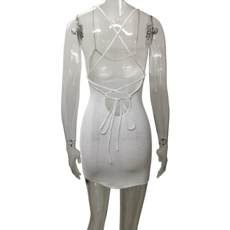 2025Cryptographic Knitted Sexy Backless Strapless Mini Dress for Women Elegant