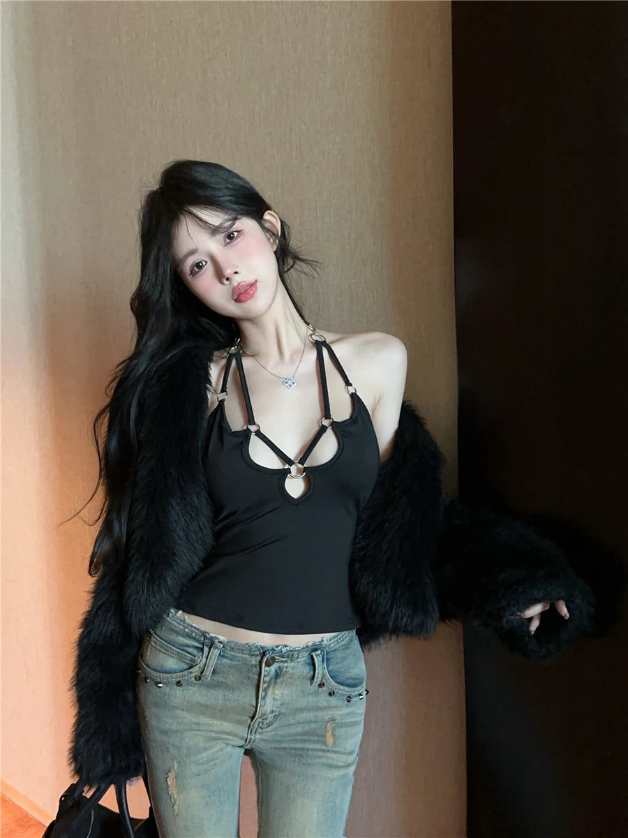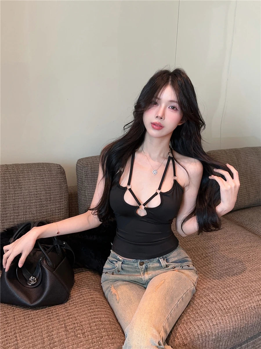 2025Pure Sexy Girl Camisole Top Women s Summer Hollow Slim Fit Halter Neck Strap
