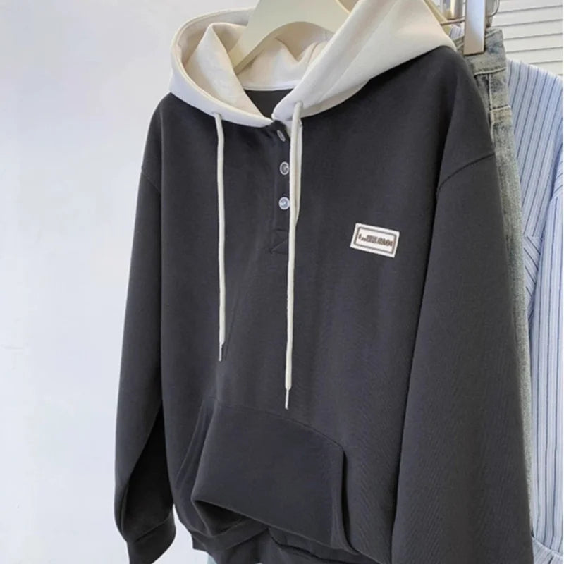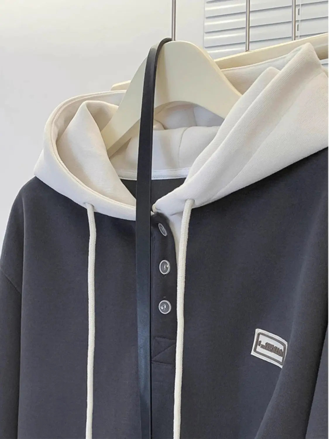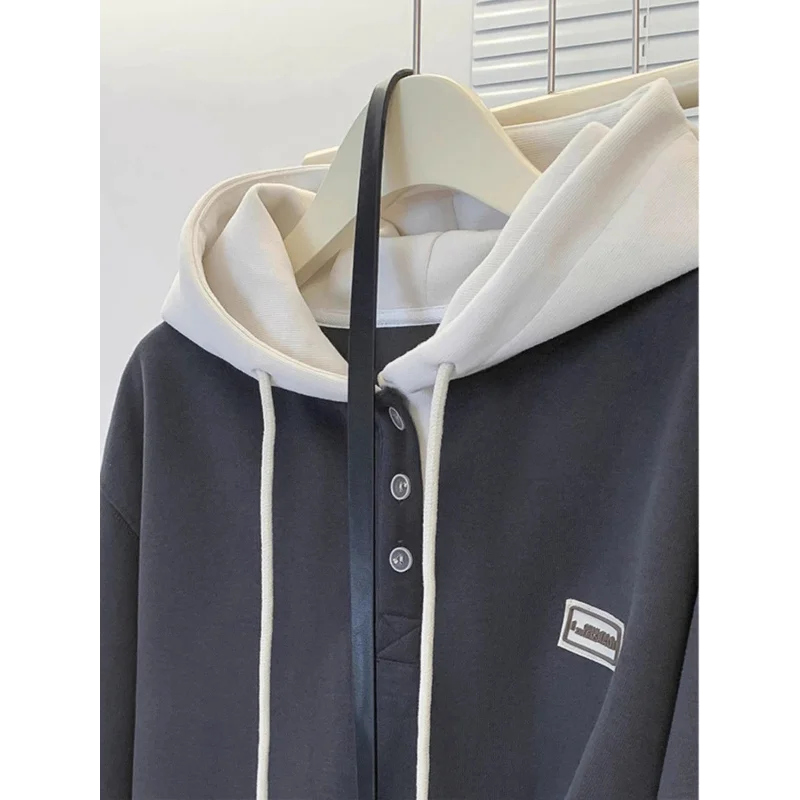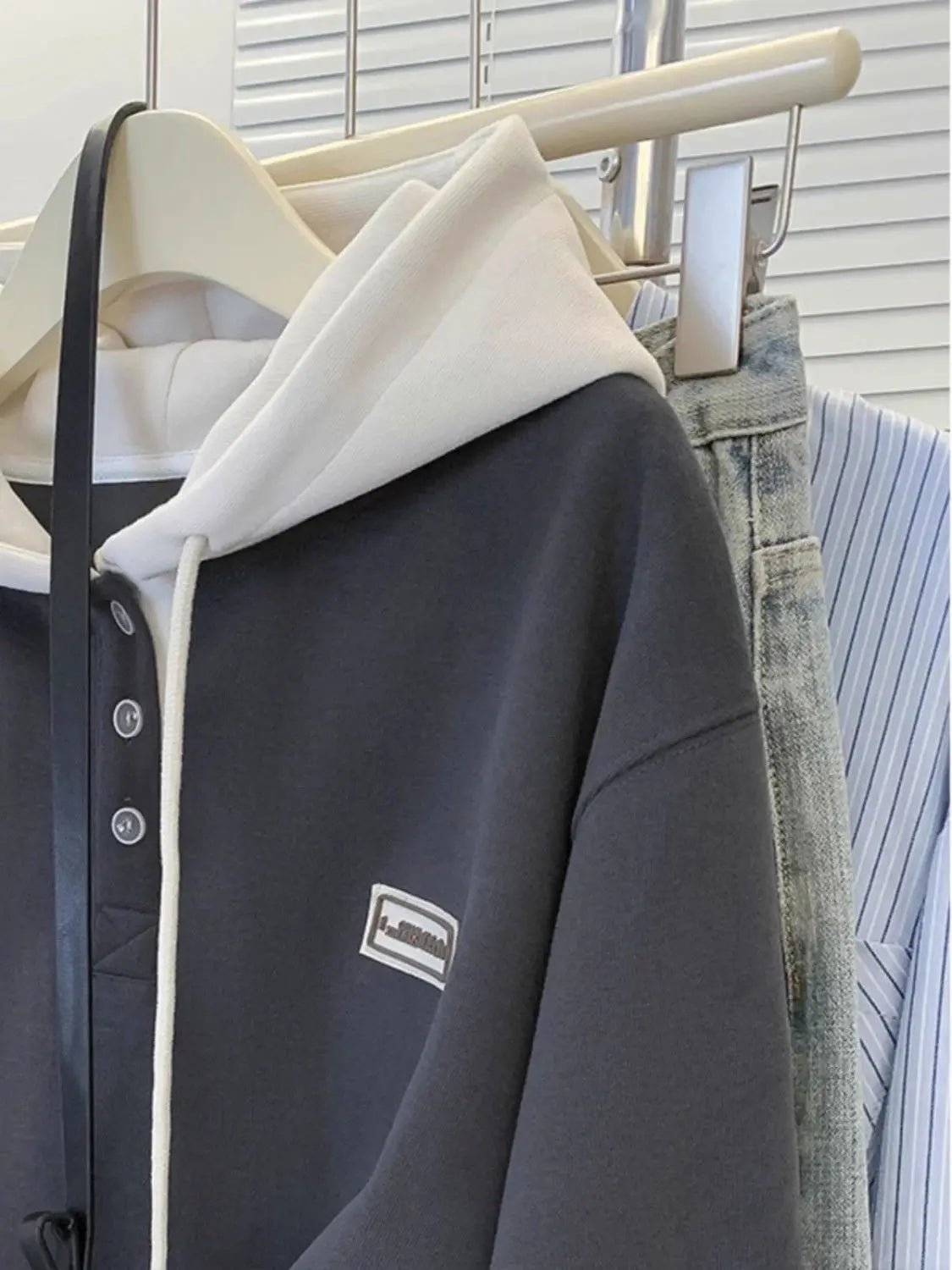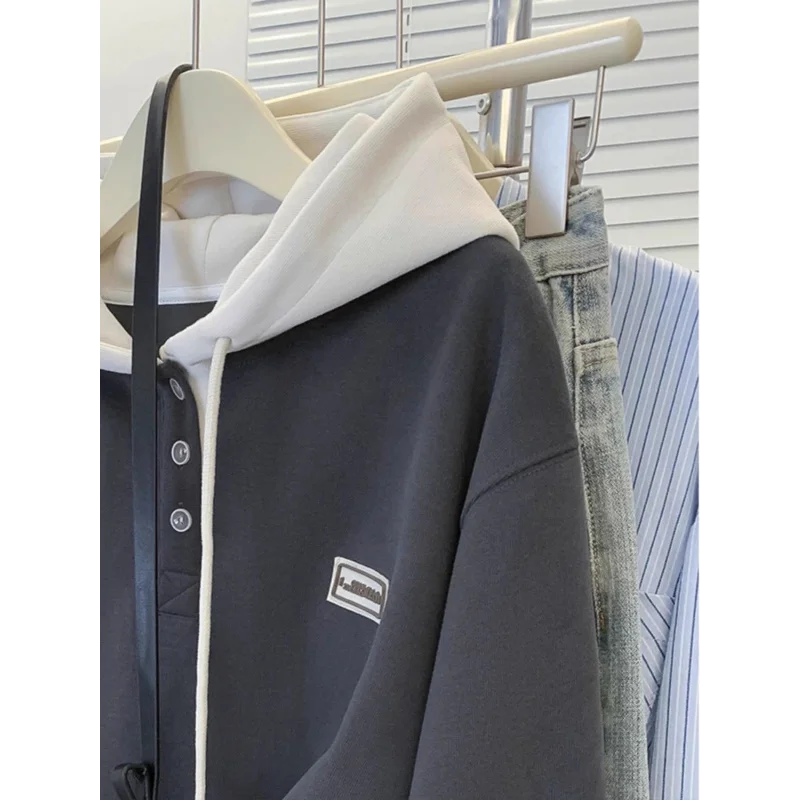 American Retro Splicing Contrasting Versatile Hooded Sweatshirt Women in Autu...