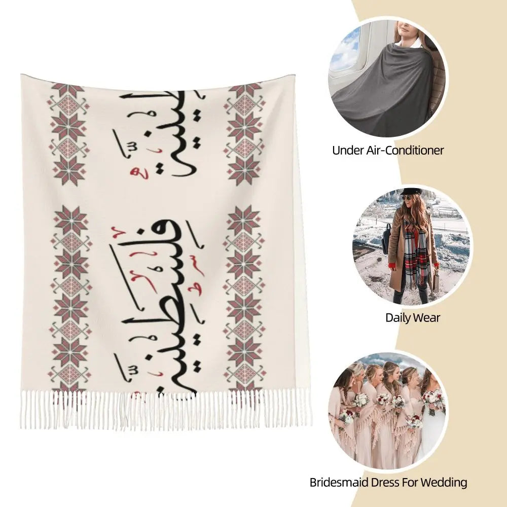 Arabic Folk Kufiya Hatta Traditional Keffiyeh Shawl Wrap for Ladies Winter Warm Large Soft Scarf Neckerchief Tassel Scarves