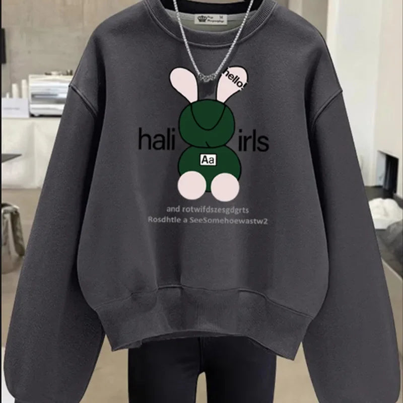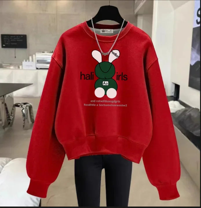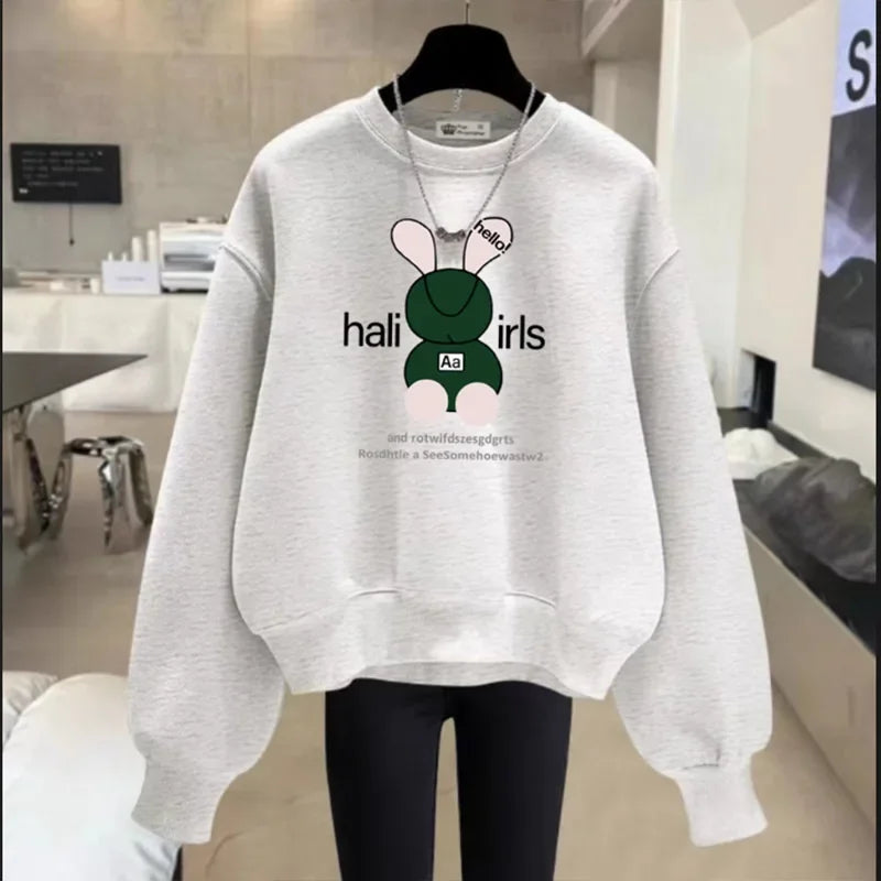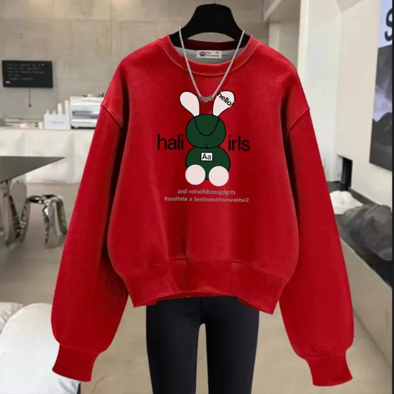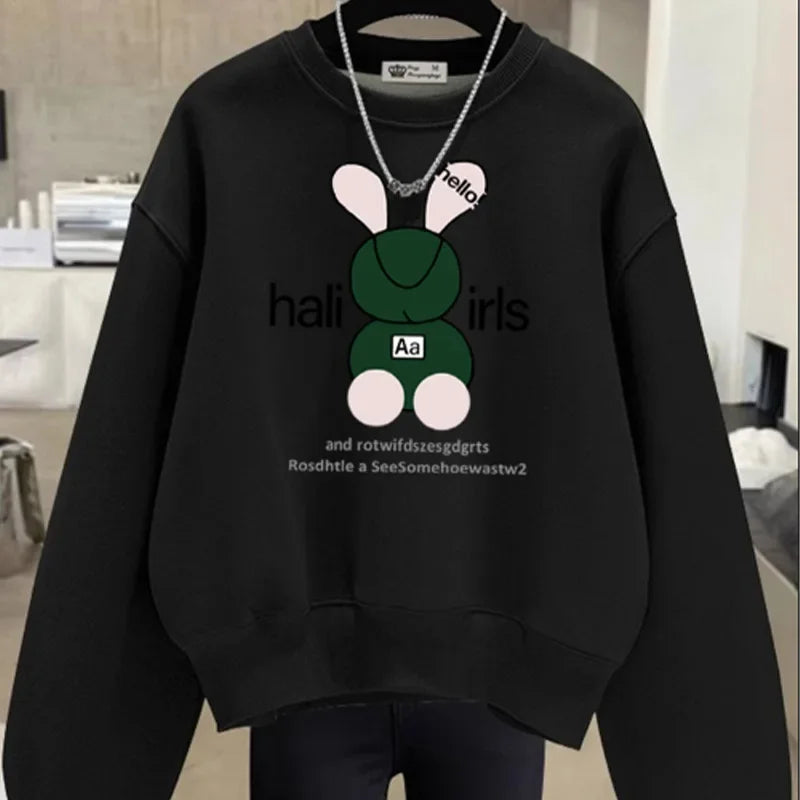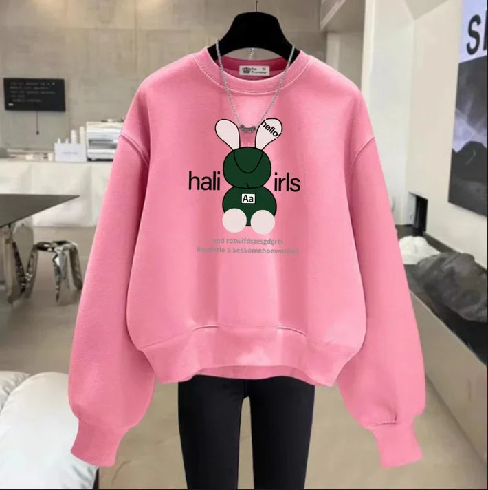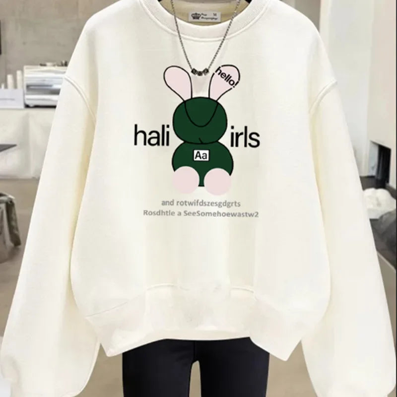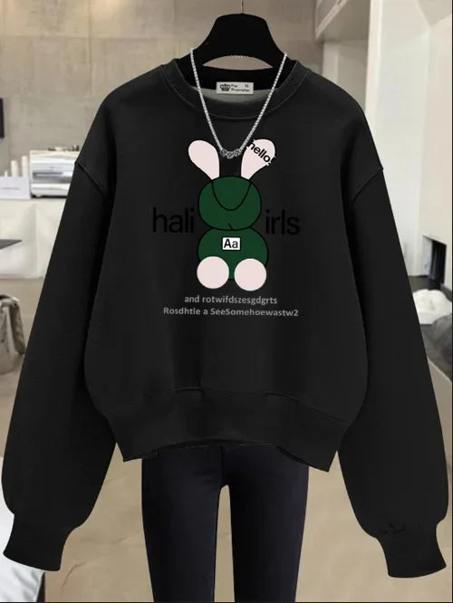 Autumn Winter Fashion Rabbit Printed Hoodies Vintage Chic Loose Long Sleeve