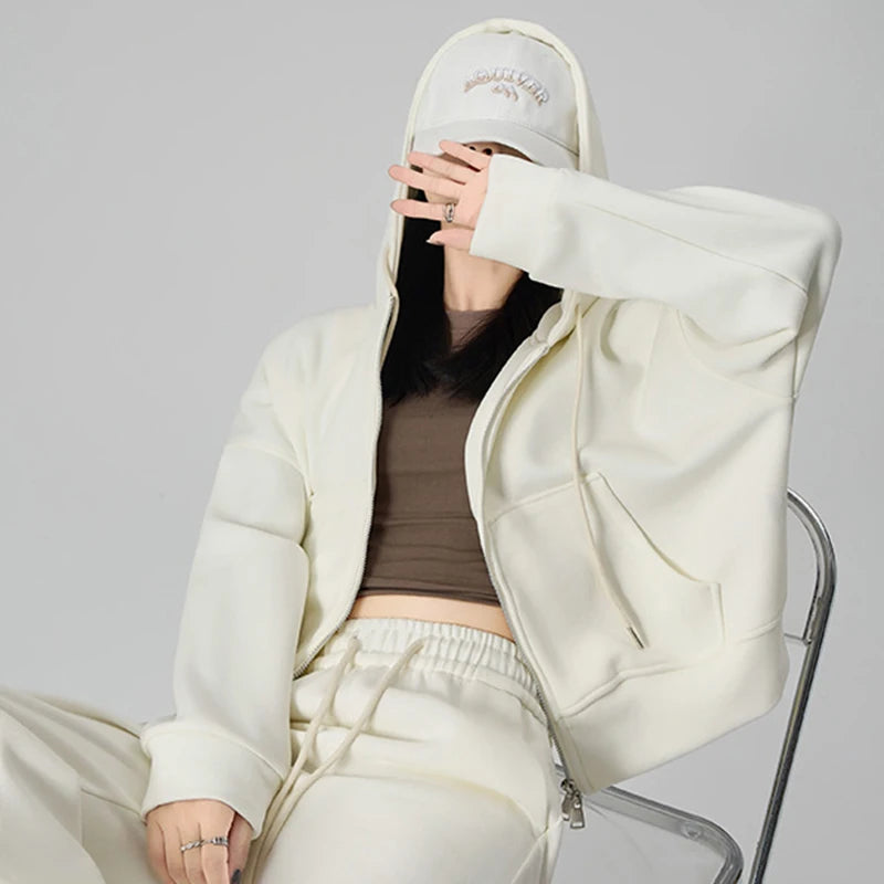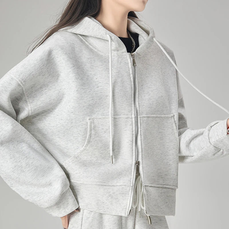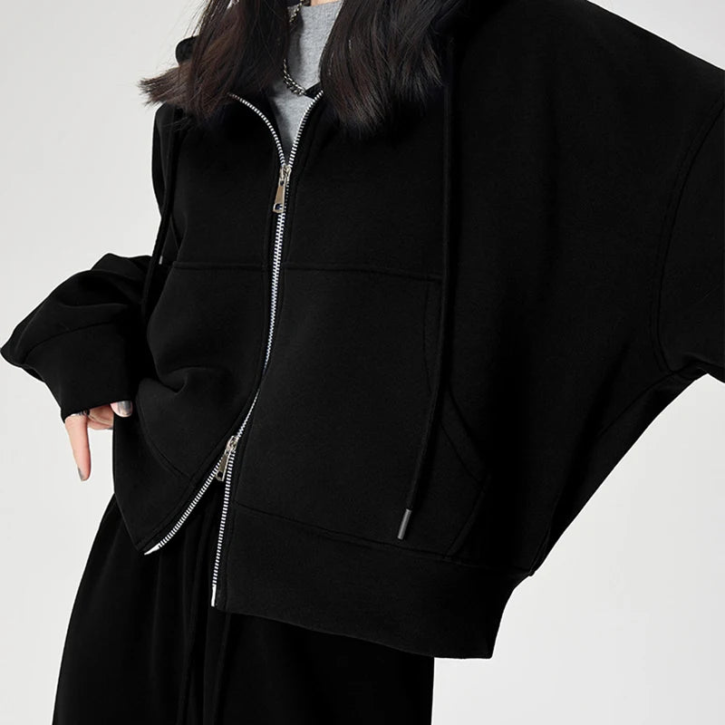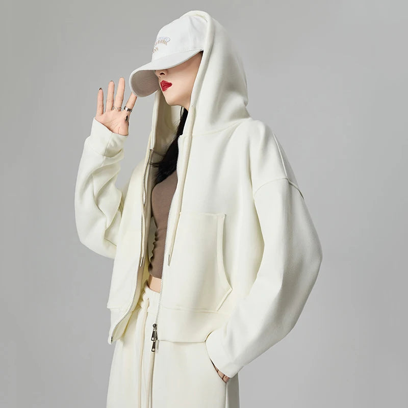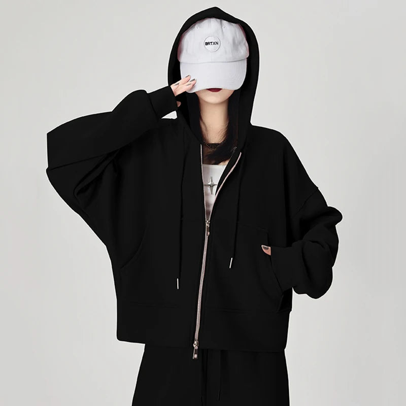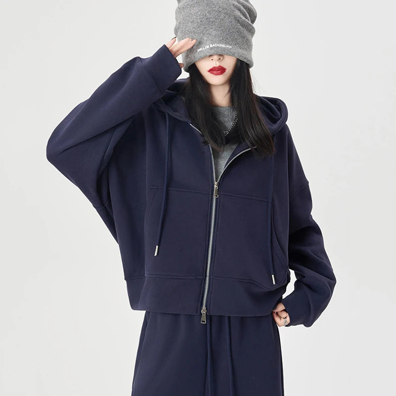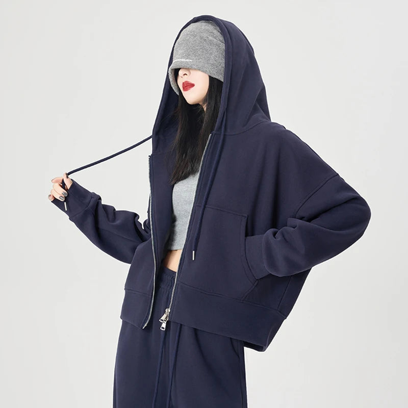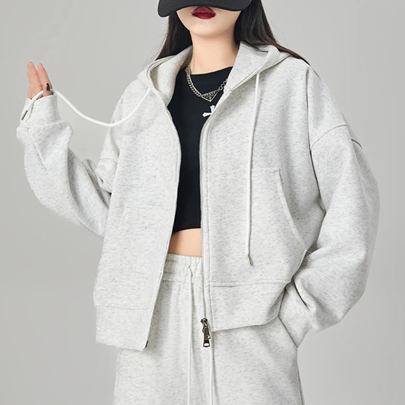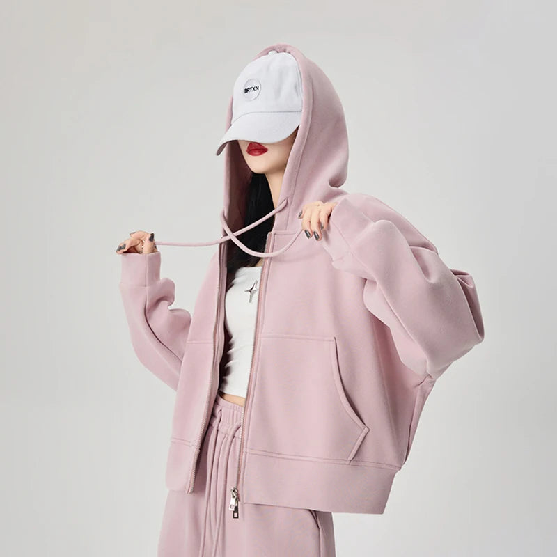 Autumn Winter Pink Hooded Sweatshirt Women Fashion Pocket Solid Color Zip Up