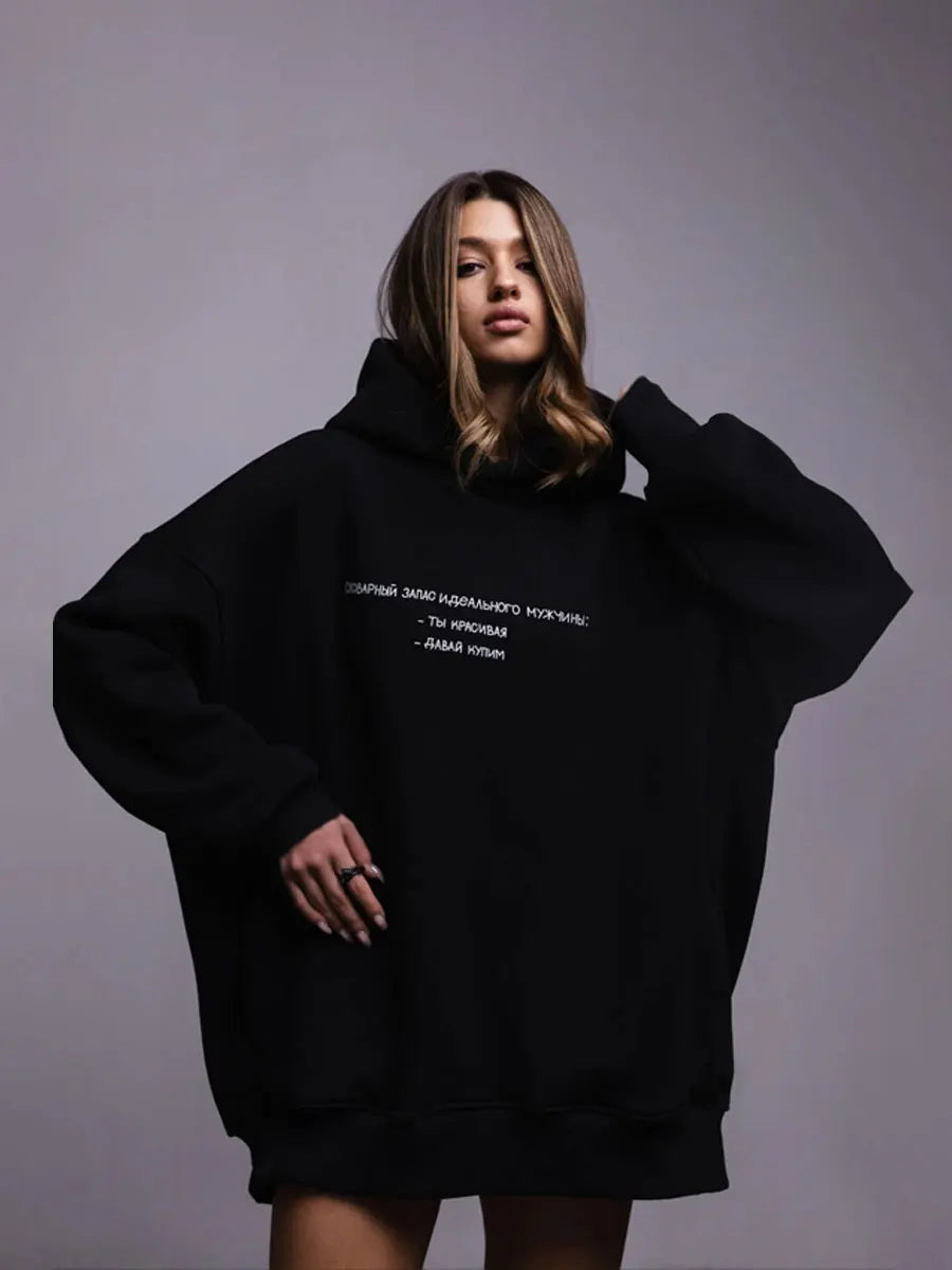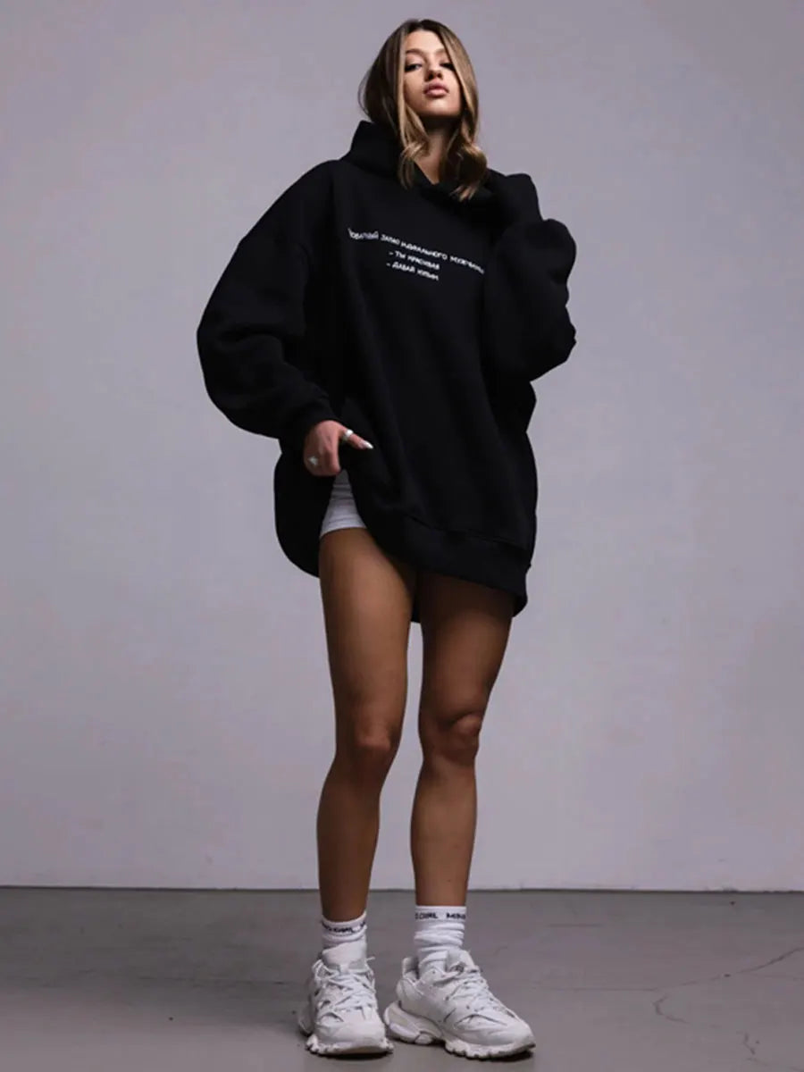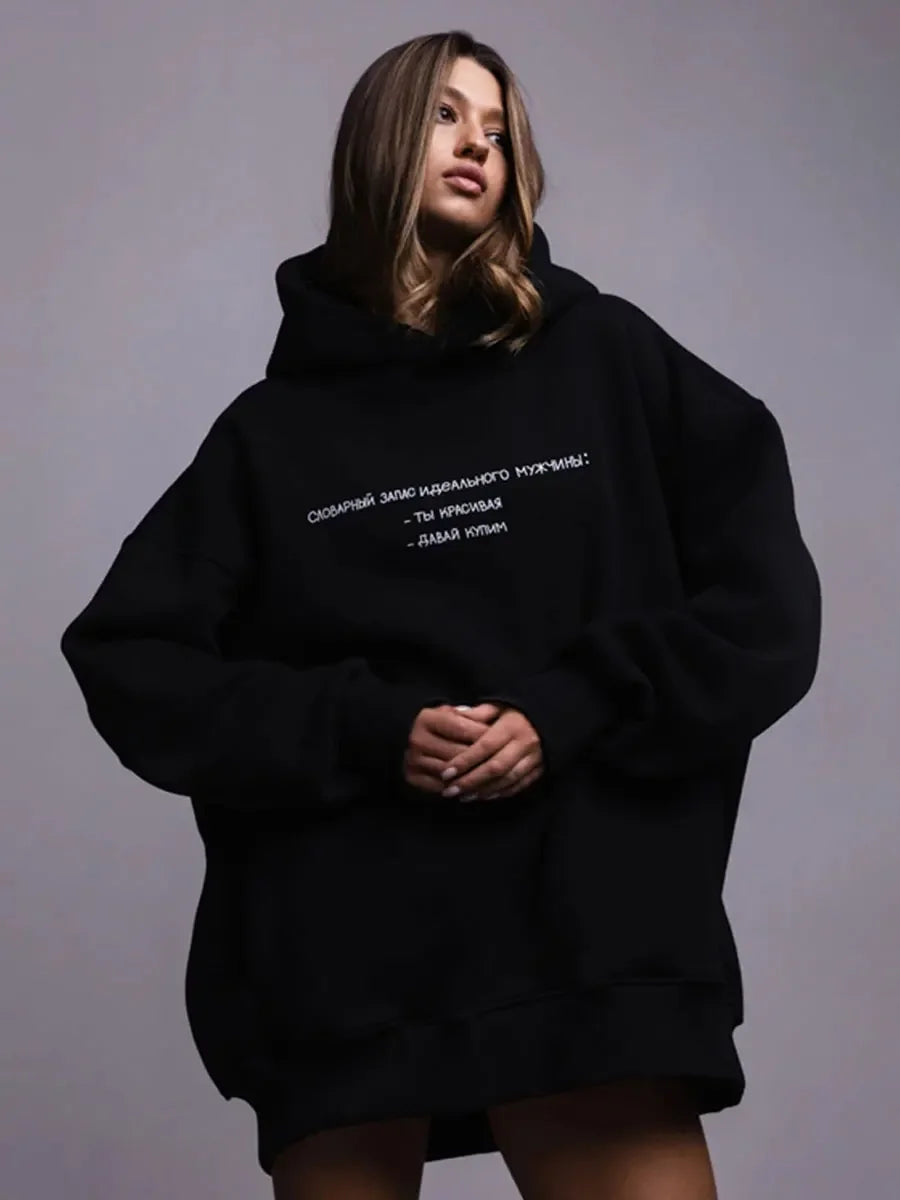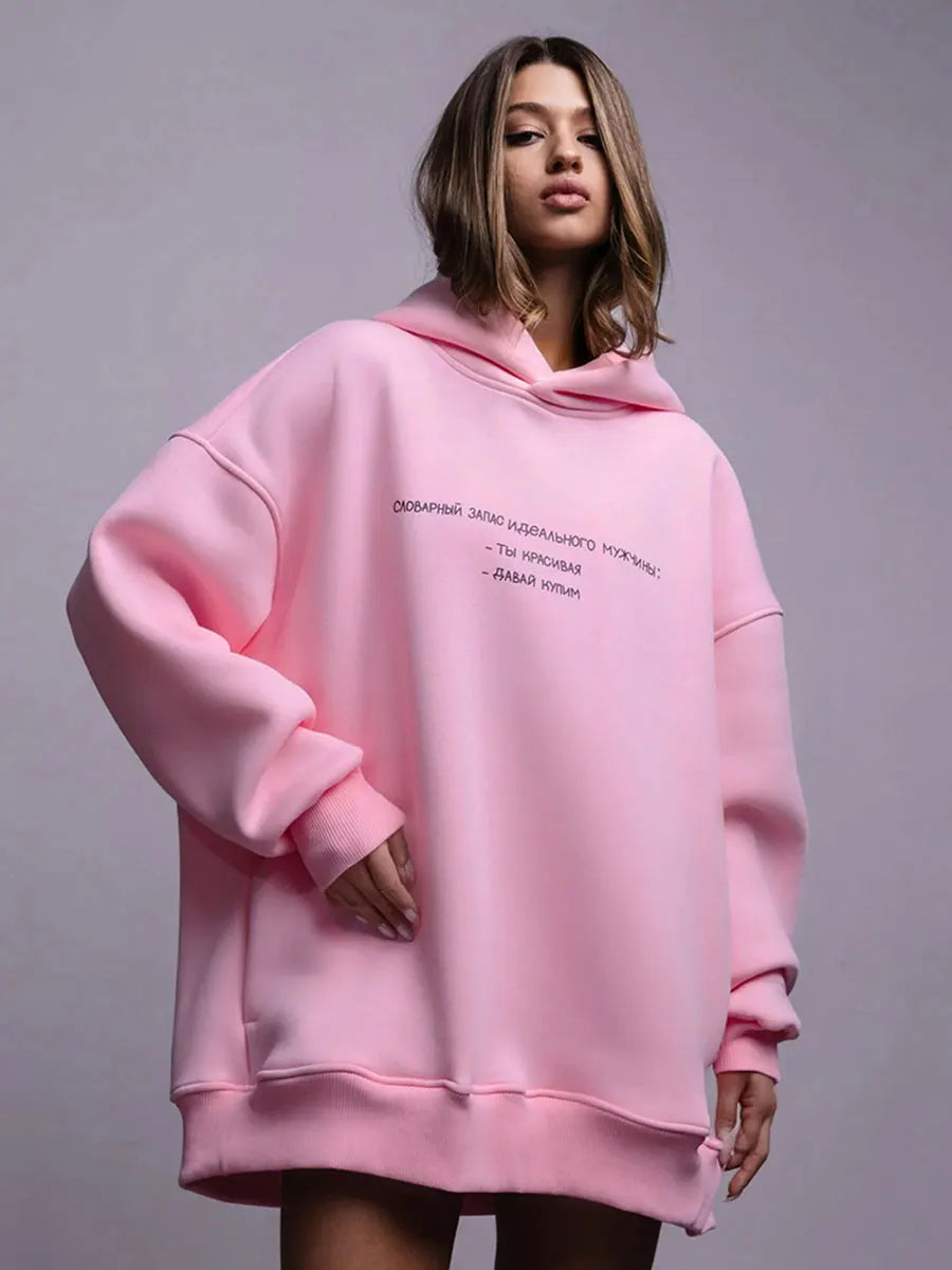 Bornladies Autumn Winter Warm Oversized Retro Print Hoodies Womwn s Thicken