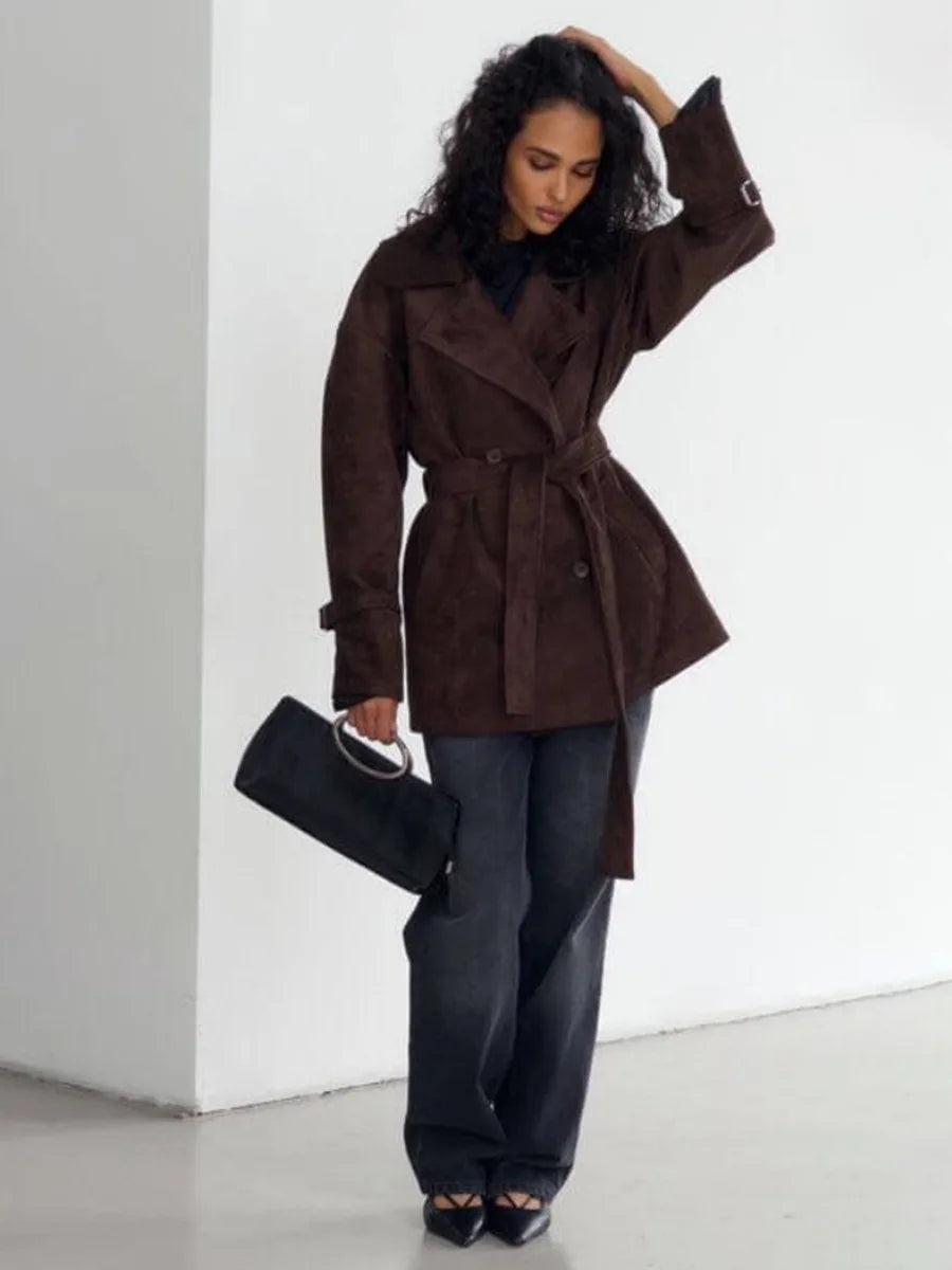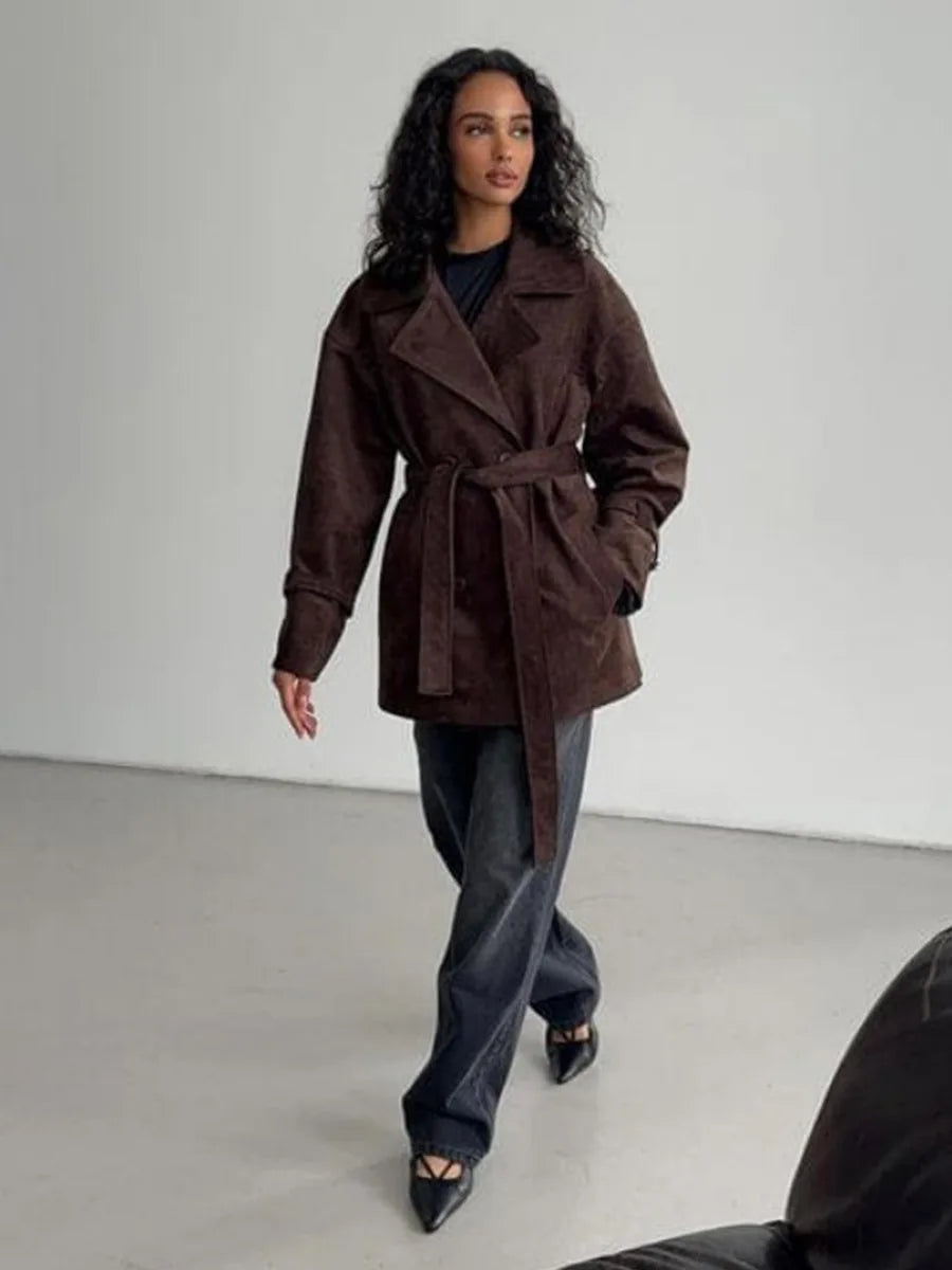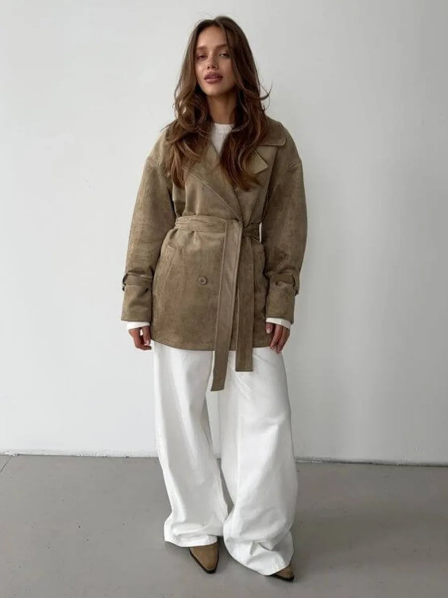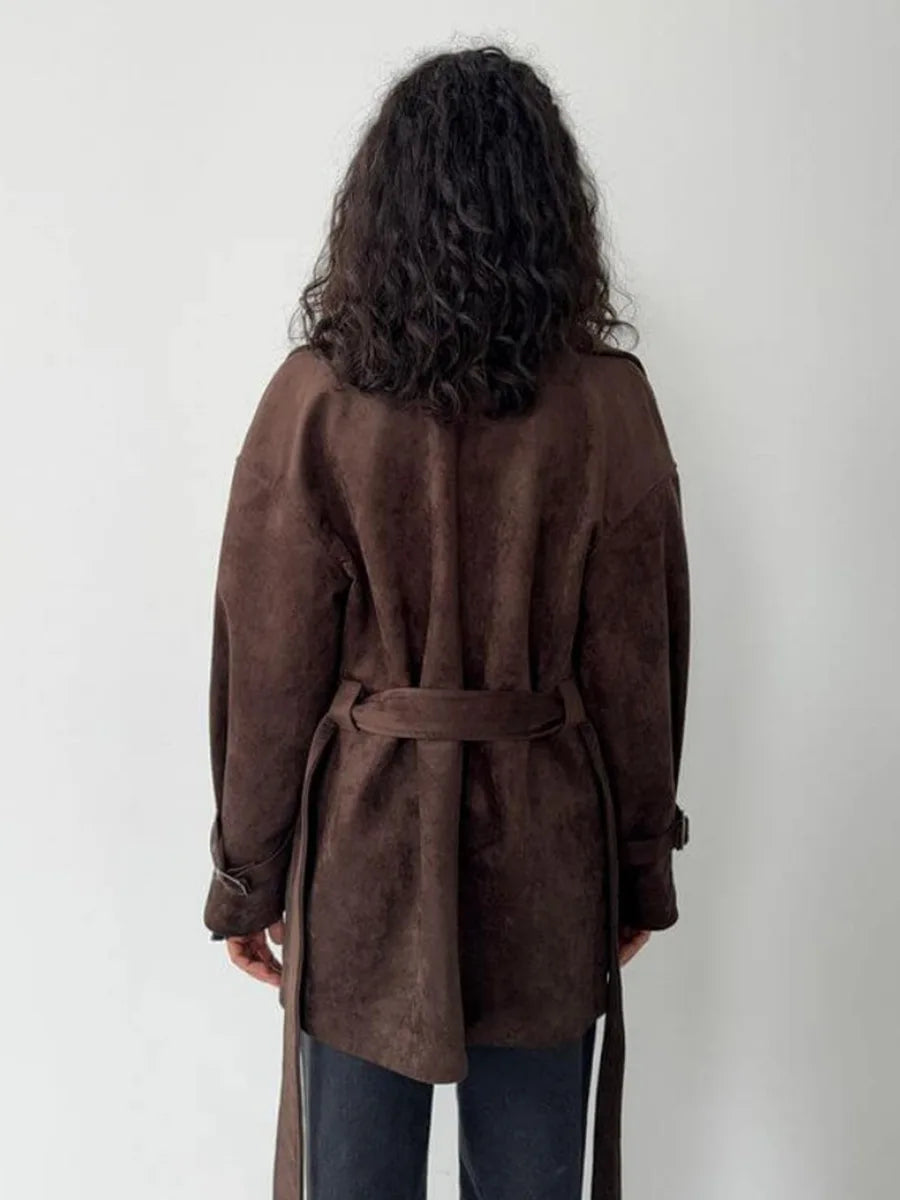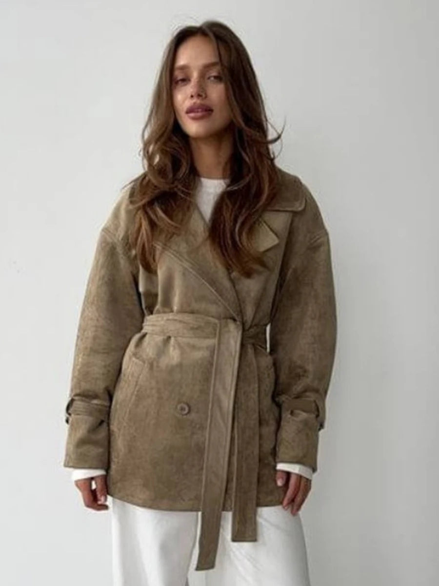 Bornladies Autumn Winter Women s Fashion Retro Jacket Suede Belted Waist Short