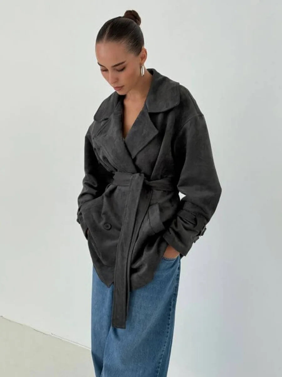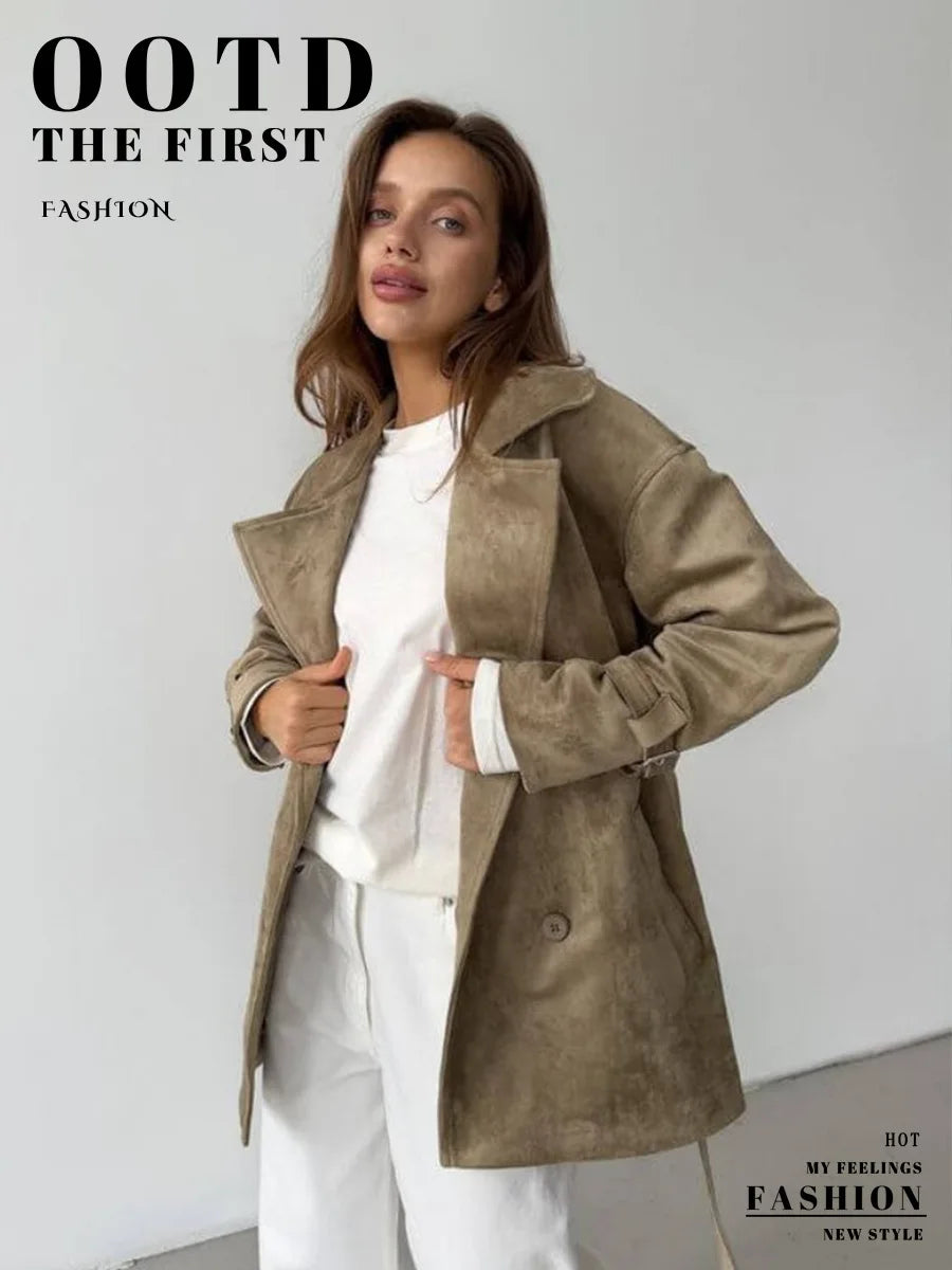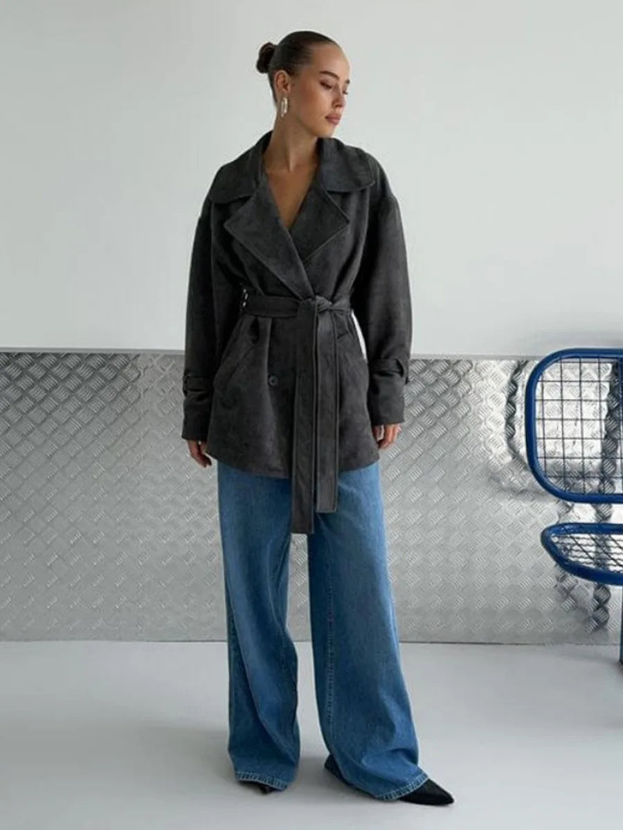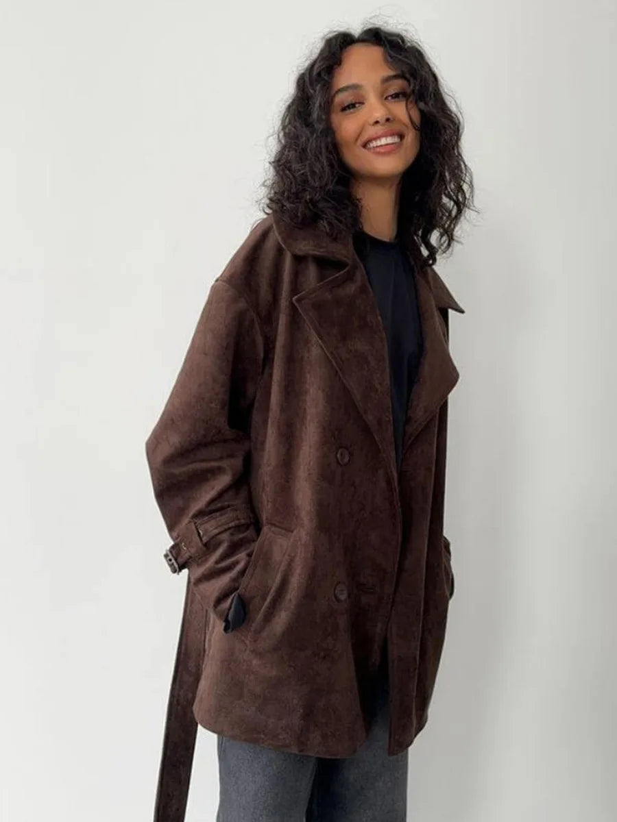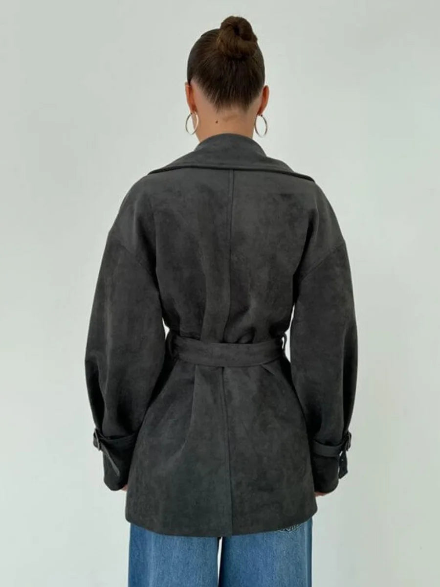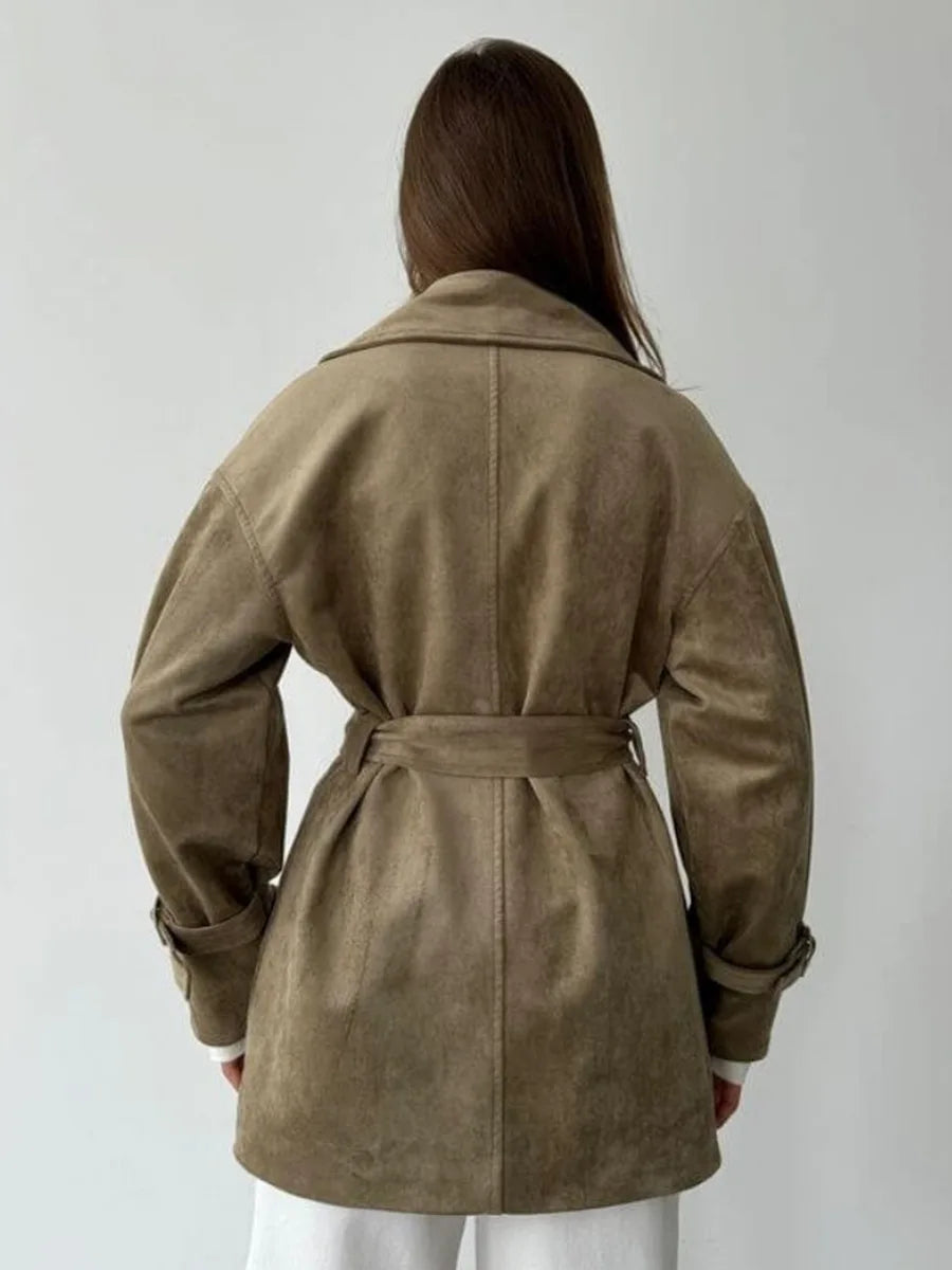 Bornladies Autumn Winter Women s Fashion Retro Jacket Suede Belted Waist Short