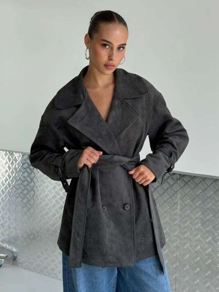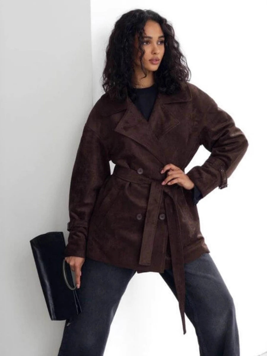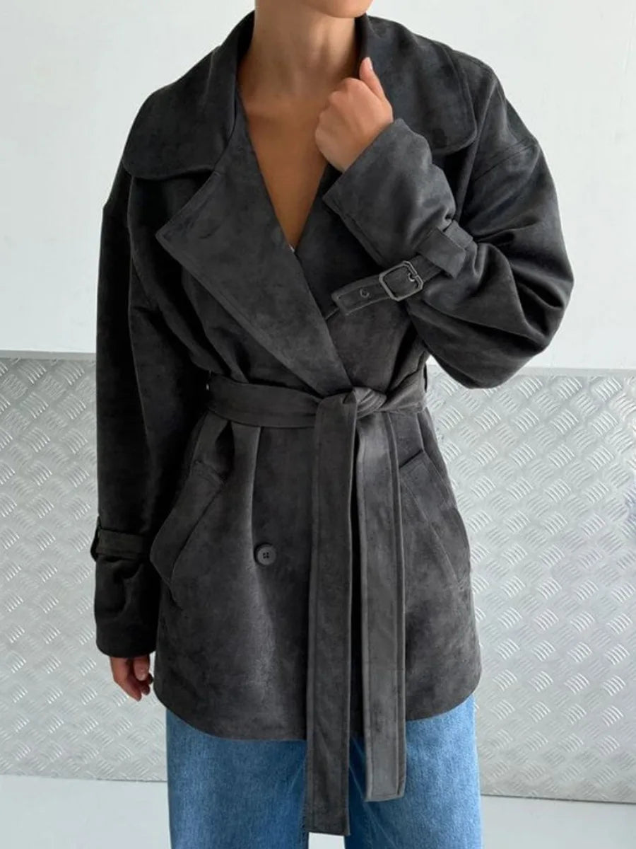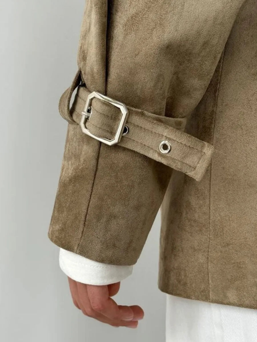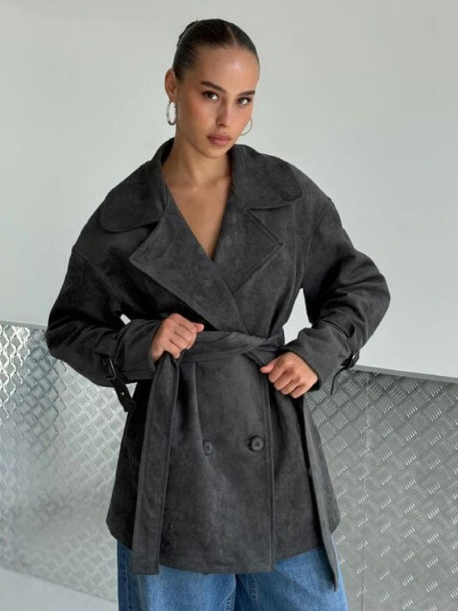 Bornladies Autumn Winter Women s Fashion Retro Jacket Suede Belted Waist Short