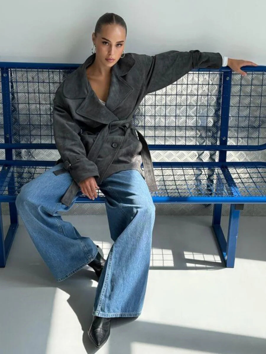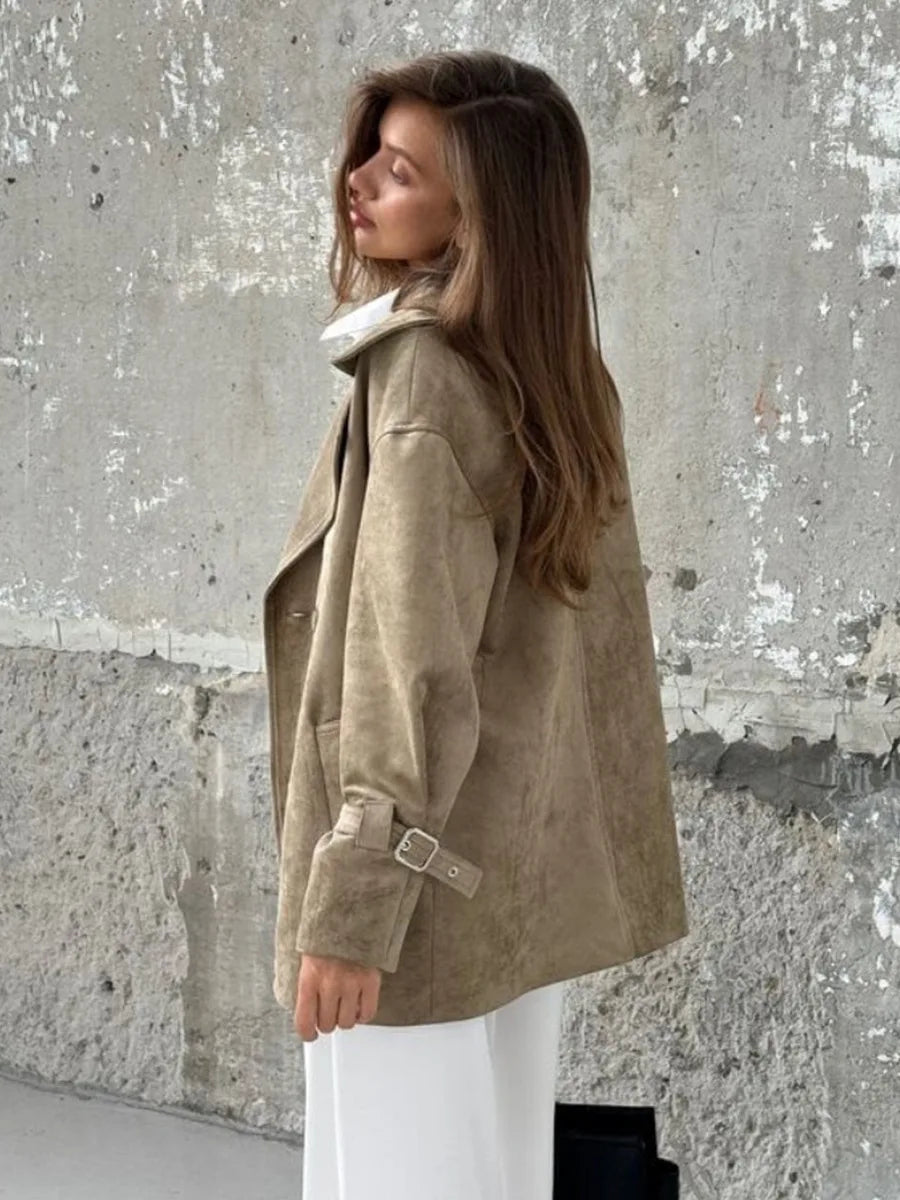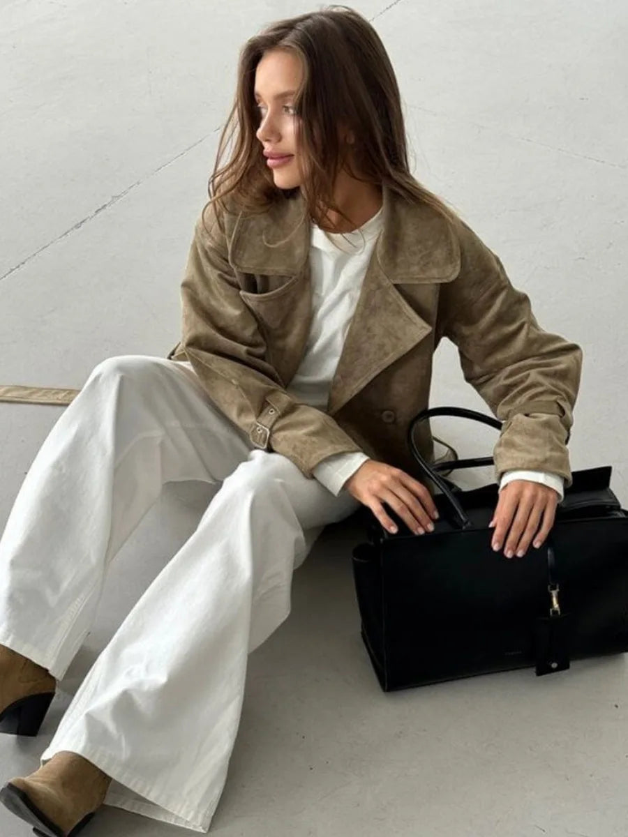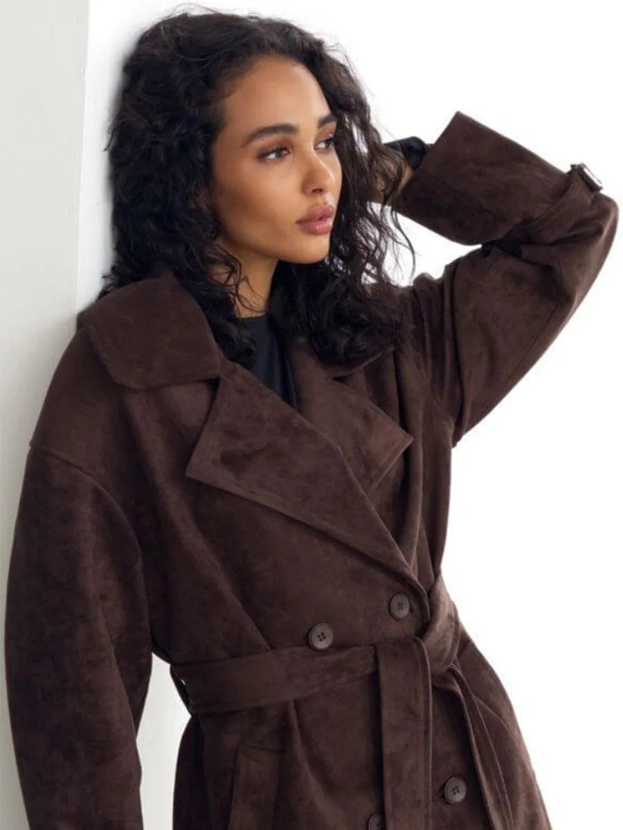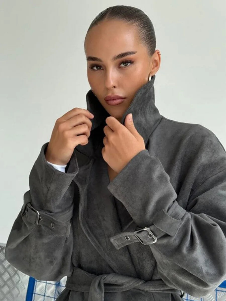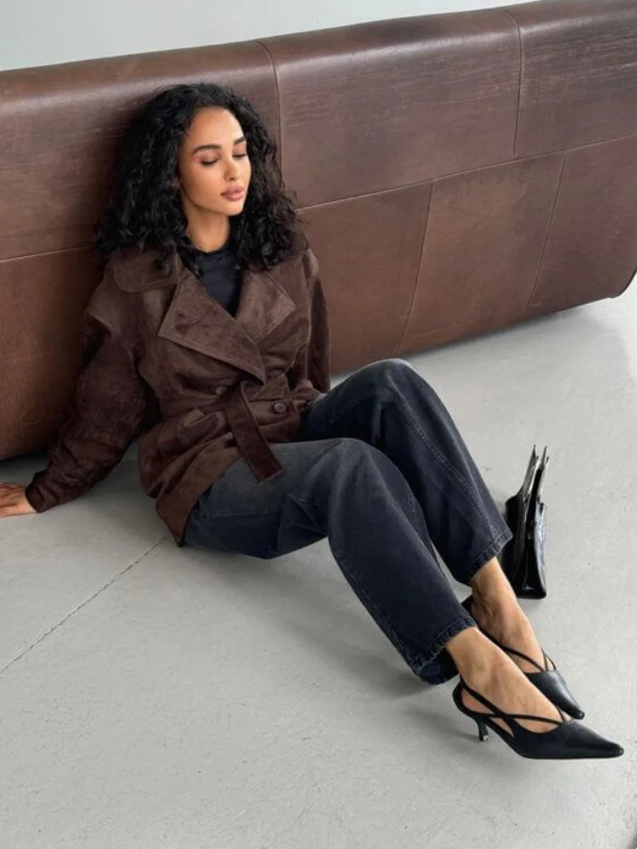 Bornladies Autumn Winter Women s Fashion Retro Jacket Suede Belted Waist Short
