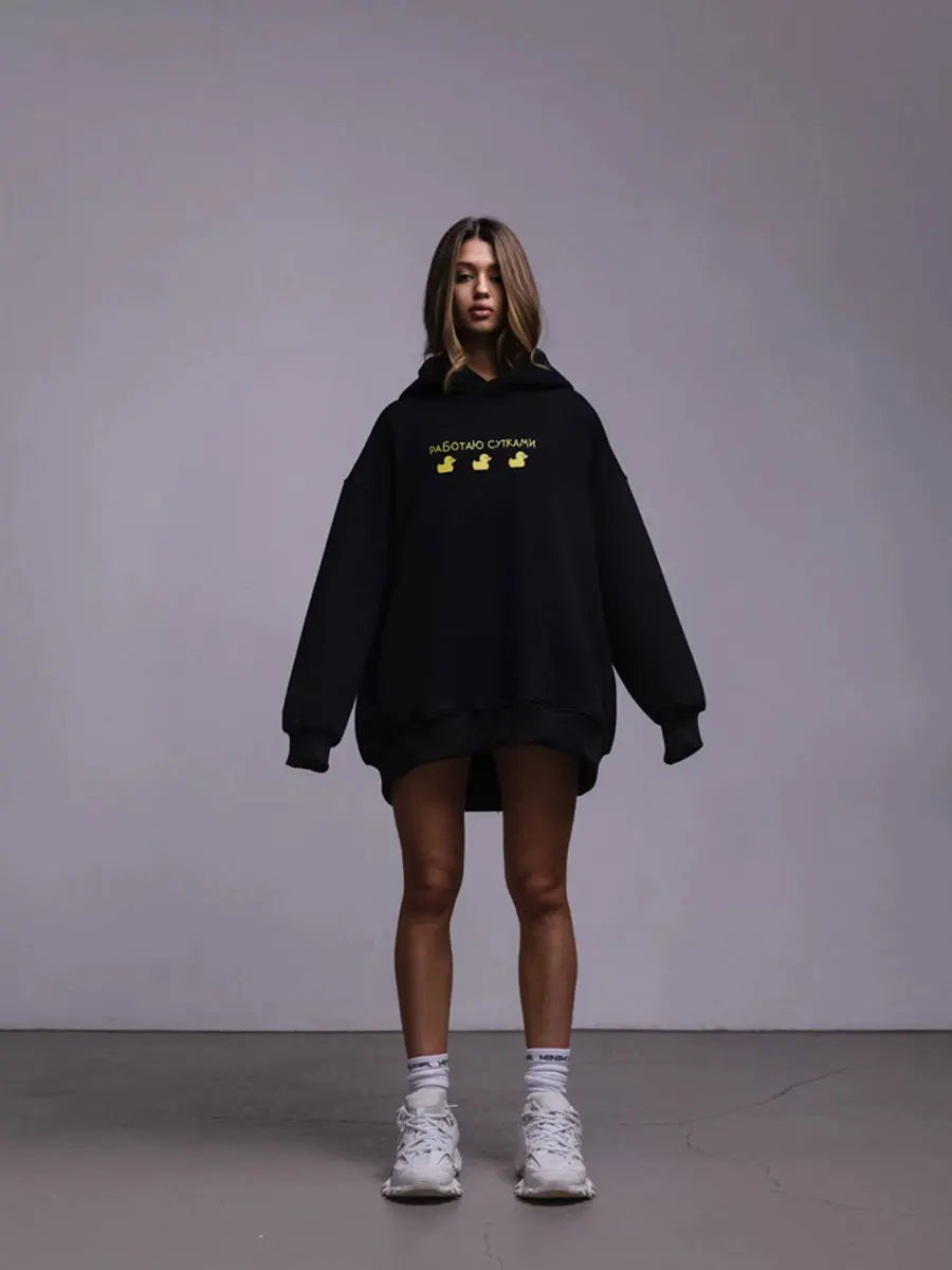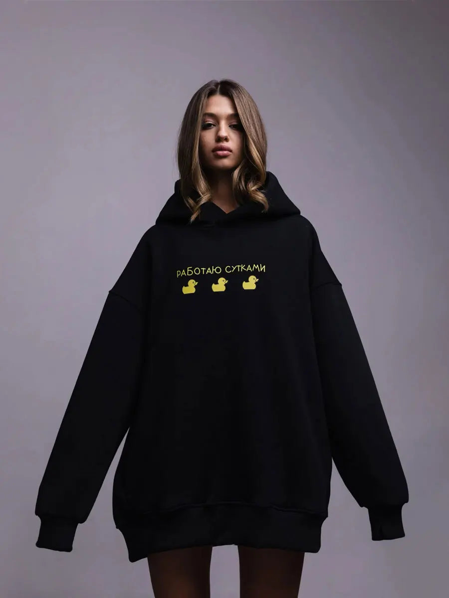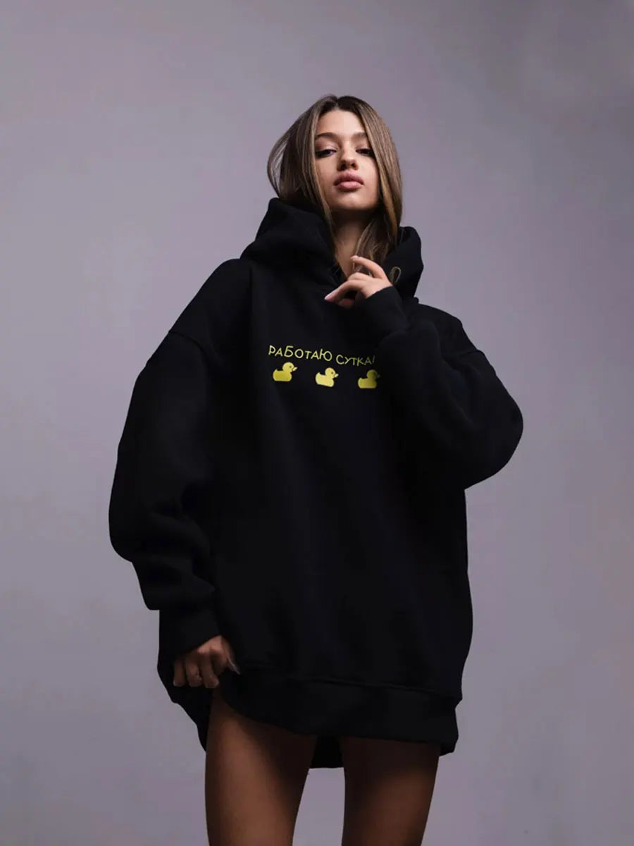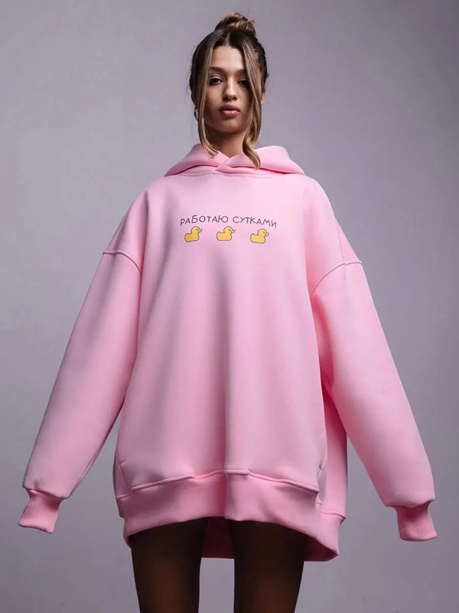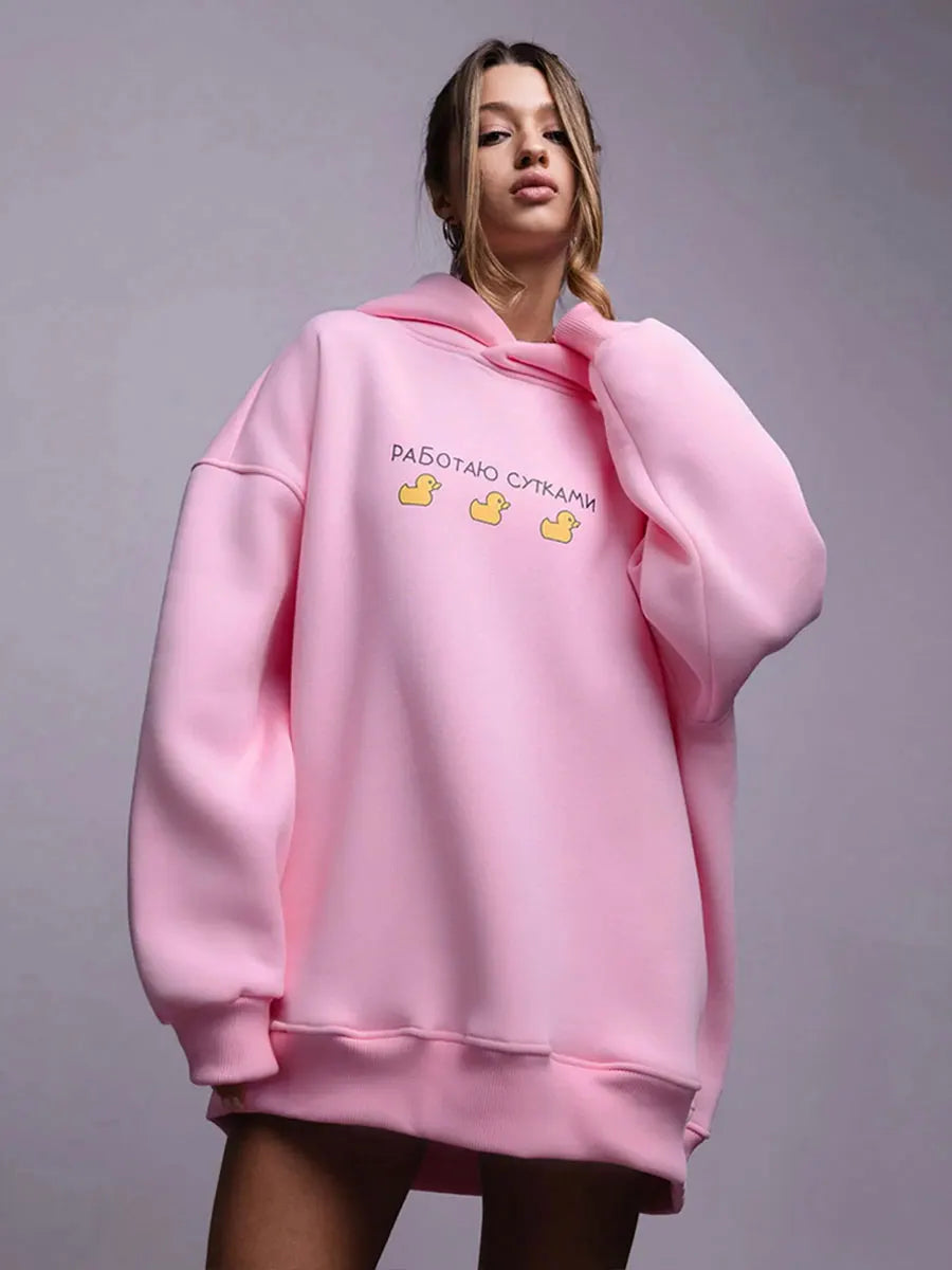 Bornladies Autumn Winter Womwn Oversized Hoodie Warm Sweatshirt Three Duck Print