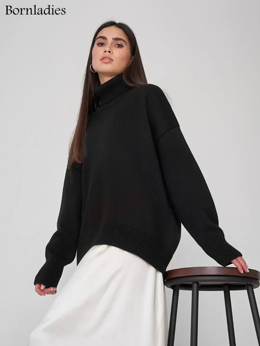 Bornladies Women Turtleneck Sweater Chic Autumn Winter Thick Warm Pullover Top