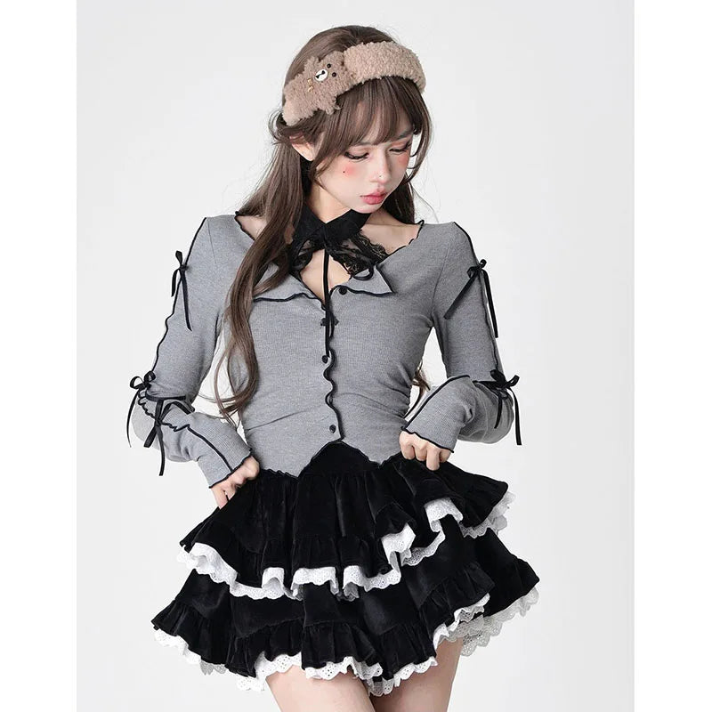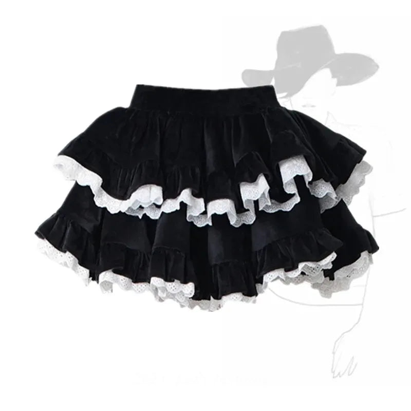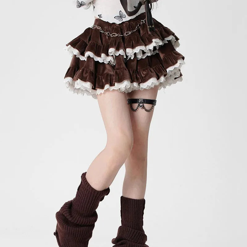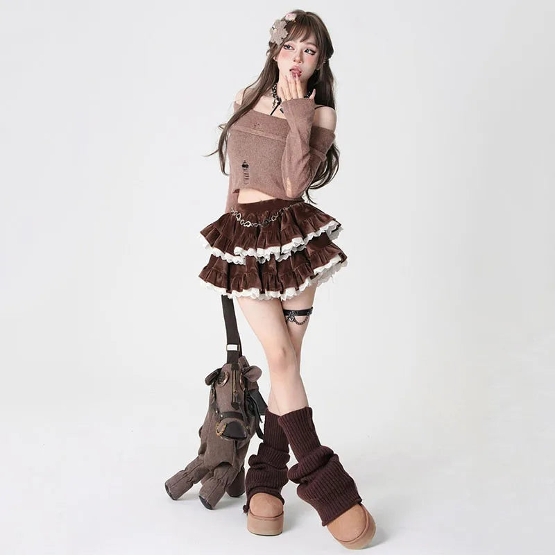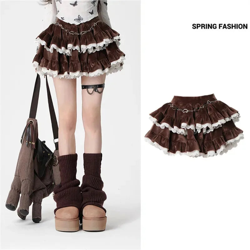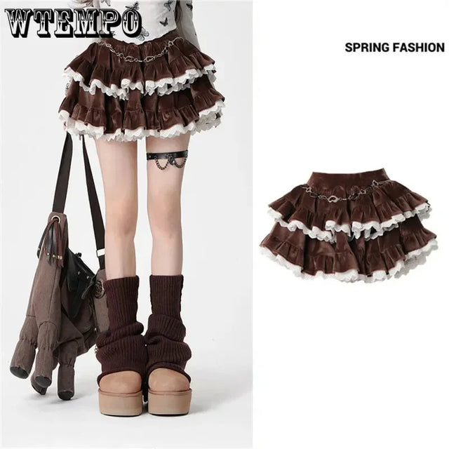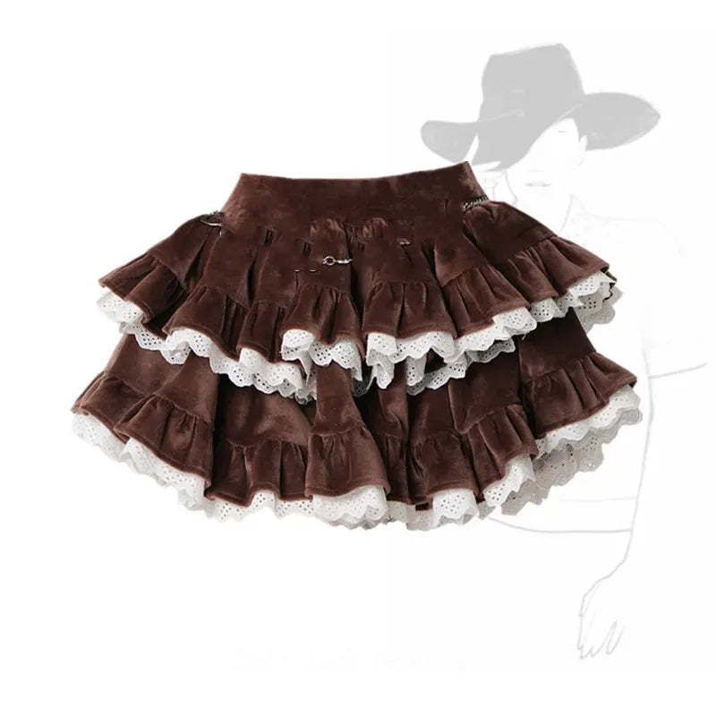 Brown Corduroy Skirt Sweet Cute Women's Cake Skirt Ruffle Edge Stitching Hotsweet Pure Desire Fashion Y2K...