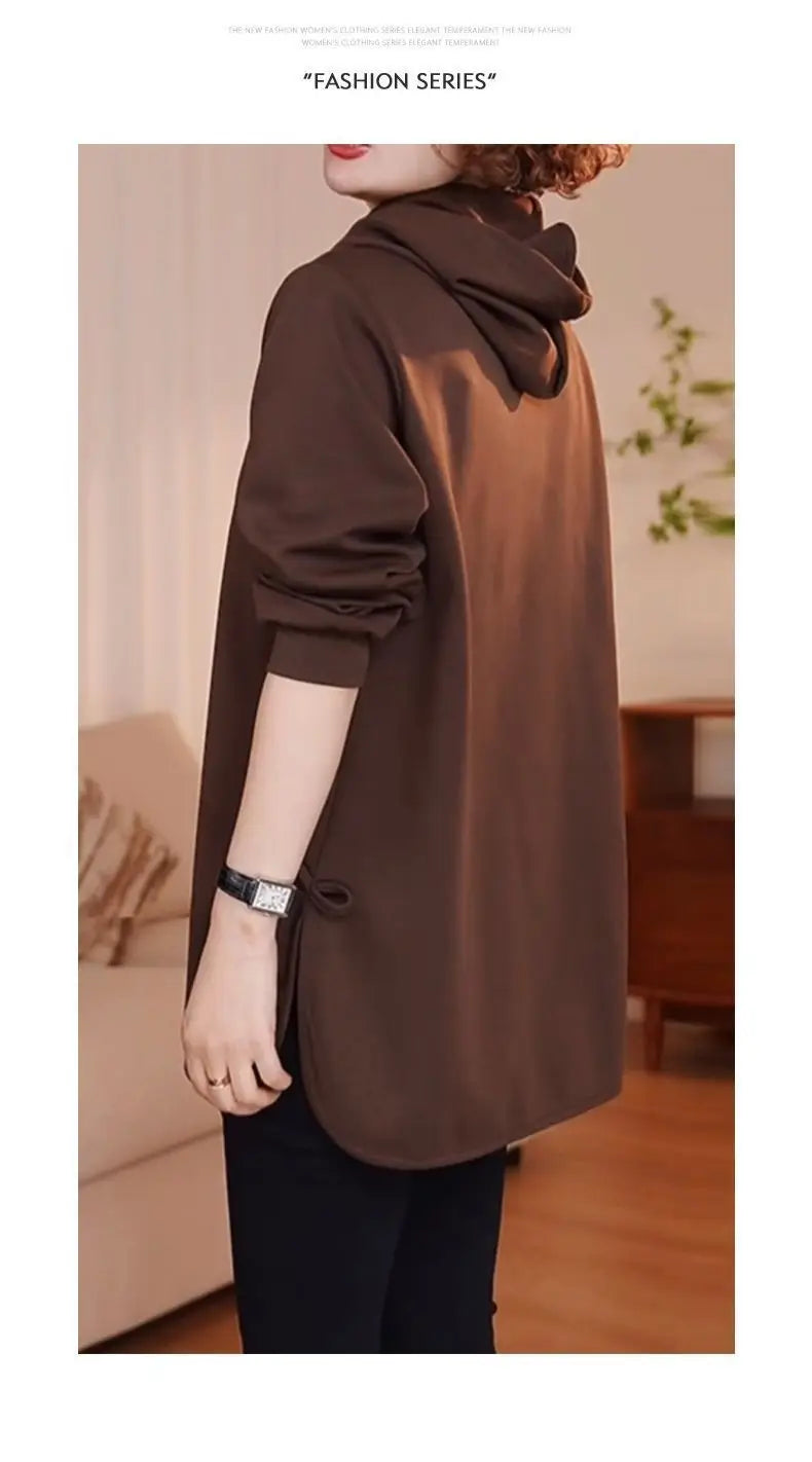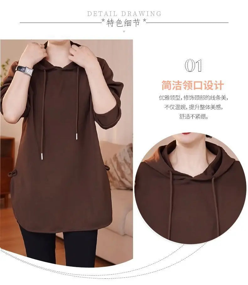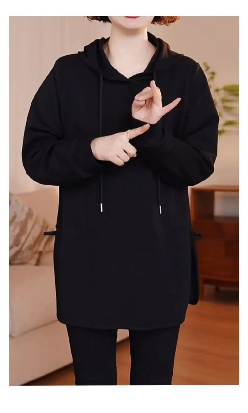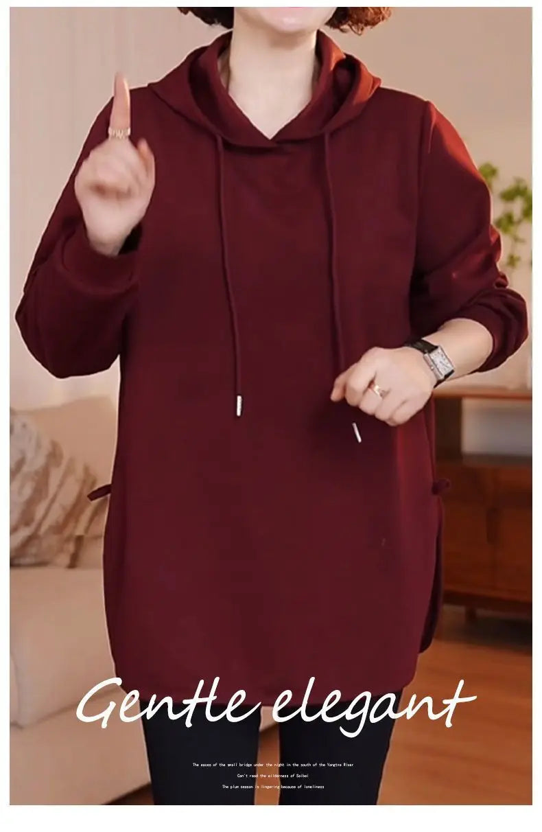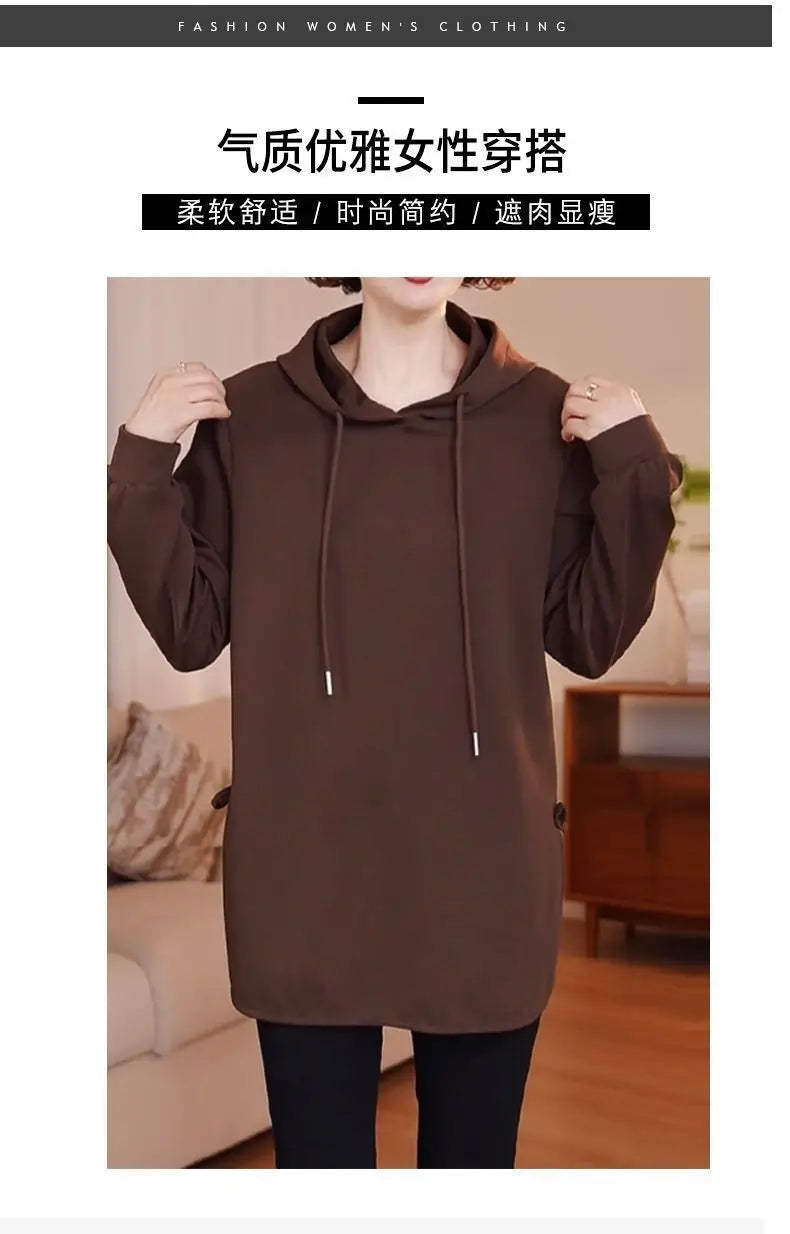 Casual Hooded Mid length Sweatshirt Women in Autumn Loose Slim Solid Color Fa...