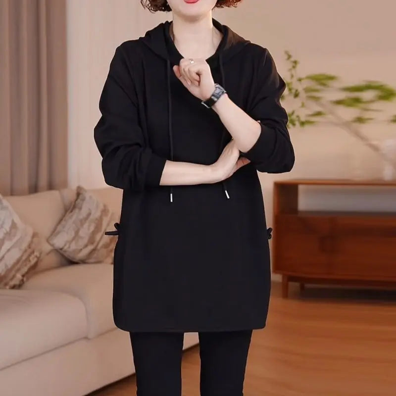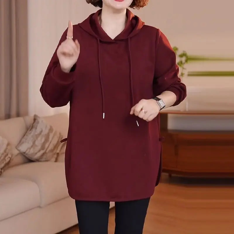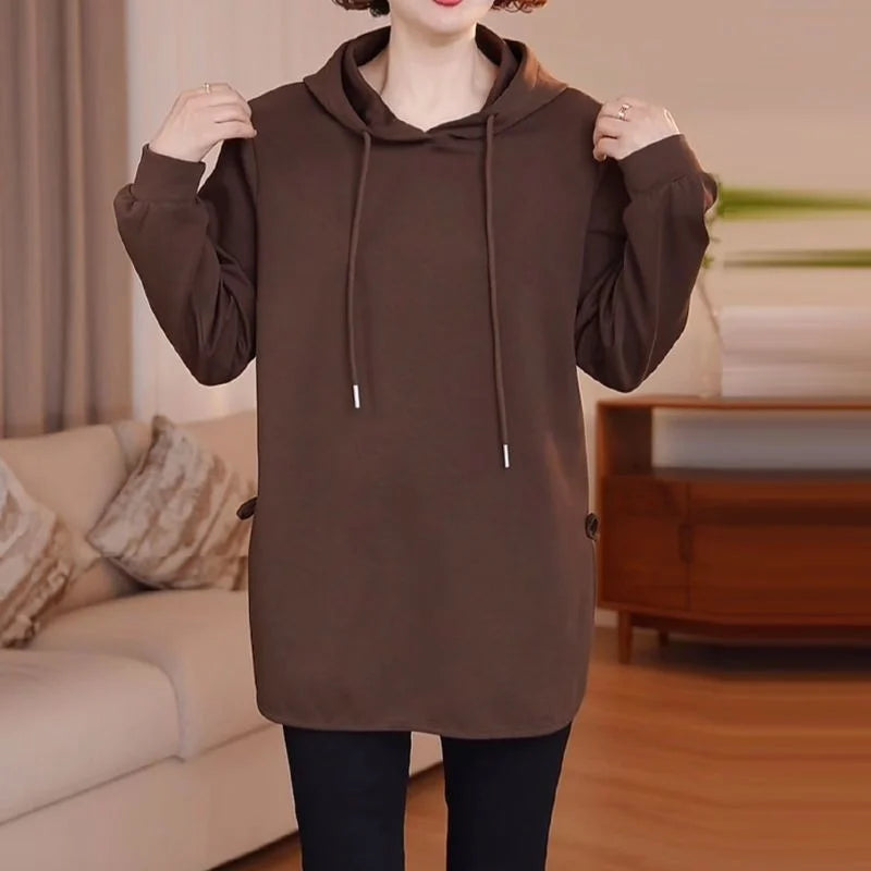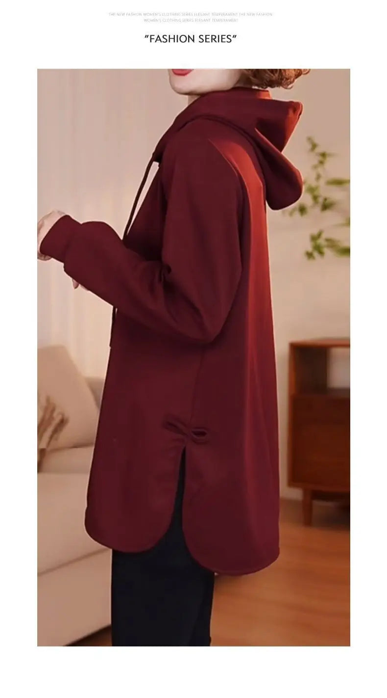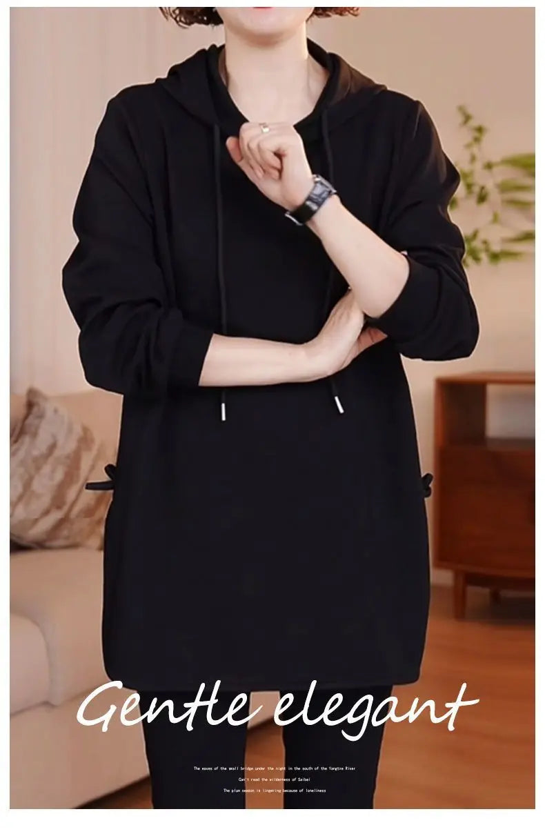 Casual Hooded Mid length Sweatshirt Women in Autumn Loose Slim Solid Color Fa...