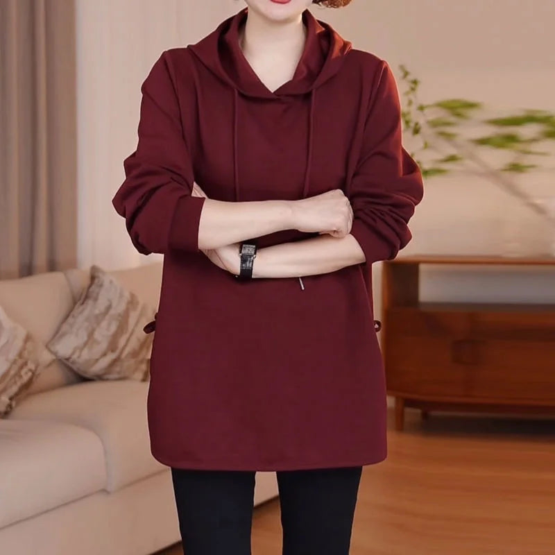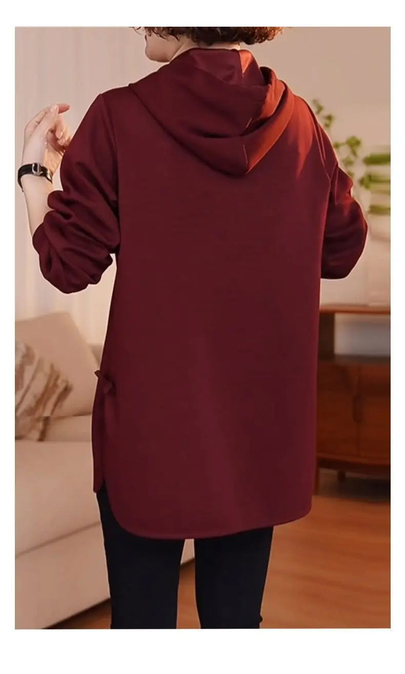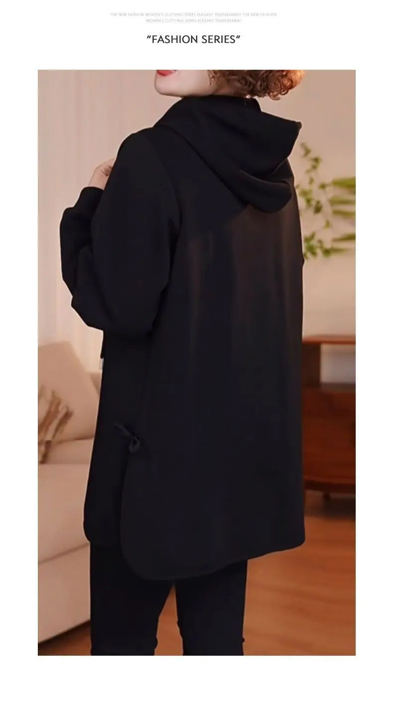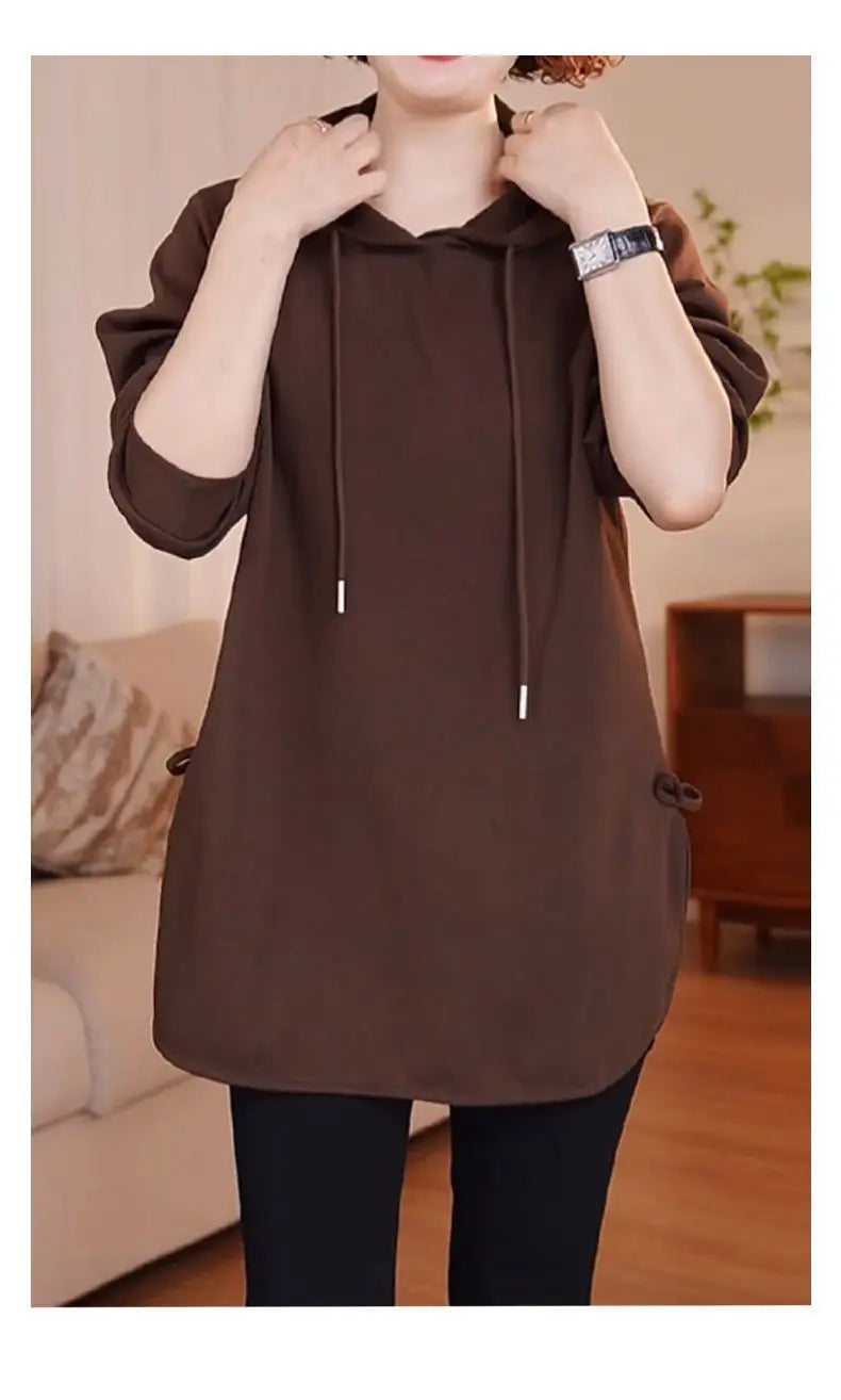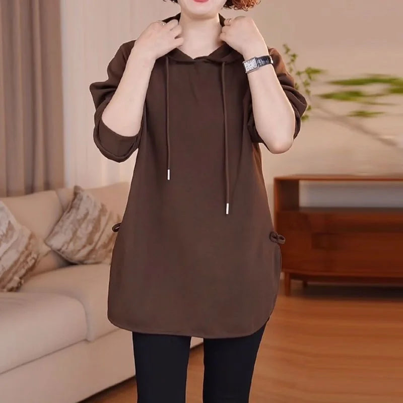 Casual Hooded Mid length Sweatshirt Women in Autumn Loose Slim Solid Color Fa...