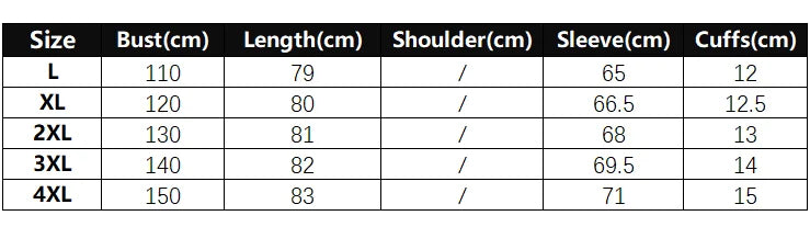 size_info: {"sizeInfoList":[{"length":{"cm":"110","inch":"43.31"},"size":"L","vid":-36},{"length":{"cm":"120","inch":"47.24"},"size":"XL","vid":-37},{"length":{"cm":"130","inch":"51.18"},"size":"XXL","vid":-38},{"length":{"cm":"140","inch":"55.12"},"size":"XXXL","vid":-39},{"length":{"cm":"150","inch":"59.06"},"size":"4XL","vid":-40}]}