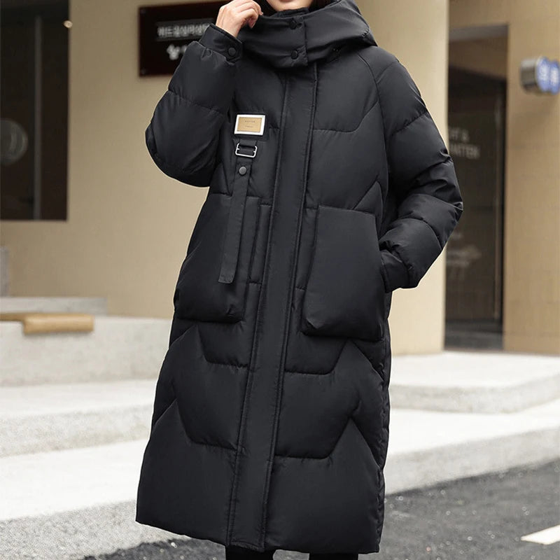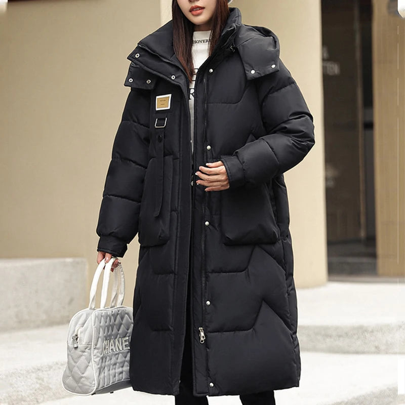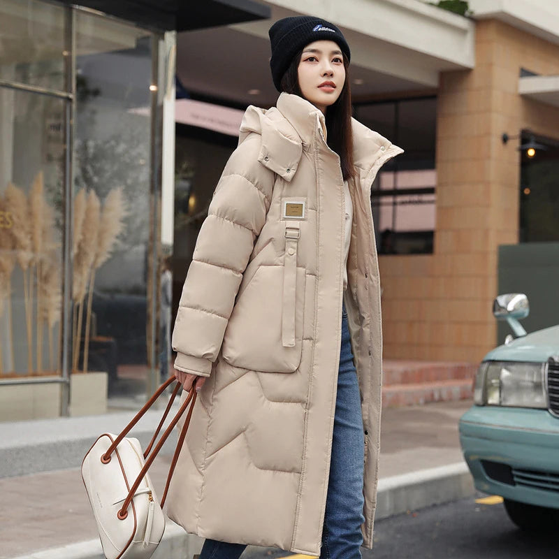 Casual Stand Collar Hooded Parkas Women Thicken Warm Mid Long Parka Jacket Woman