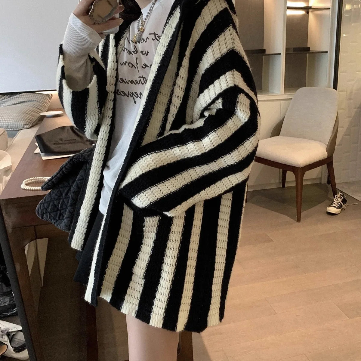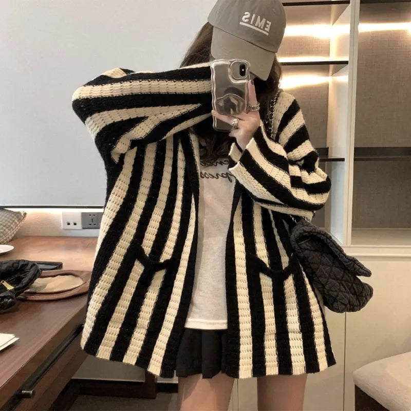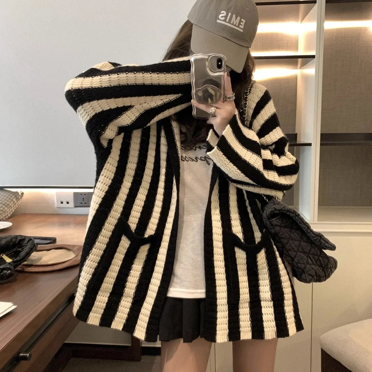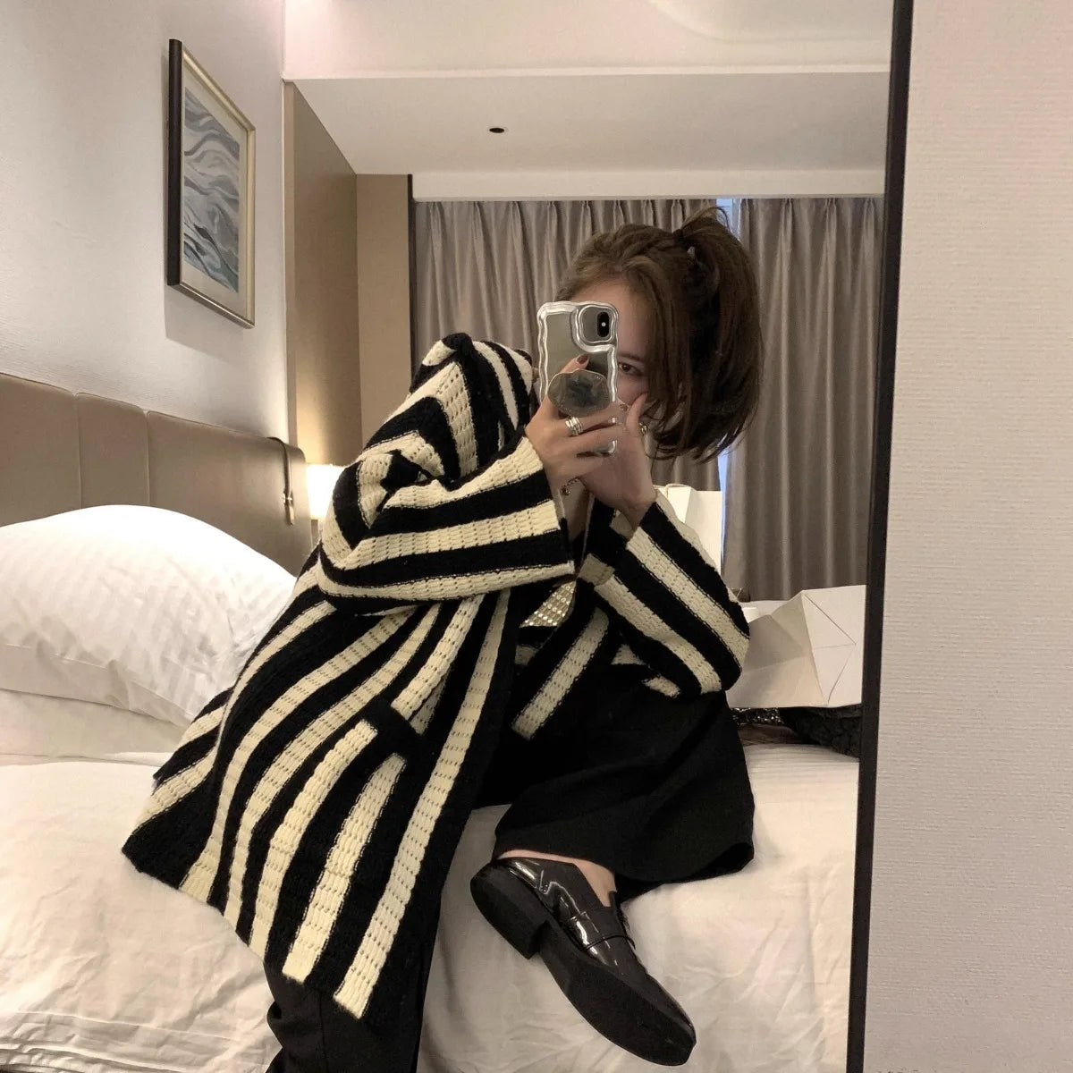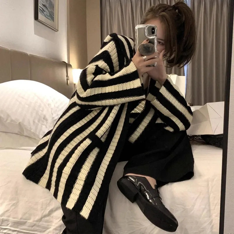 Commute Autumn Winter Striped Sweaters Female Clothing Casual Long Sleeve Kor...