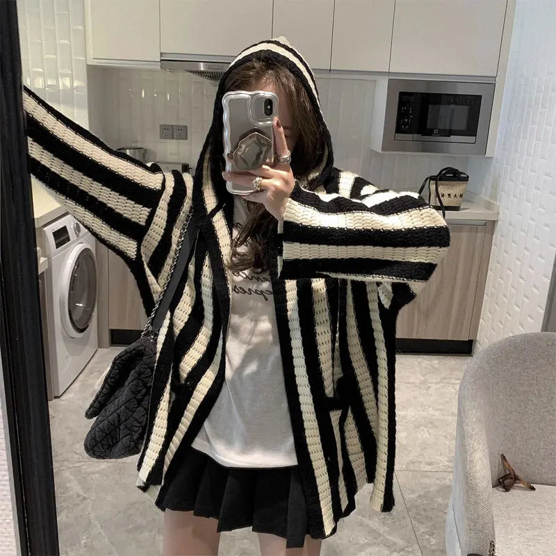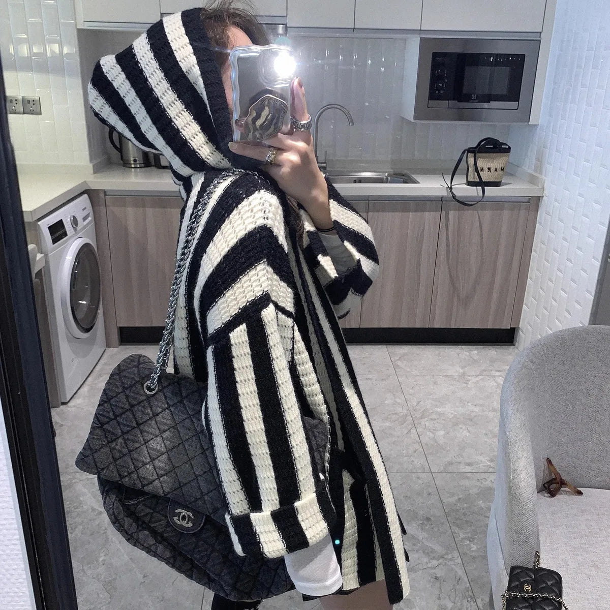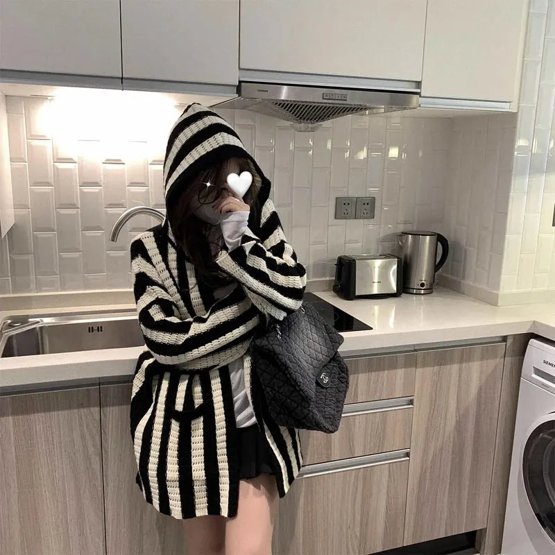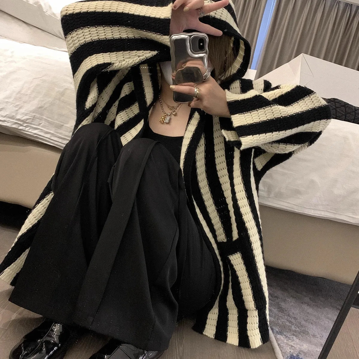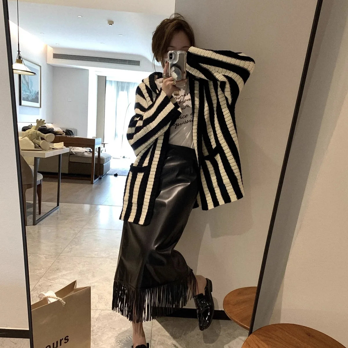 Commute Autumn Winter Striped Sweaters Female Clothing Casual Long Sleeve Kor...
