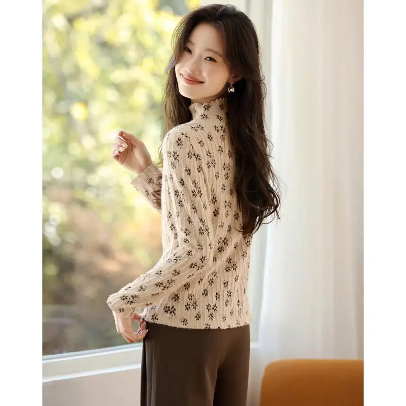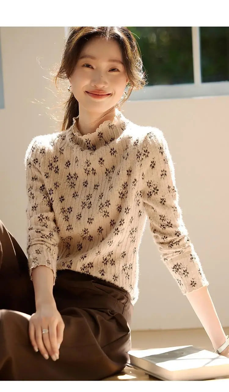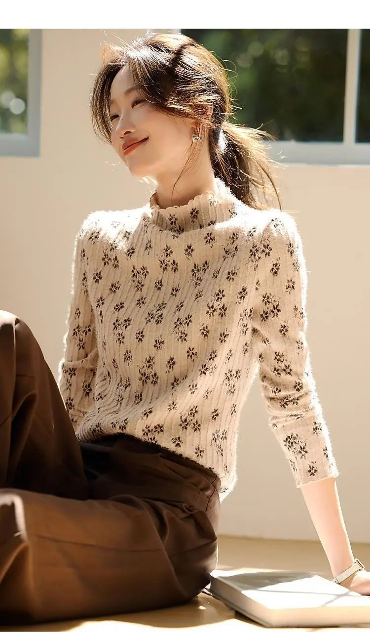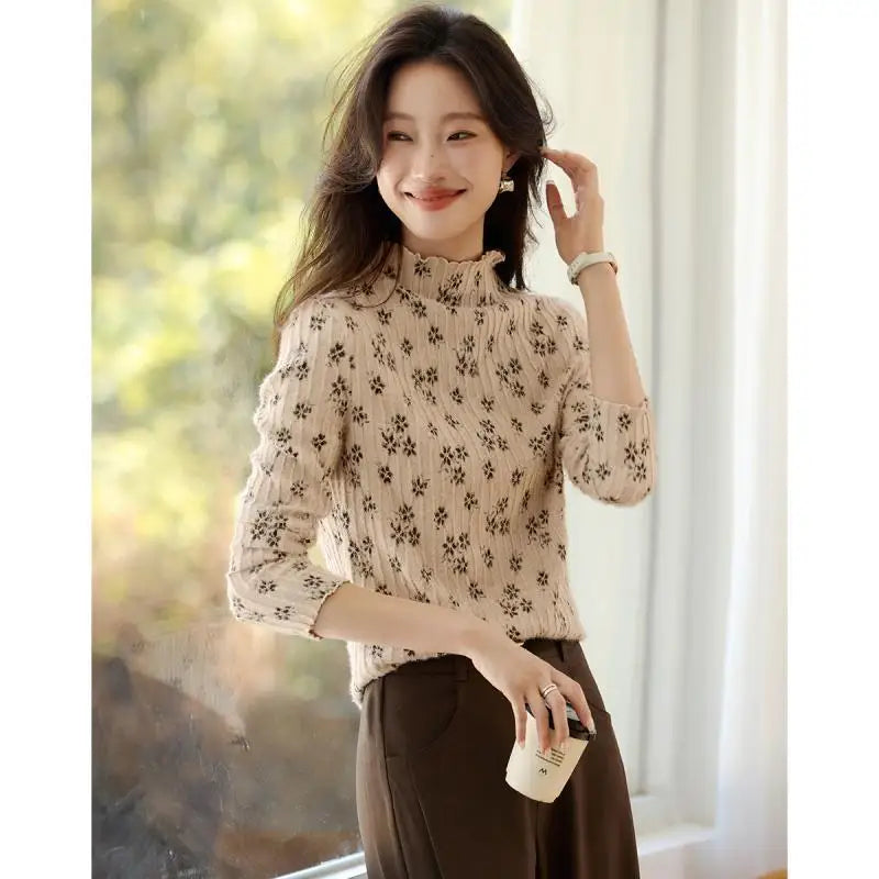 Contrast Color Jacquard Wood Earrings Women s T shirt Temperament Commuting