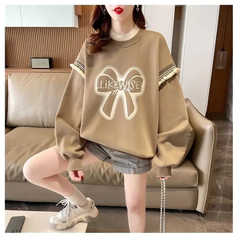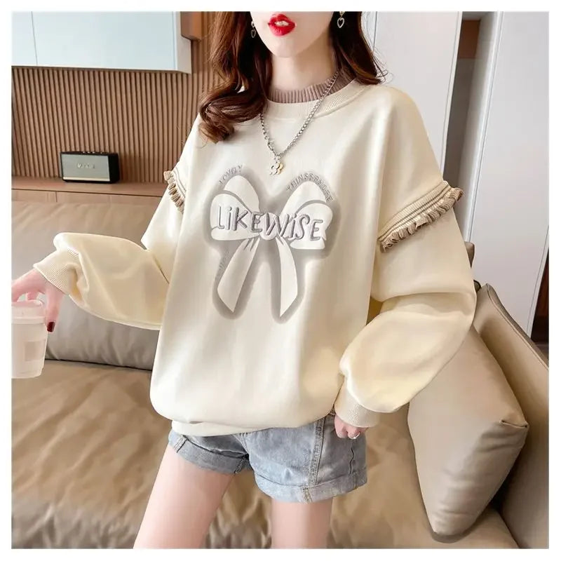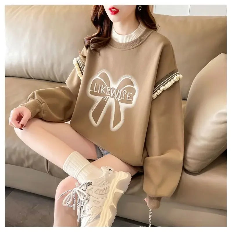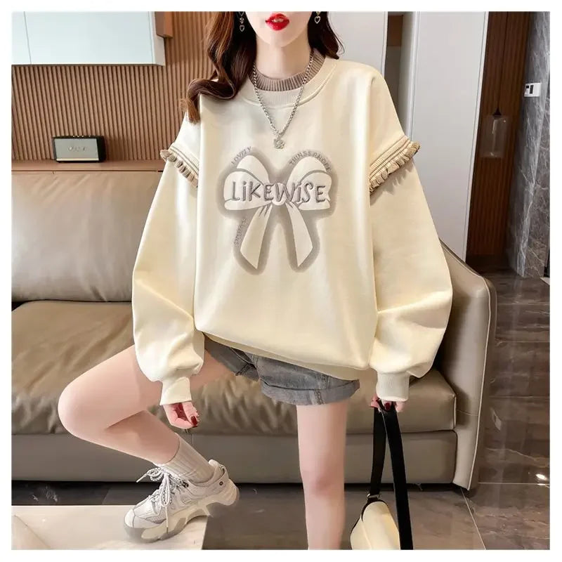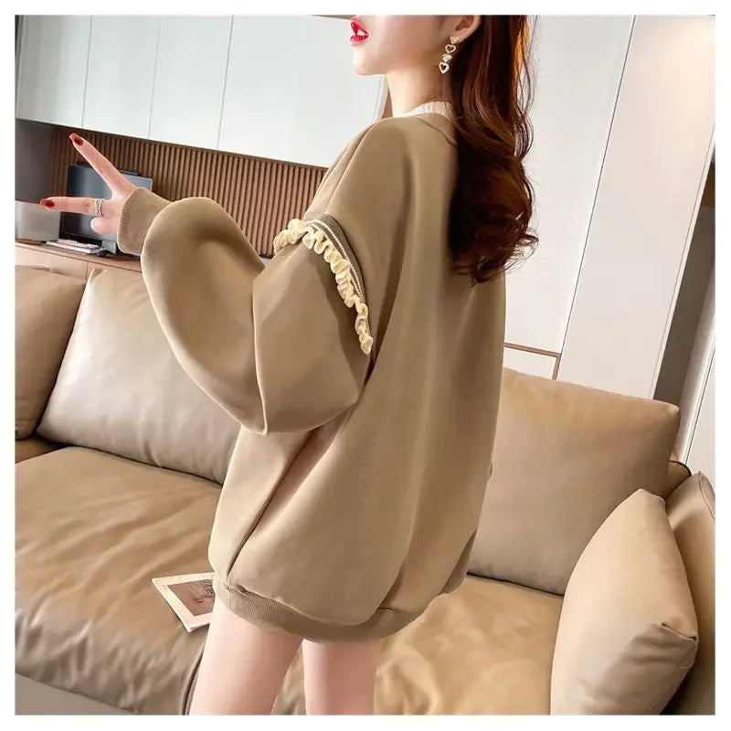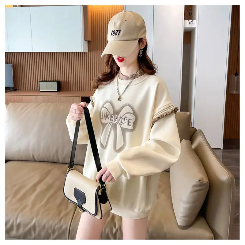 Fake Two piece Velvet Thickened Sweatshirt Women Mid length Style Student Loo...