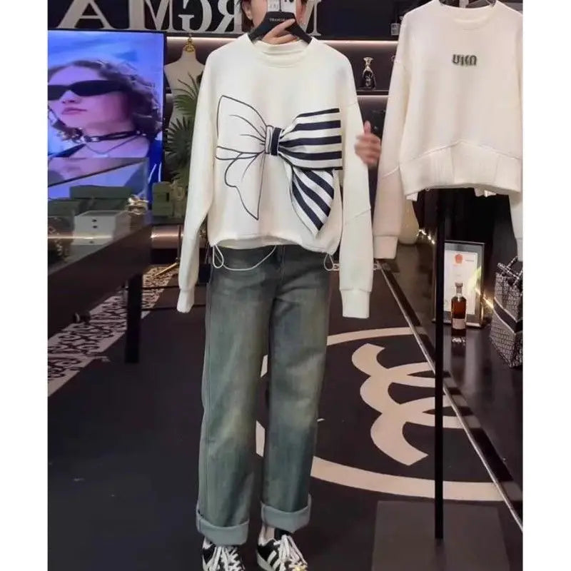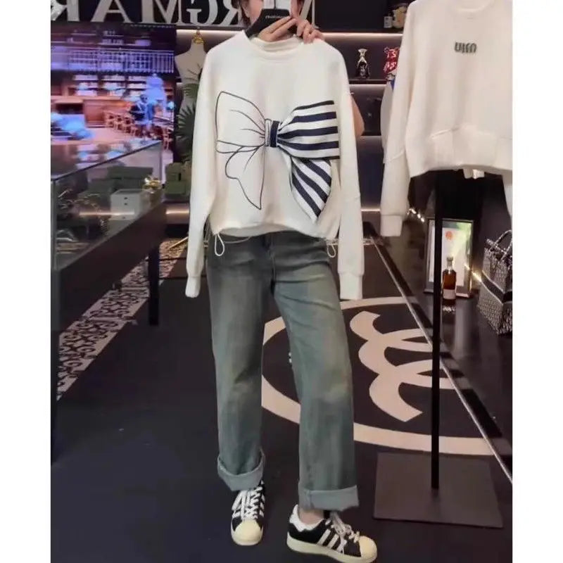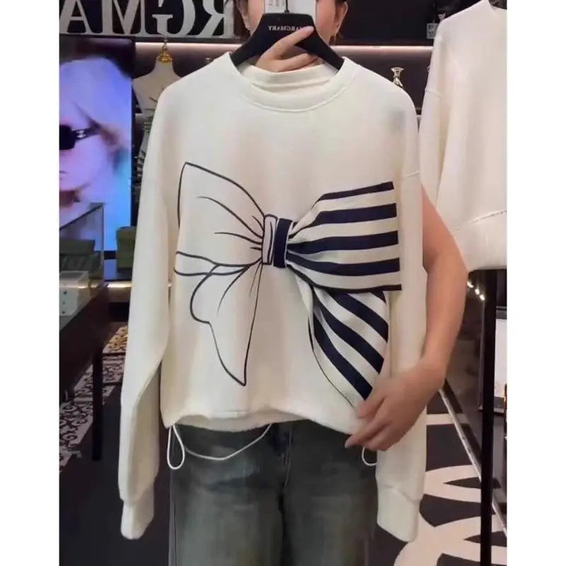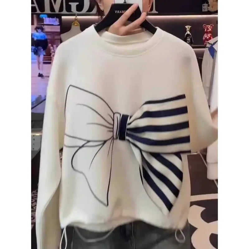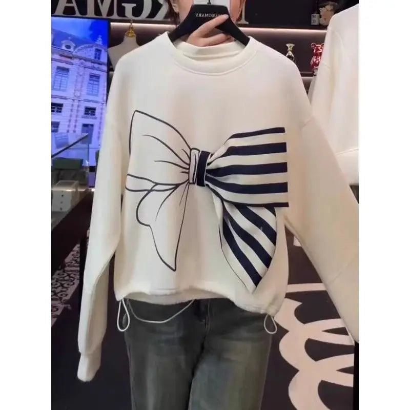Fashion Bow Spliced printed Sweatshirt for Women in Autumn and Winter Casual ...