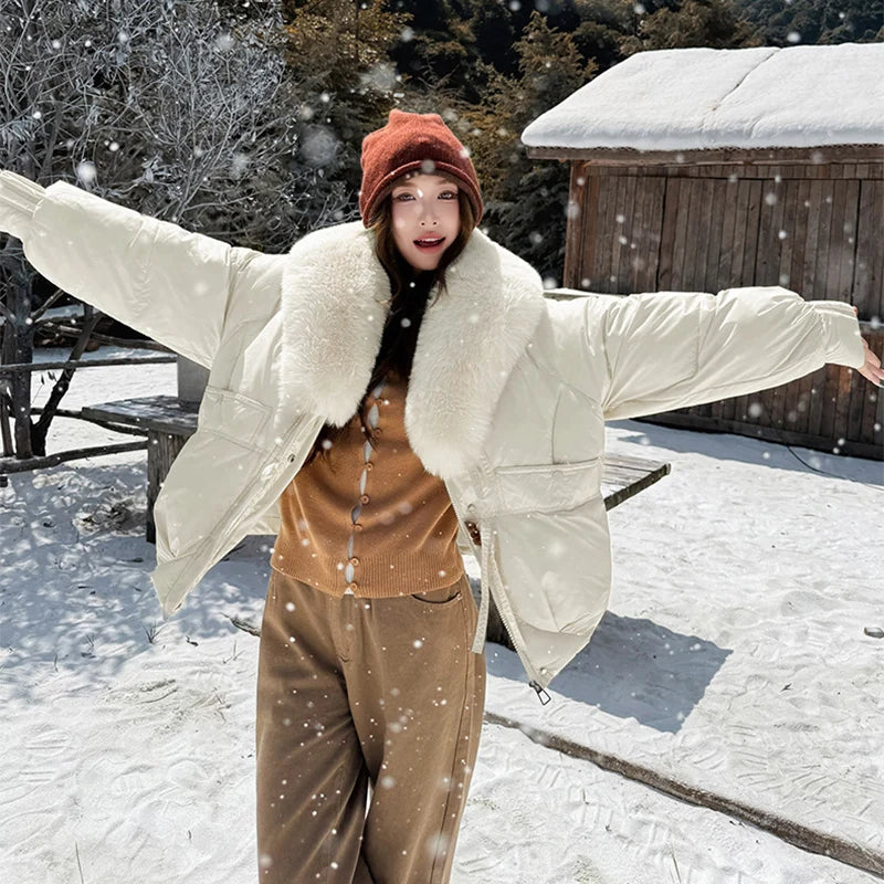 Furry Collar Warm Cotton Jacket Women Streetwear Loose Coldproof Warm Parka