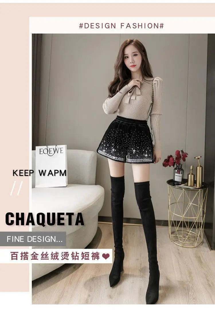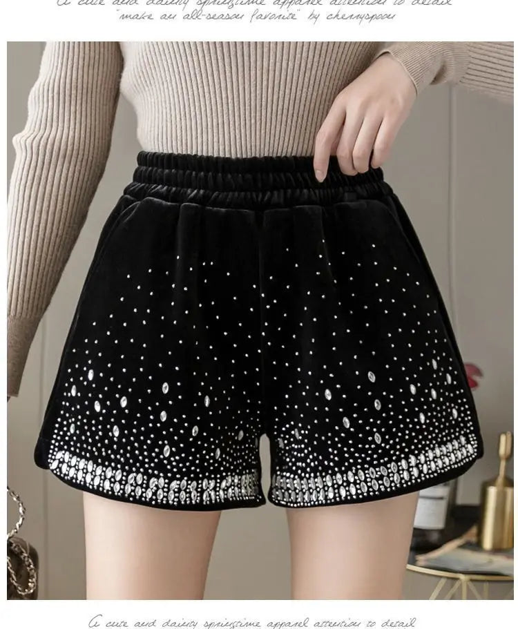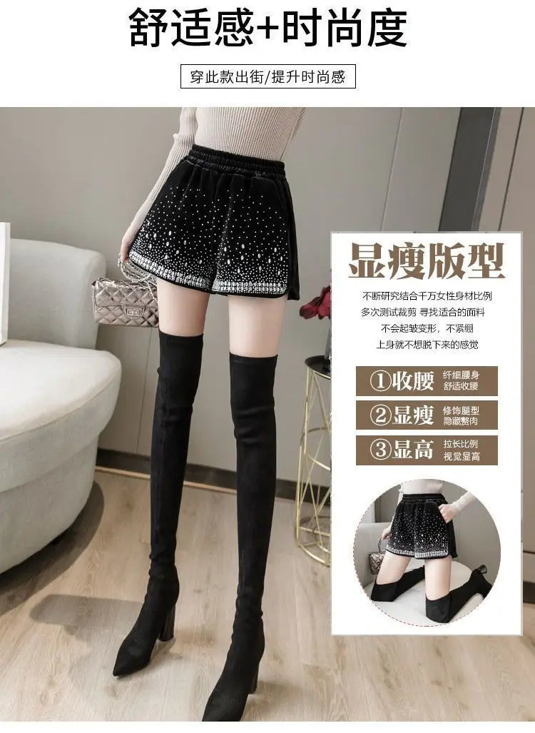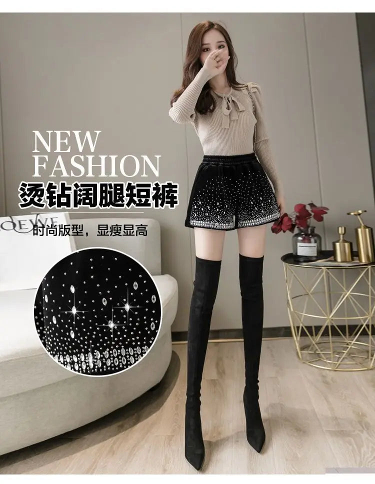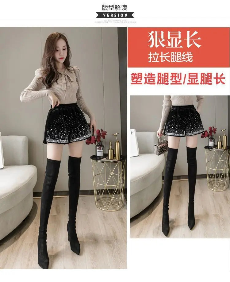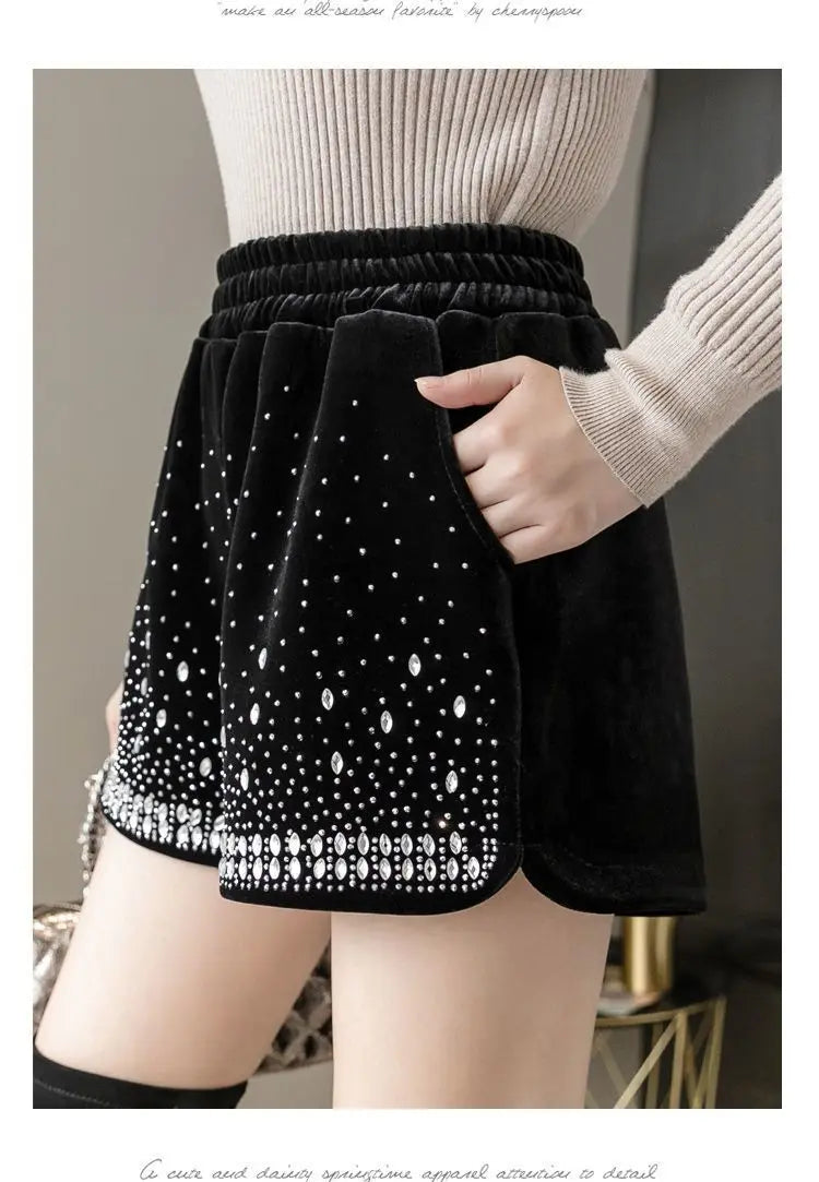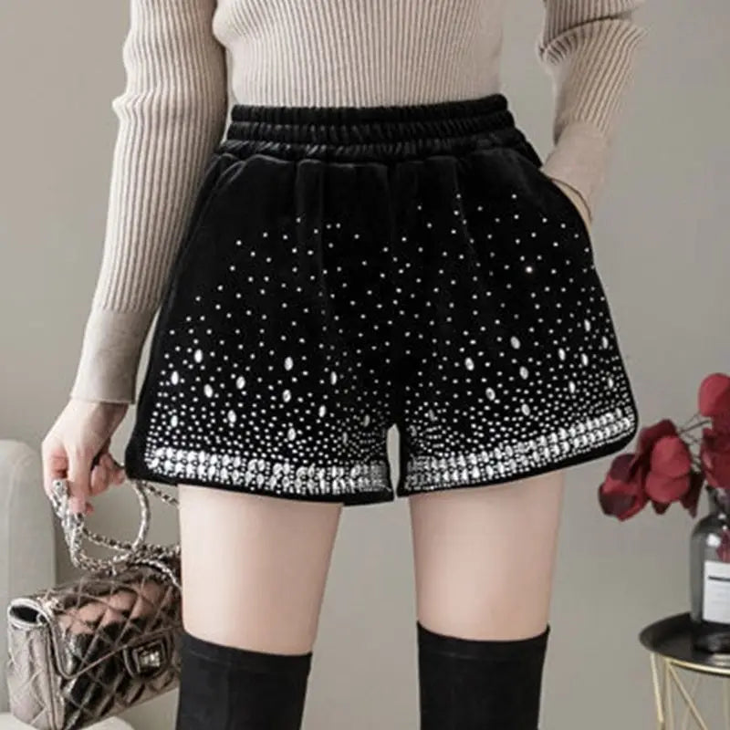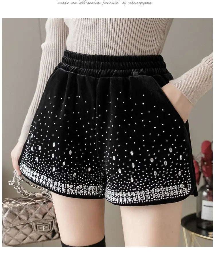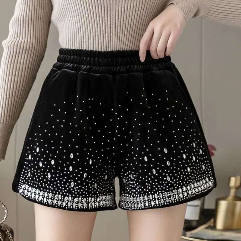 Glitter Casual Shorts Autumn Winter Fashion Stylish Design Versatile and Elastic High Waisted Wide Leg Pa...