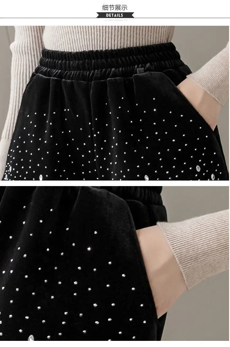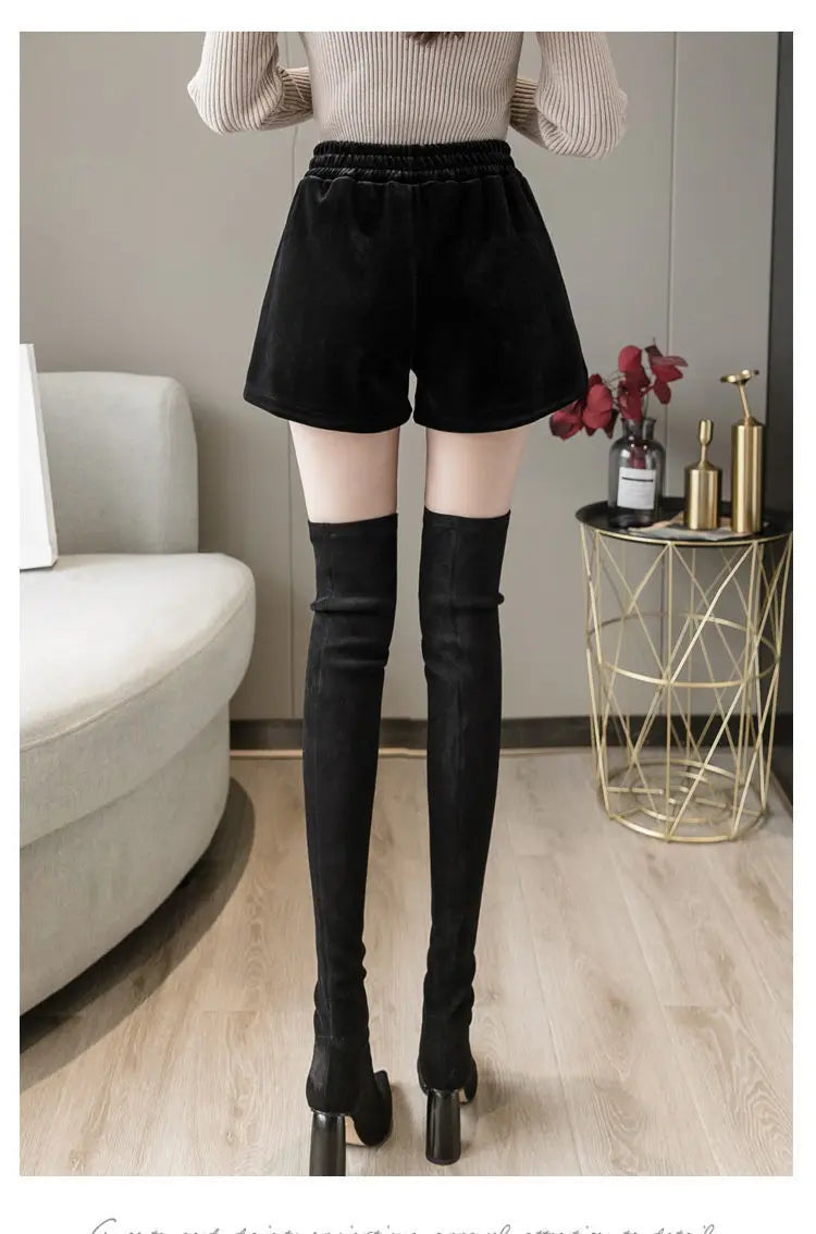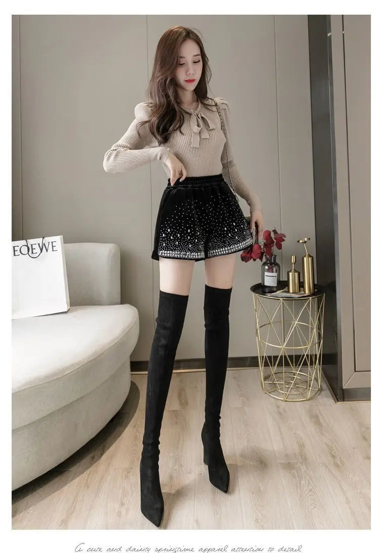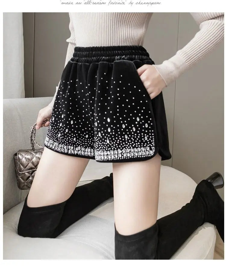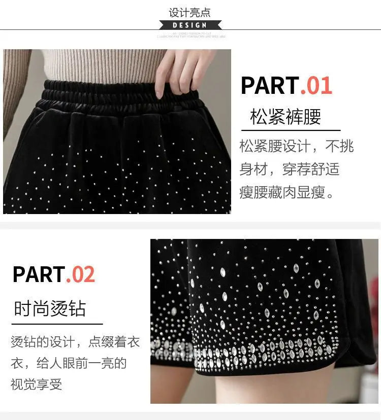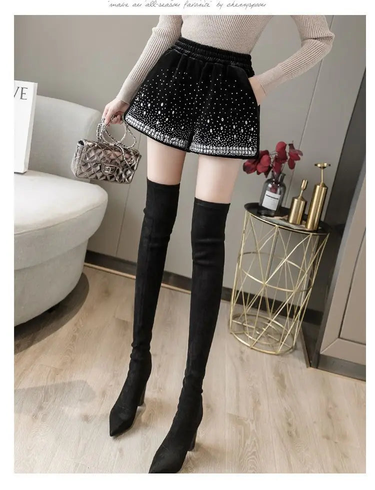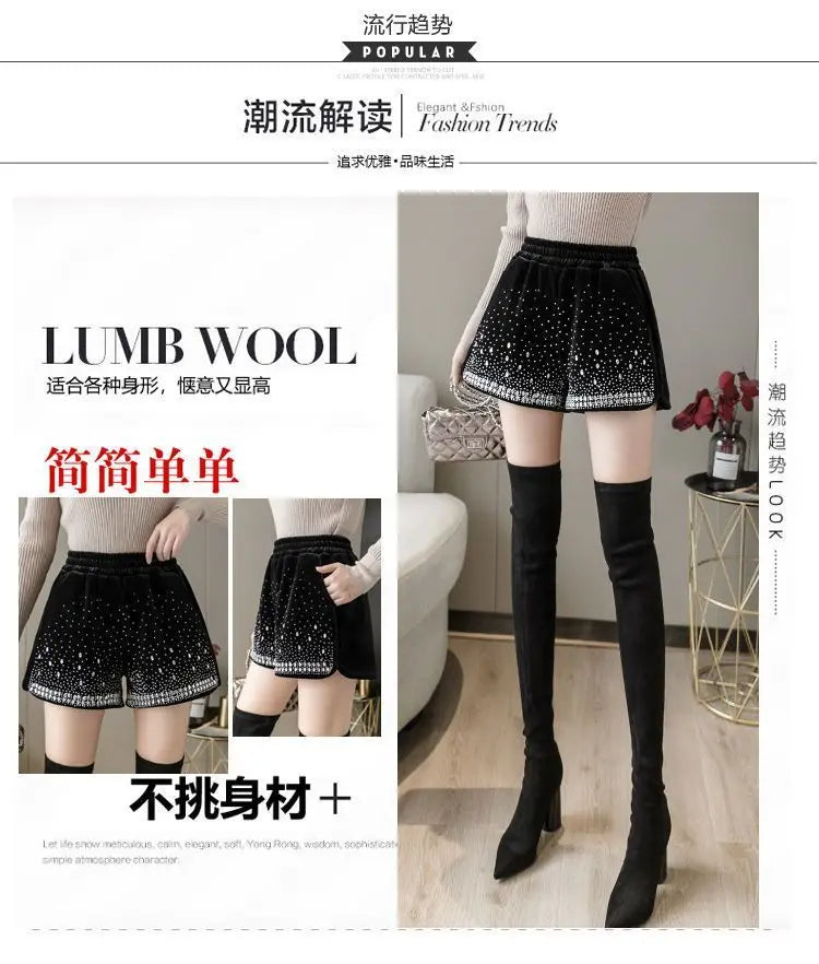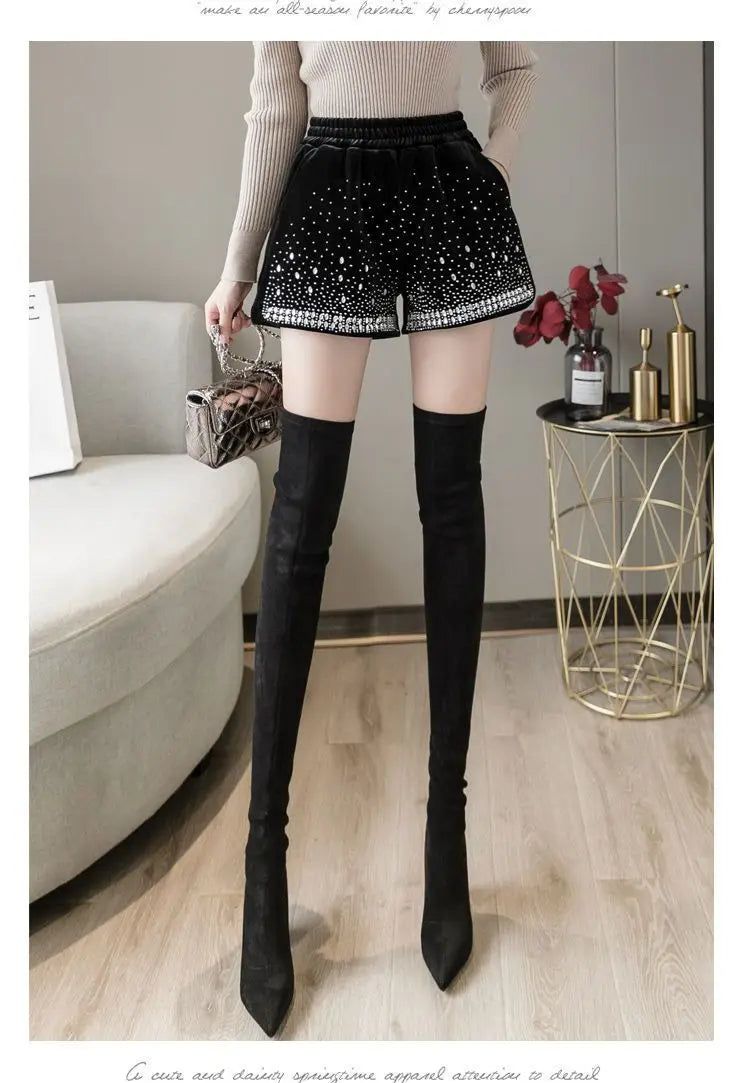 Glitter Casual Shorts Autumn Winter Fashion Stylish Design Versatile and Elastic High Waisted Wide Leg Pa...