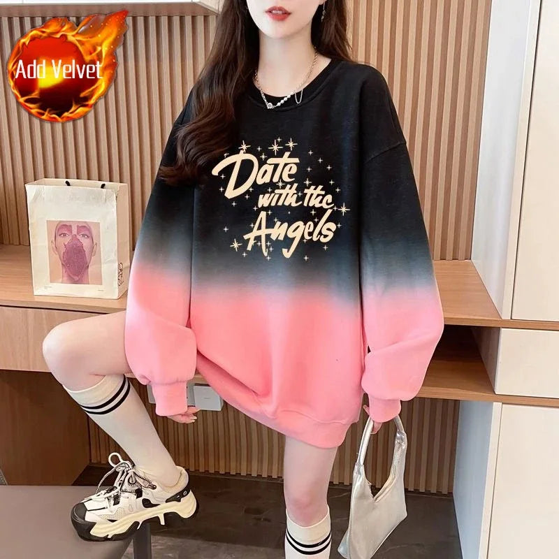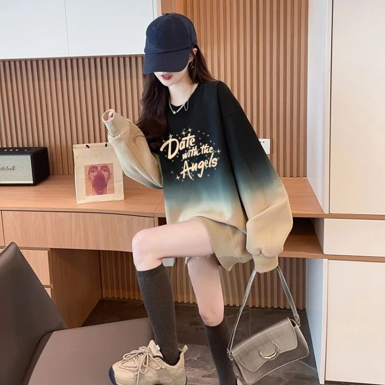Gradient Color Loose Women s Sweatshirts Casual Aesthetic Y2k Japanese Street...
