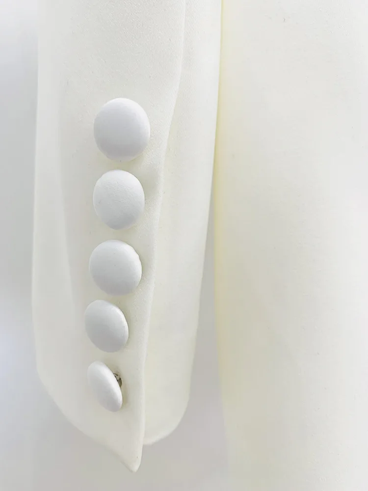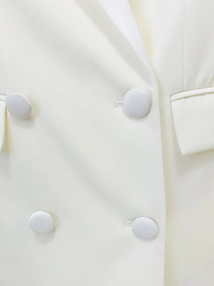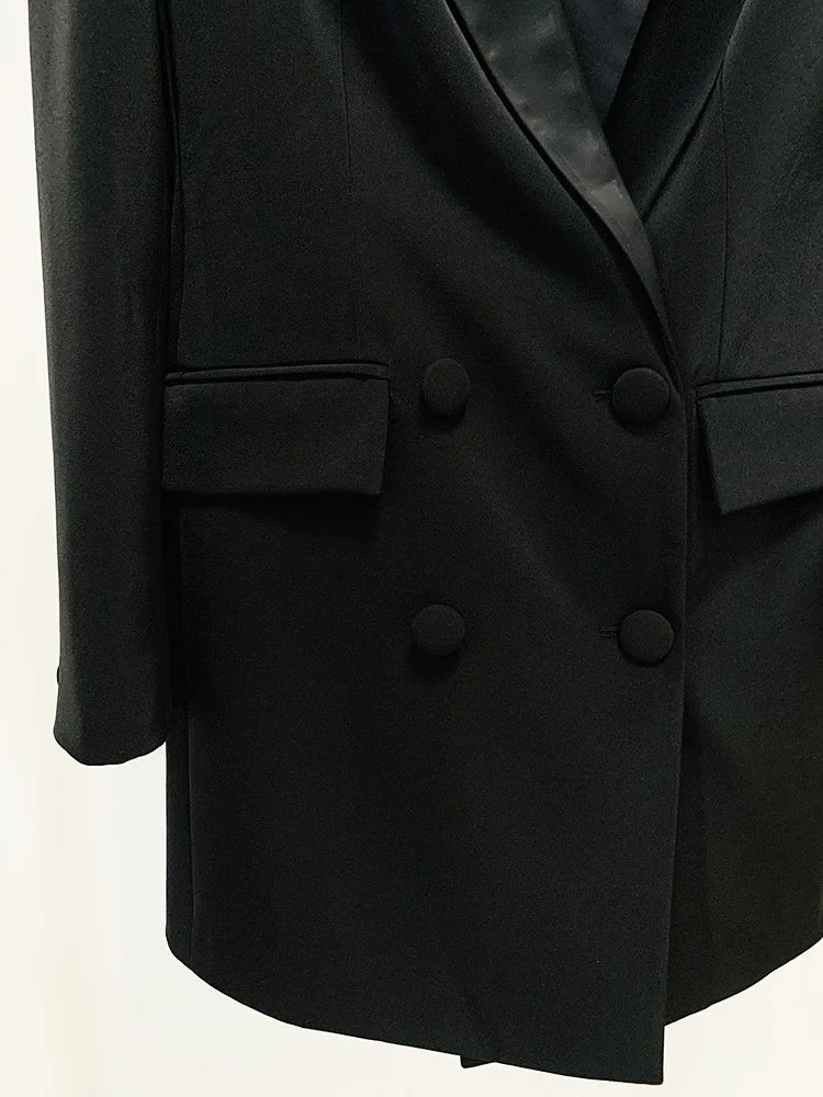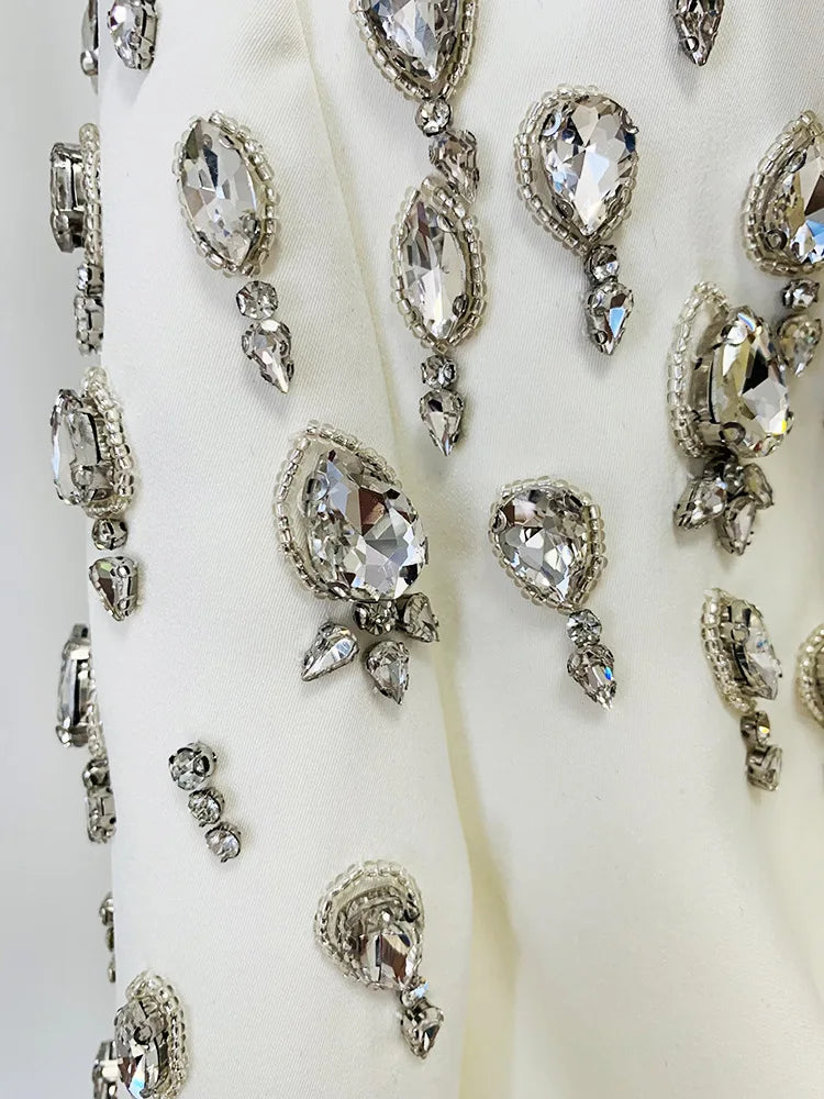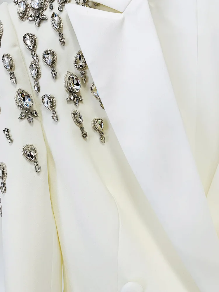 Handmade pearl inlaid diamond Long Blazer Dress Jacket Black White Double