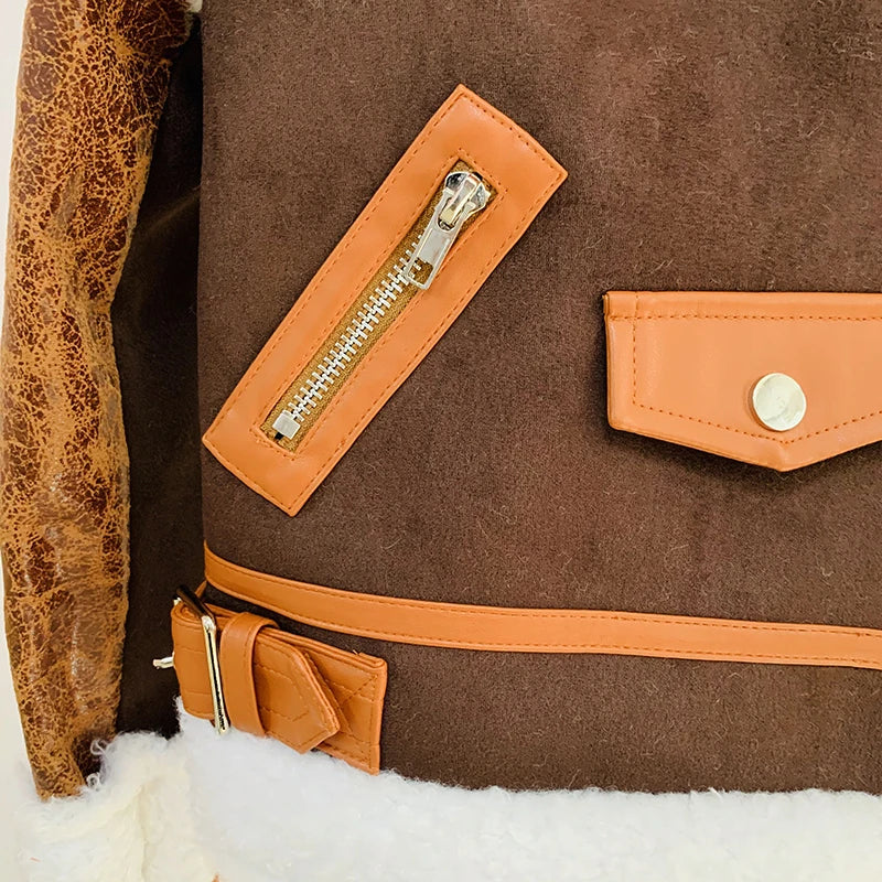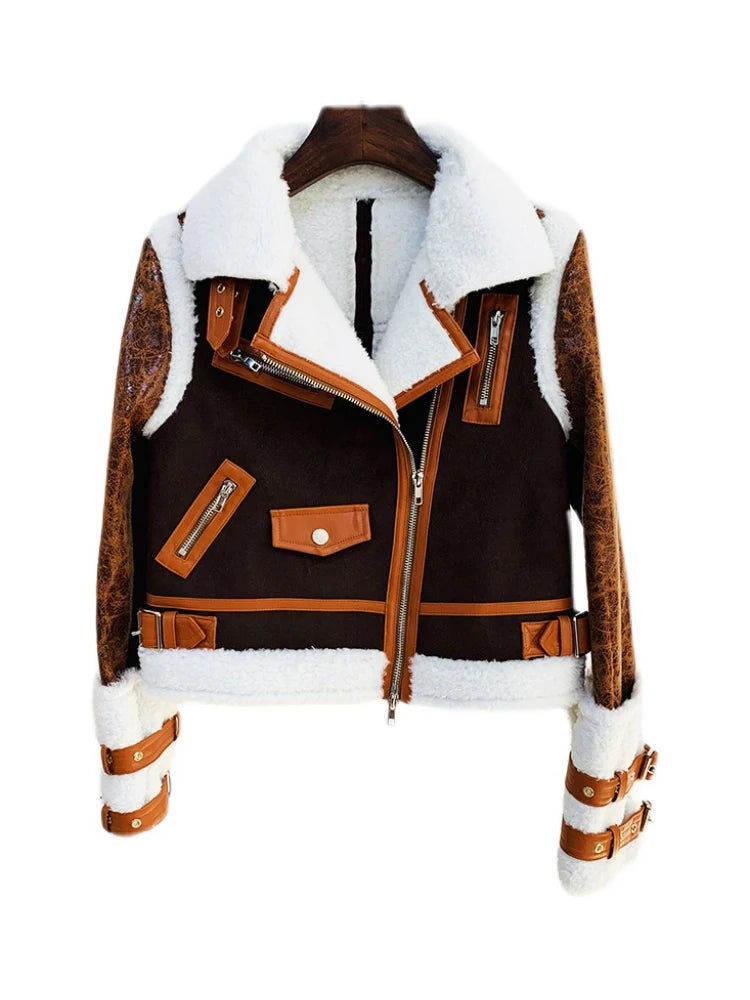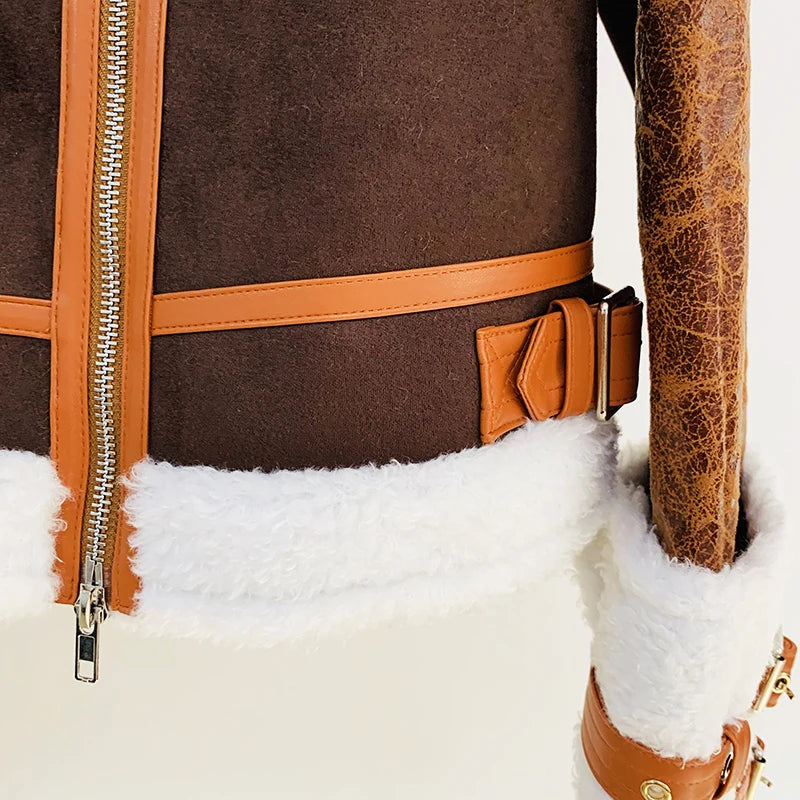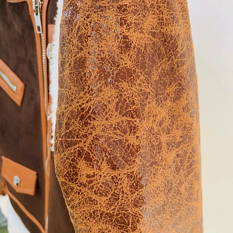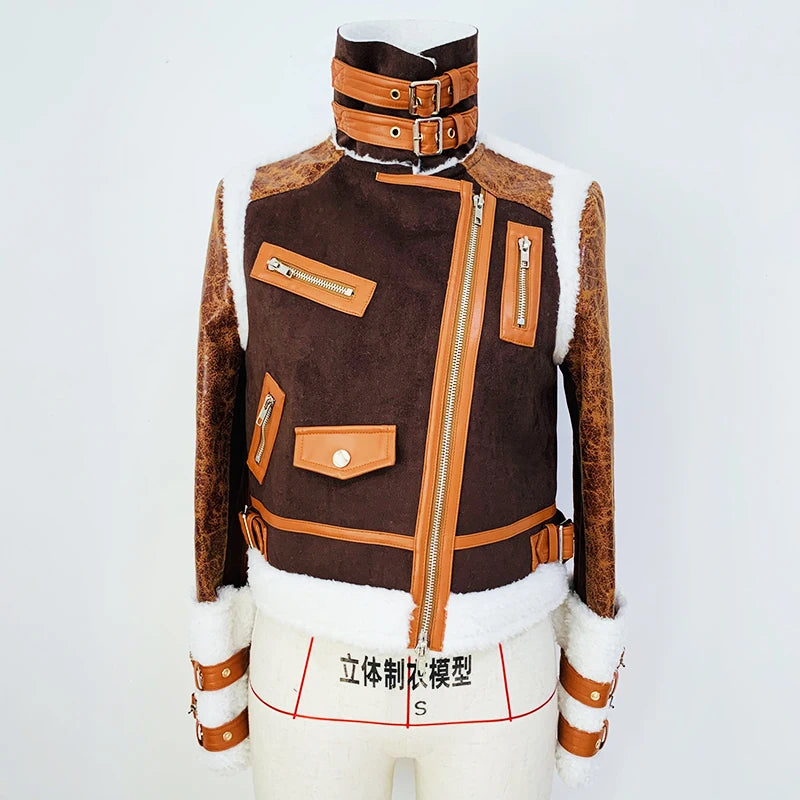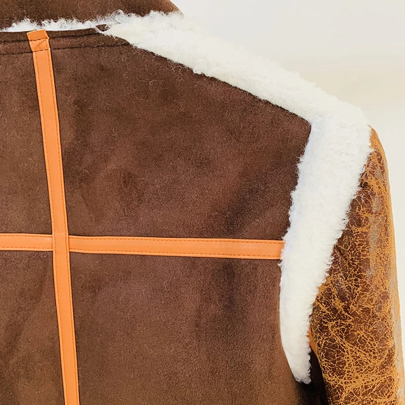 HIGH STREET Newest 2024 Winter Designer Jacket Women's Zippers Patchwork Synthetic Leather Fur Jacket Ove...