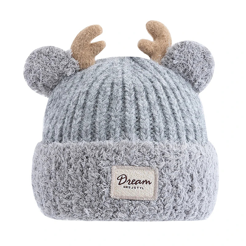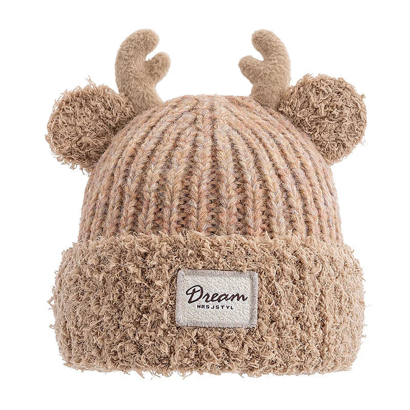 Women Cute Plush Fur Warm Winter Hat Young Trendy Knitted Hat With Deer Horn ...