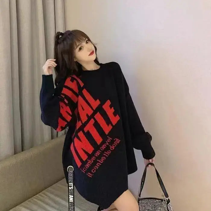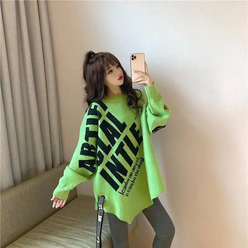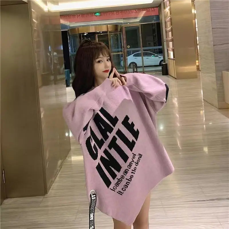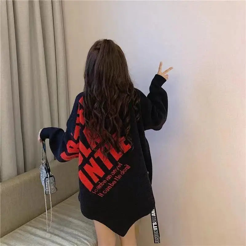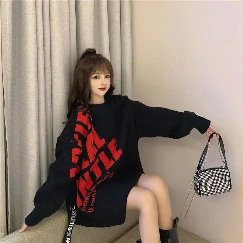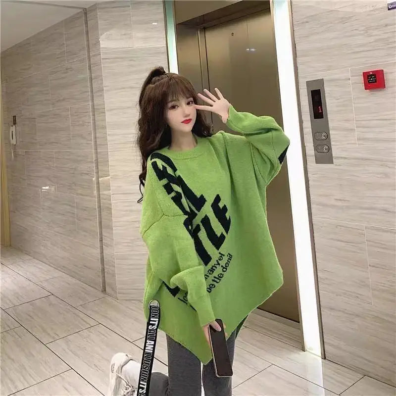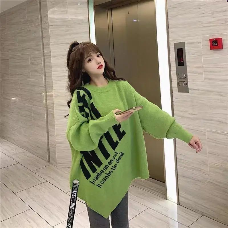 Irregular Sweater Women s Mid Length Loose Japanese Lazy Style Outer Knitted ...