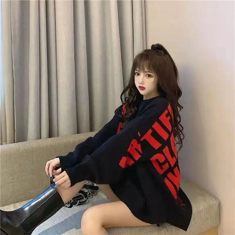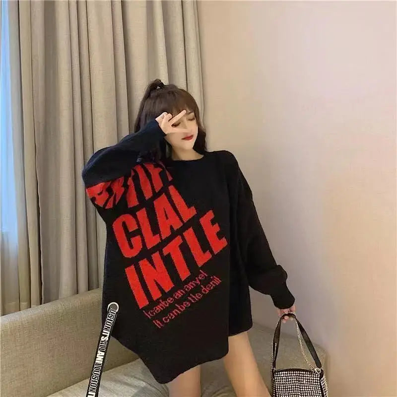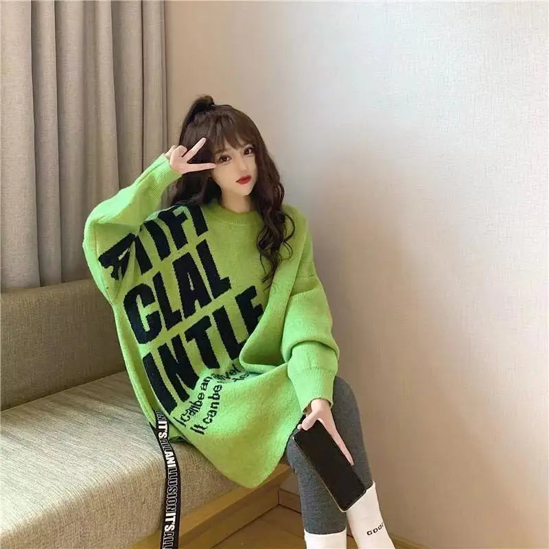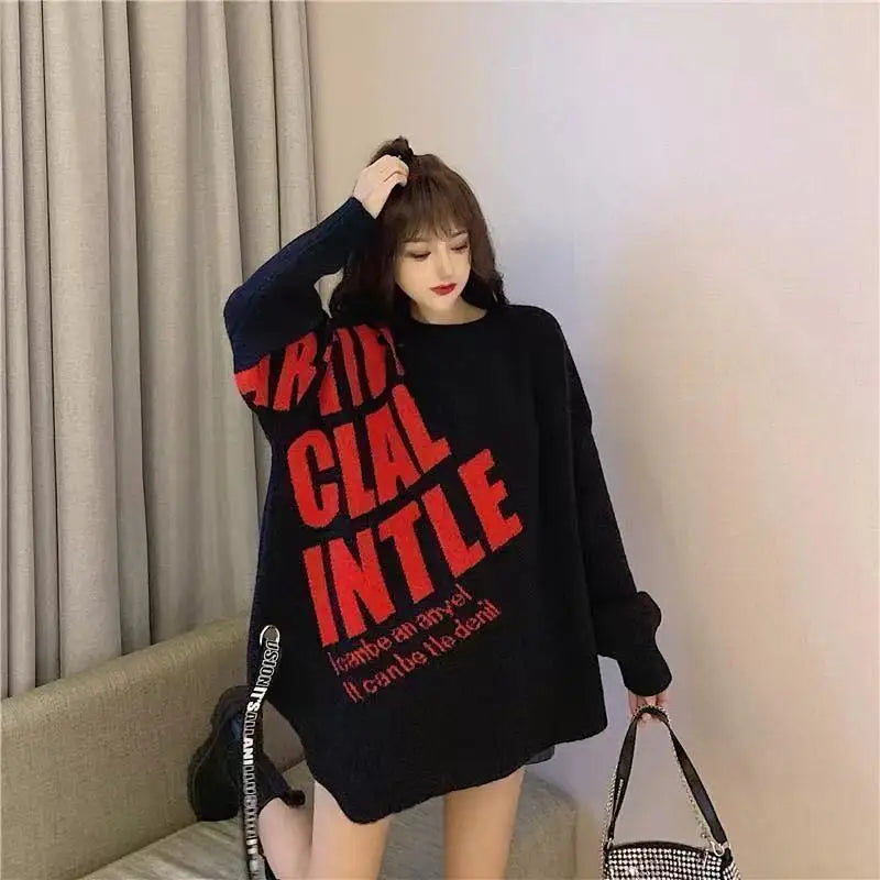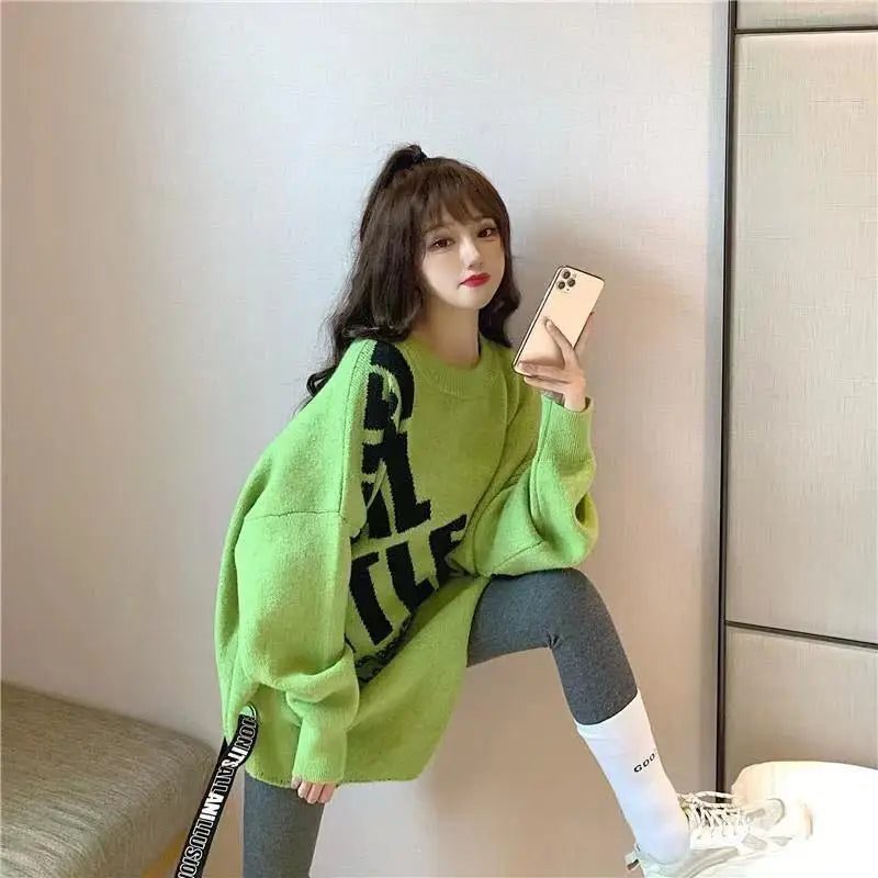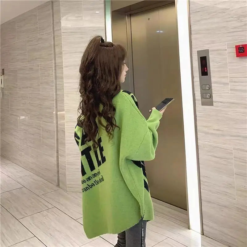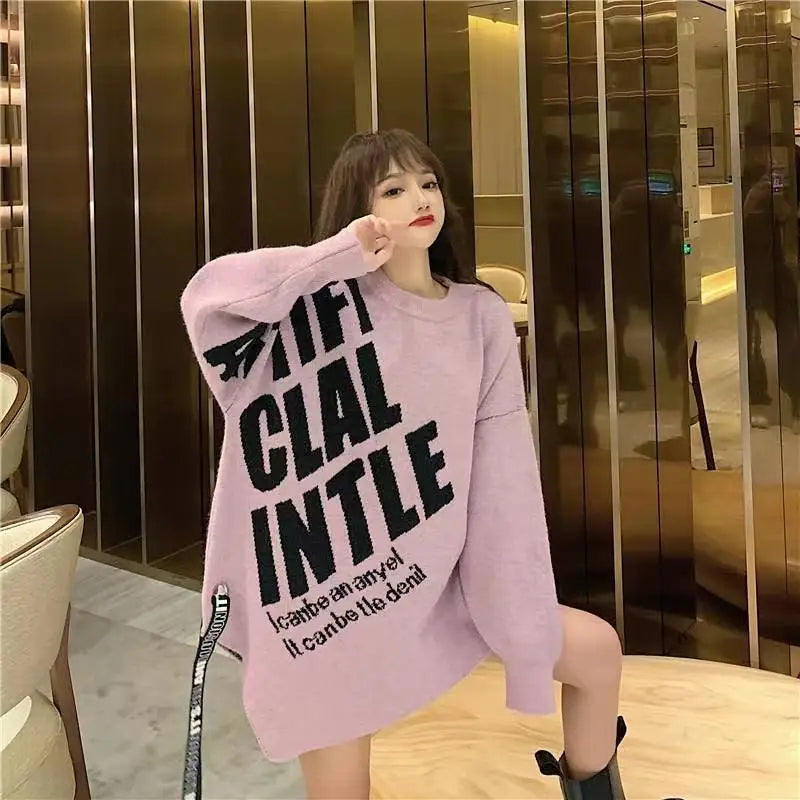 Irregular Sweater Women s Mid Length Loose Japanese Lazy Style Outer Knitted ...