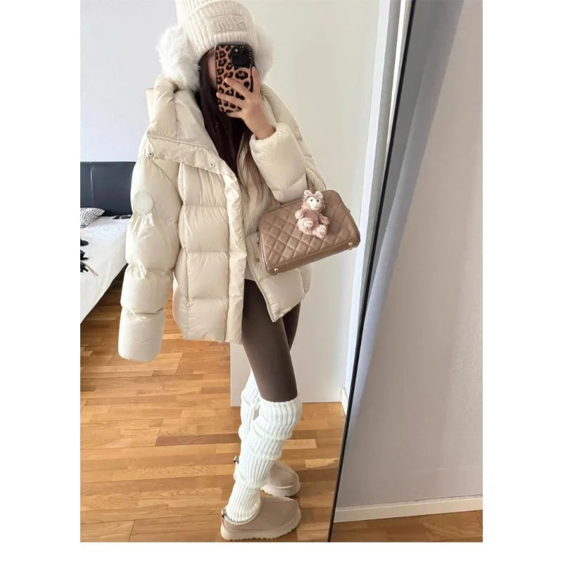 Korean Cotton Parkas Hooded Women Winter Oversize Coat Thick Warm Loose Puffer