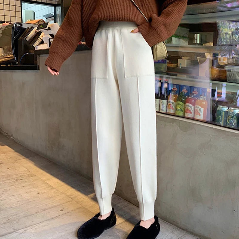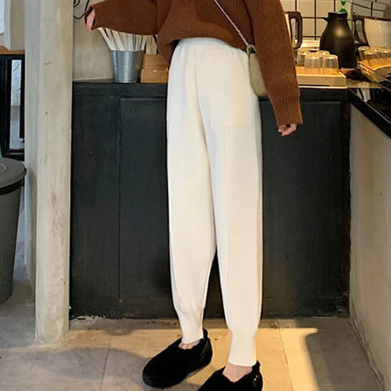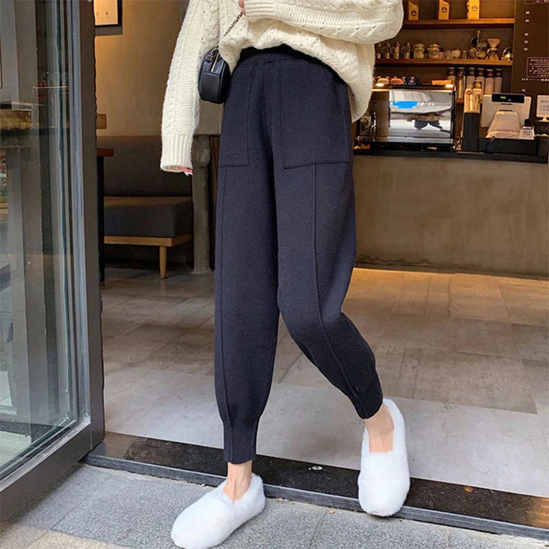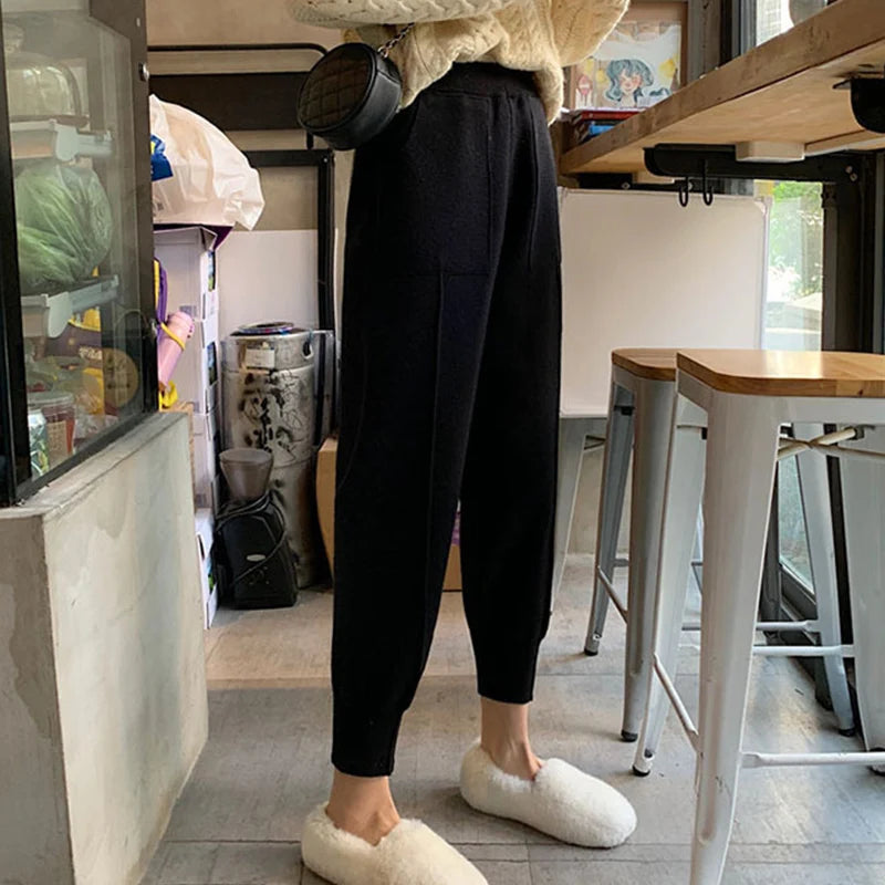 Korean High Waist Ankle Length Pants Autumn Winter Loose Elastic Waist