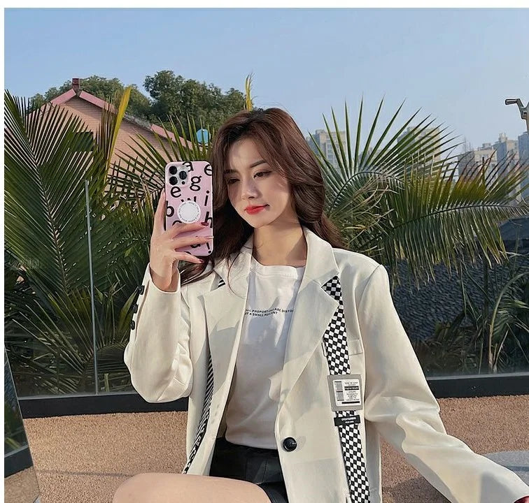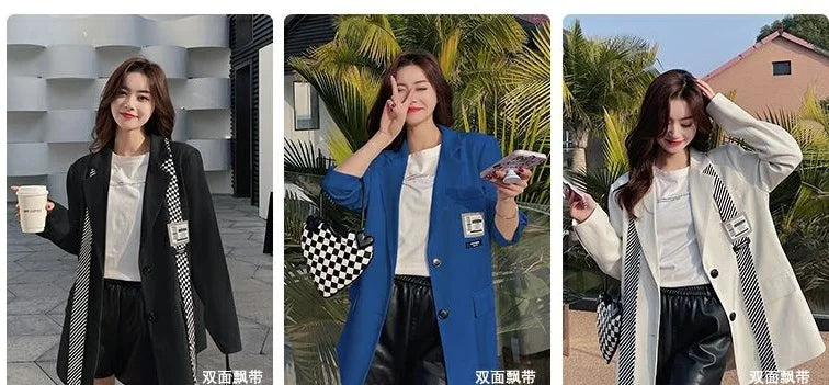 Leisure Blazer Jacket Women's Outwear Spring Summer 2024 New Fashion Sweet Loose Long Sleeves Blazer Fema...