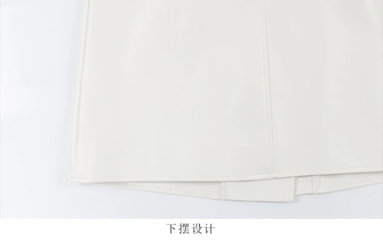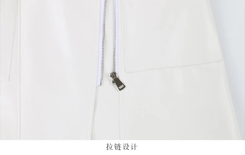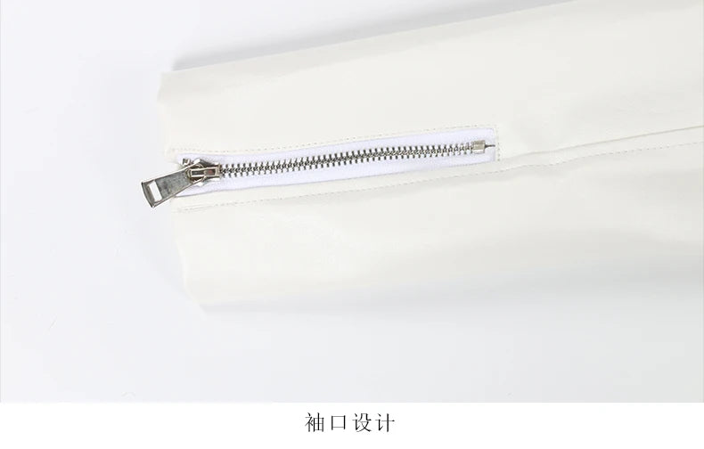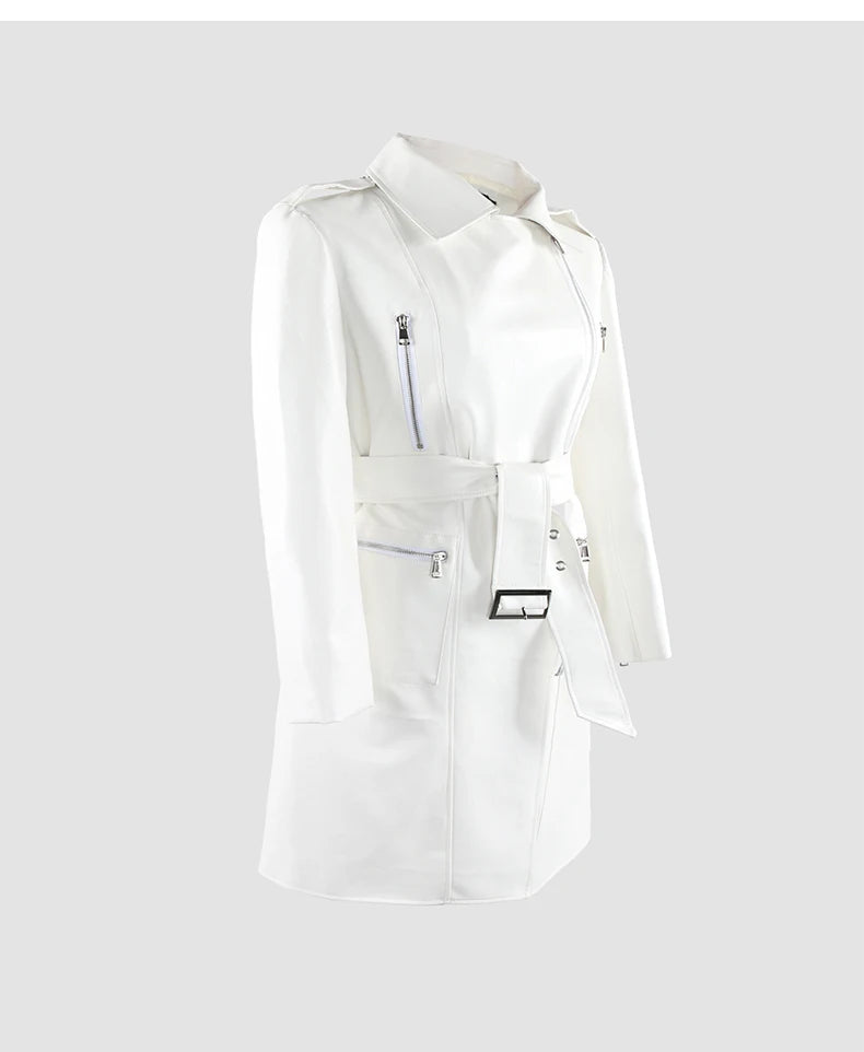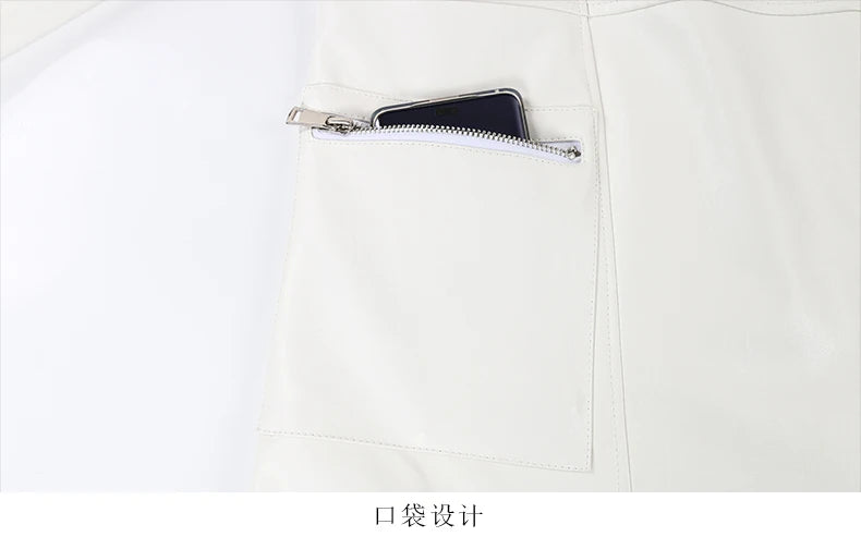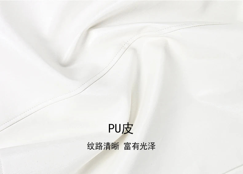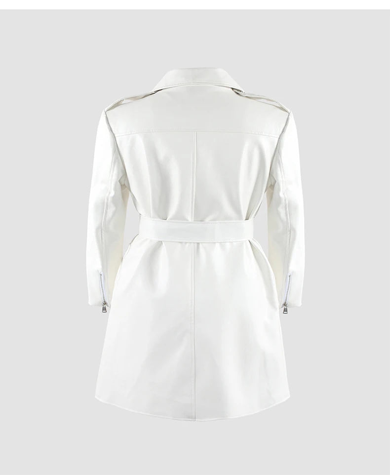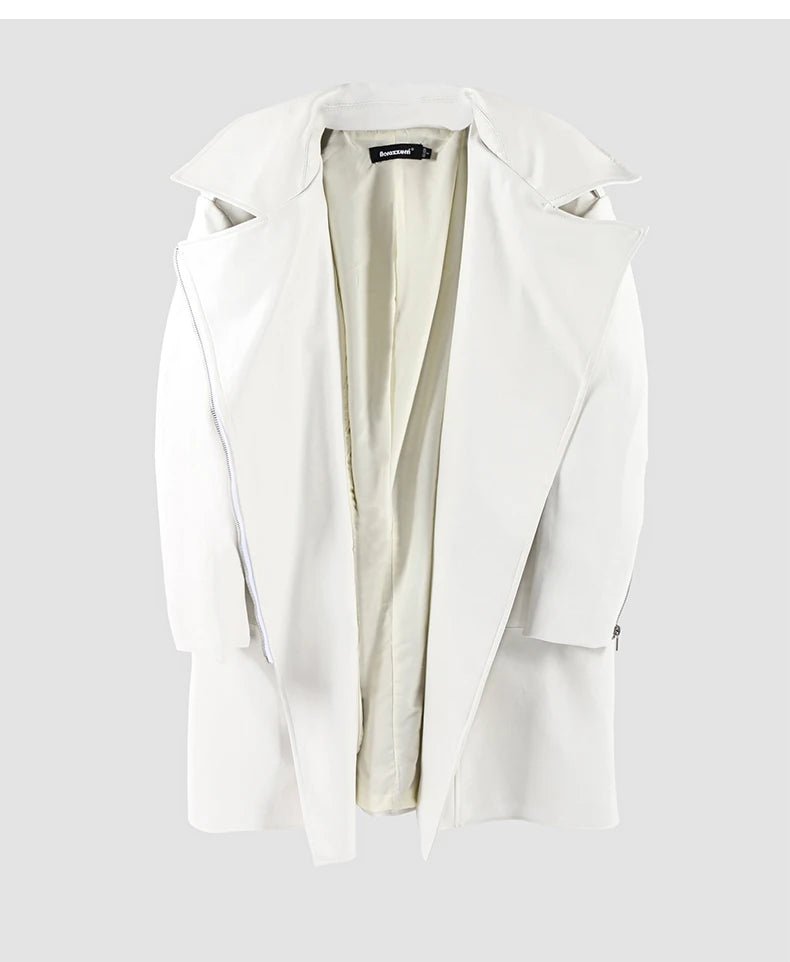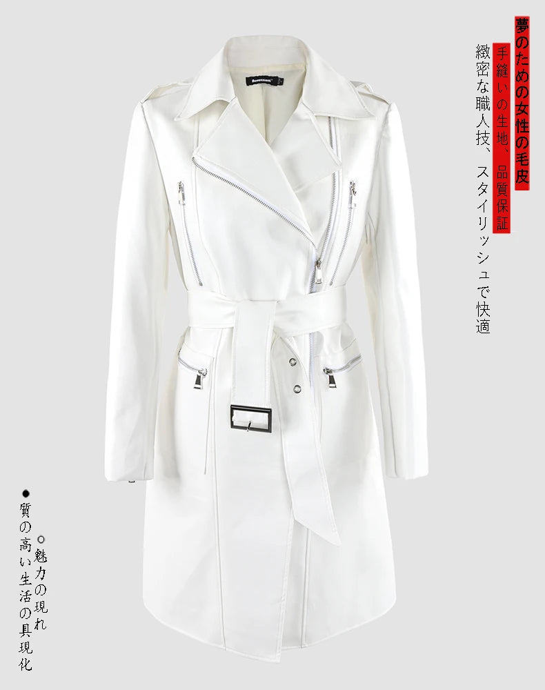 Nerazzurri Spring Cool Handsome Long White Pu Leather Biker Jacket Women Zipper Belt Fall 2023 European F...