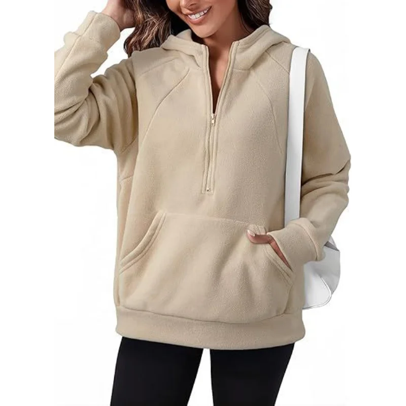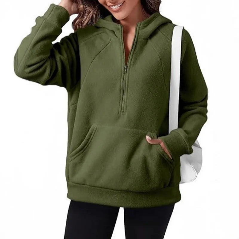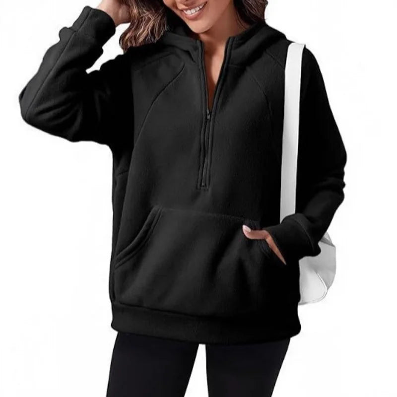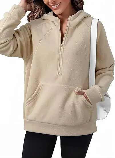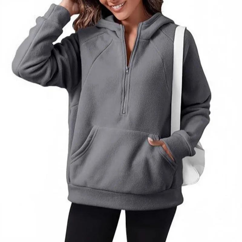 European and American Autumn and Winter Women s Half zipper Hoodie Fuzzy Soli...
