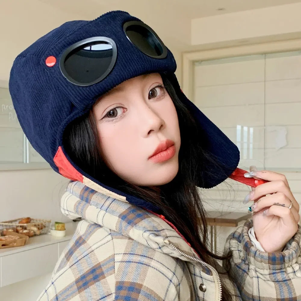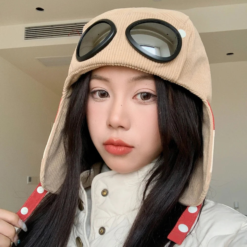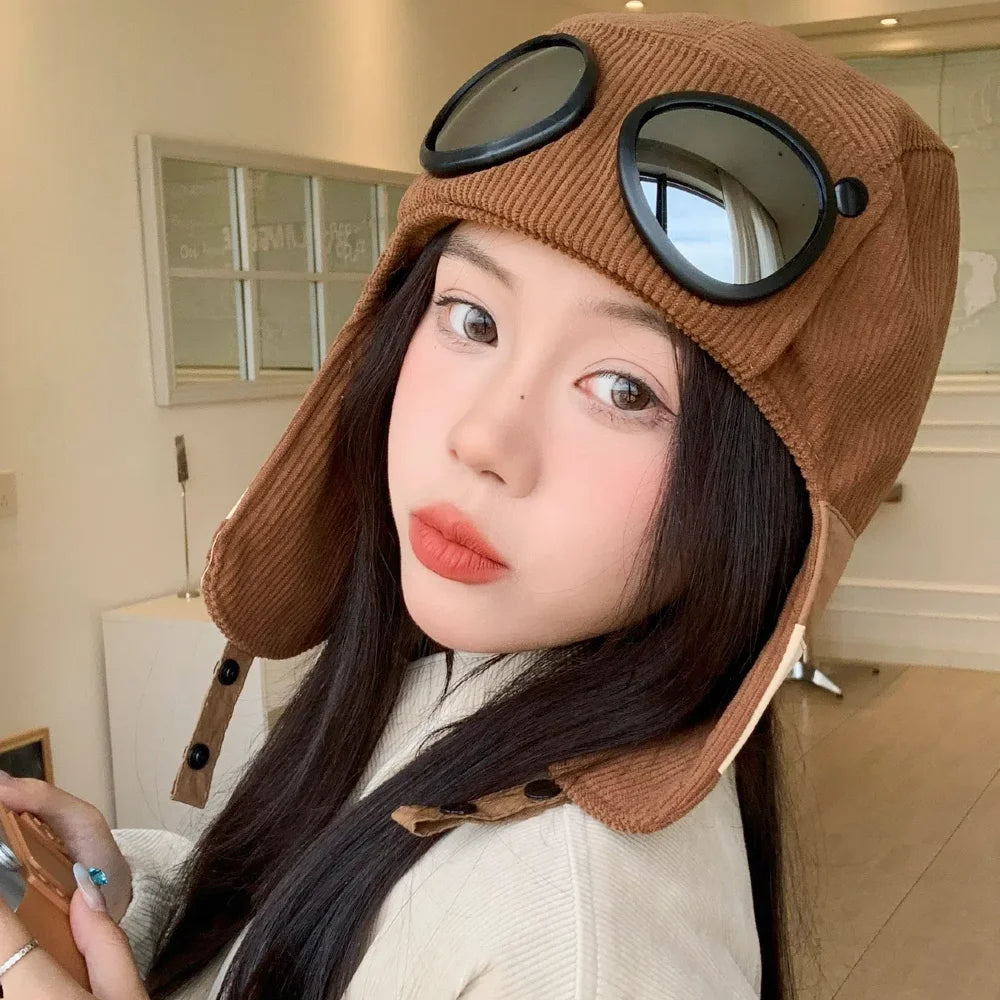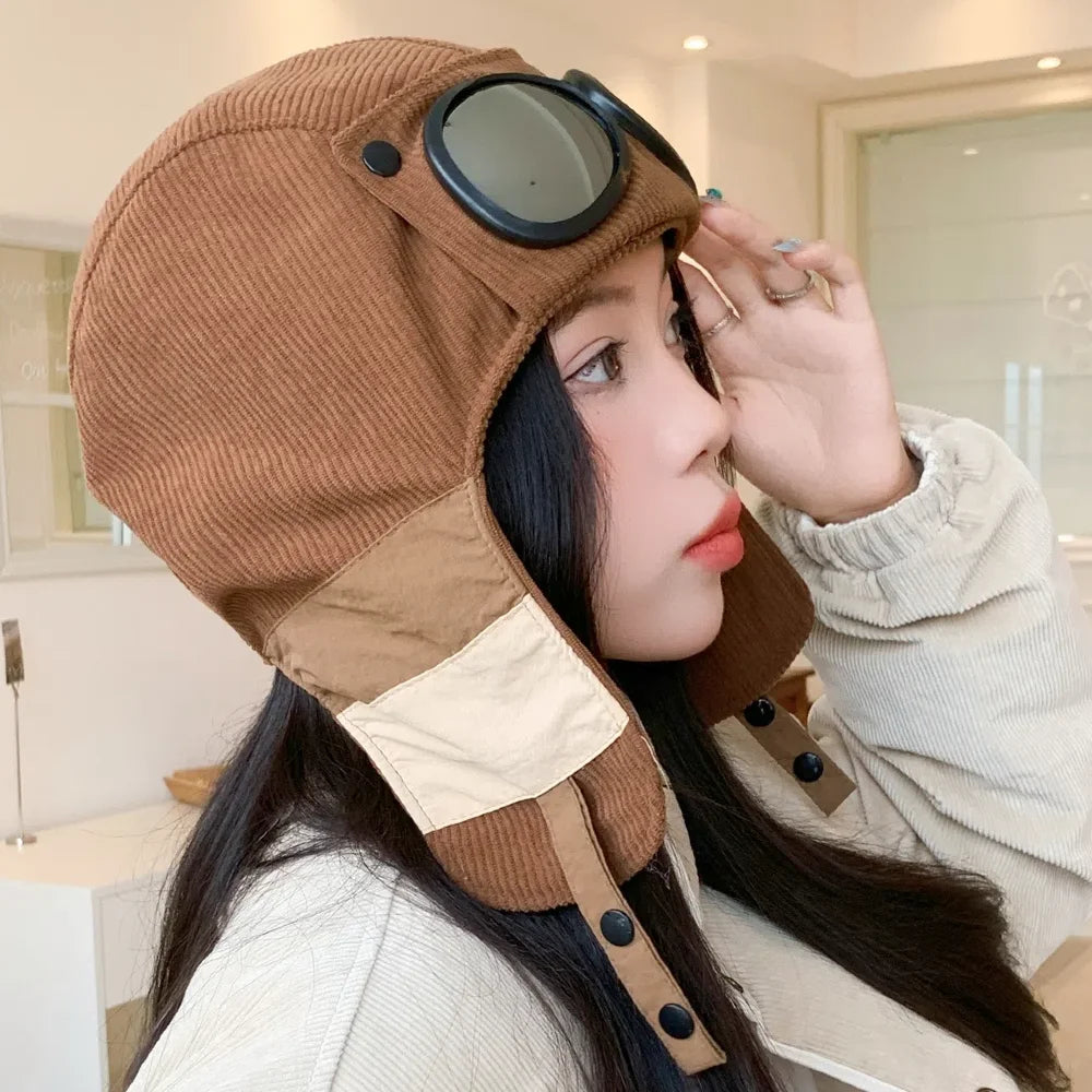 Style Bomber Hats Ear Protection Hat Fashionable Pilot Style Hat With Sunglas...