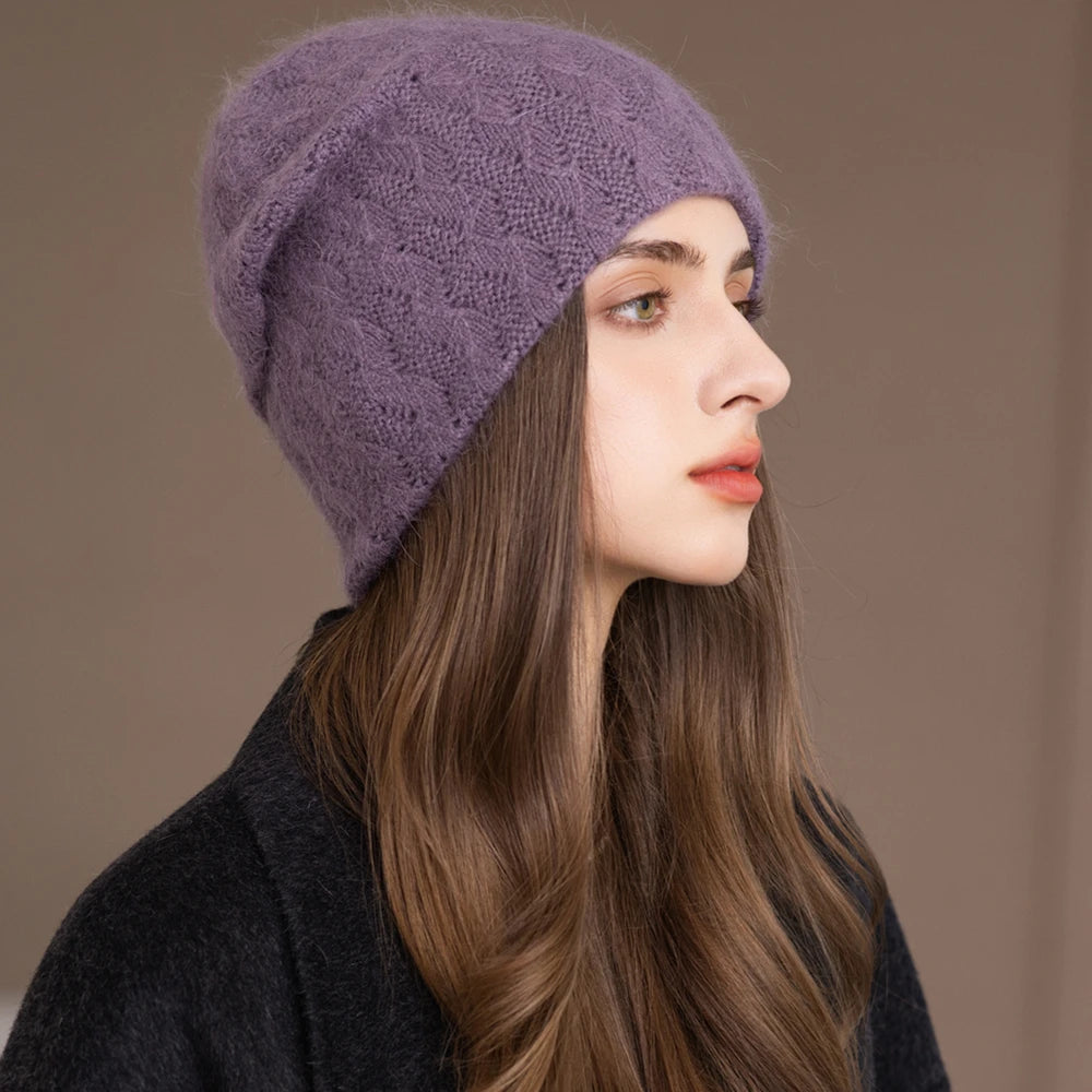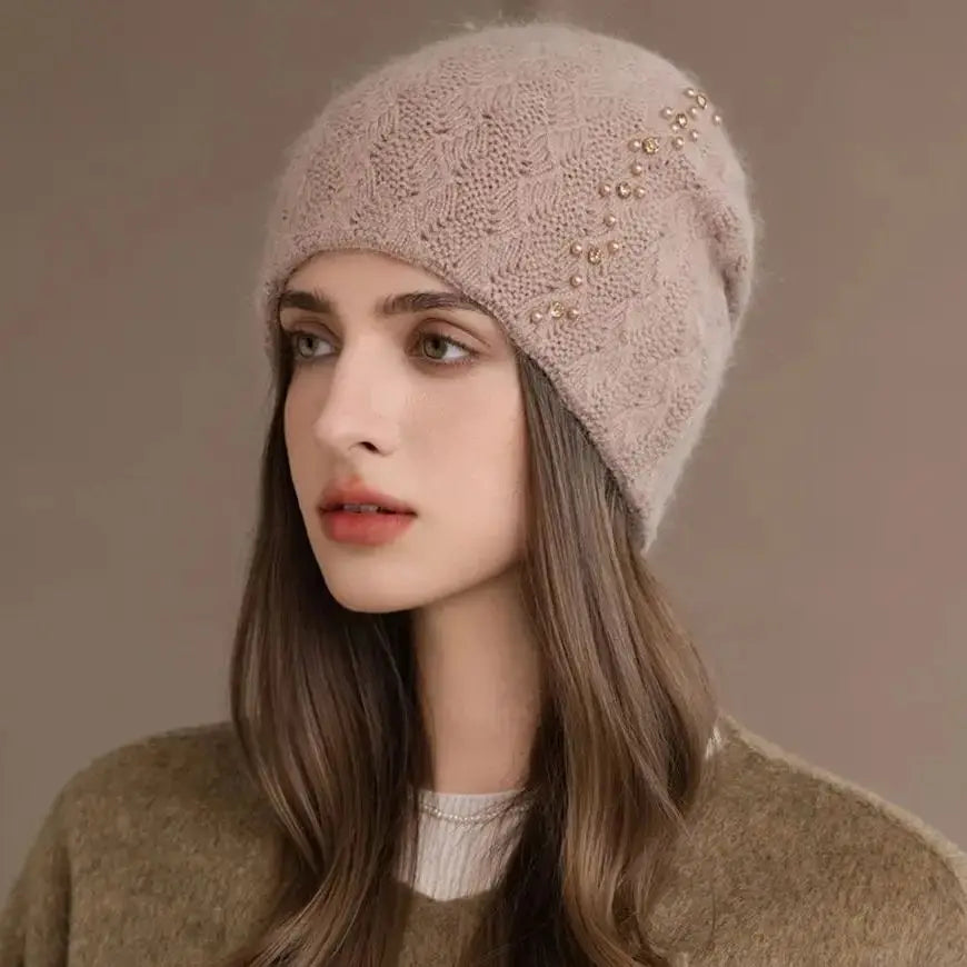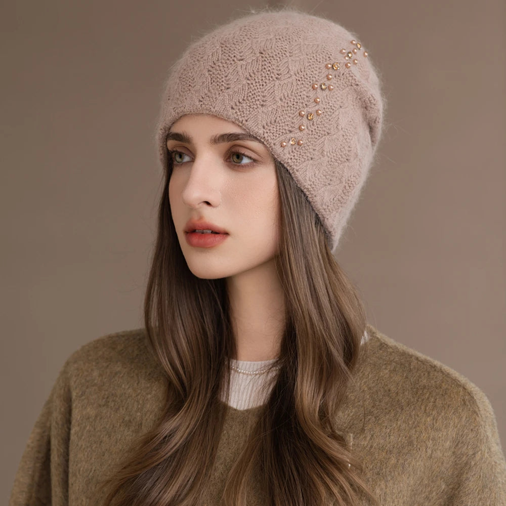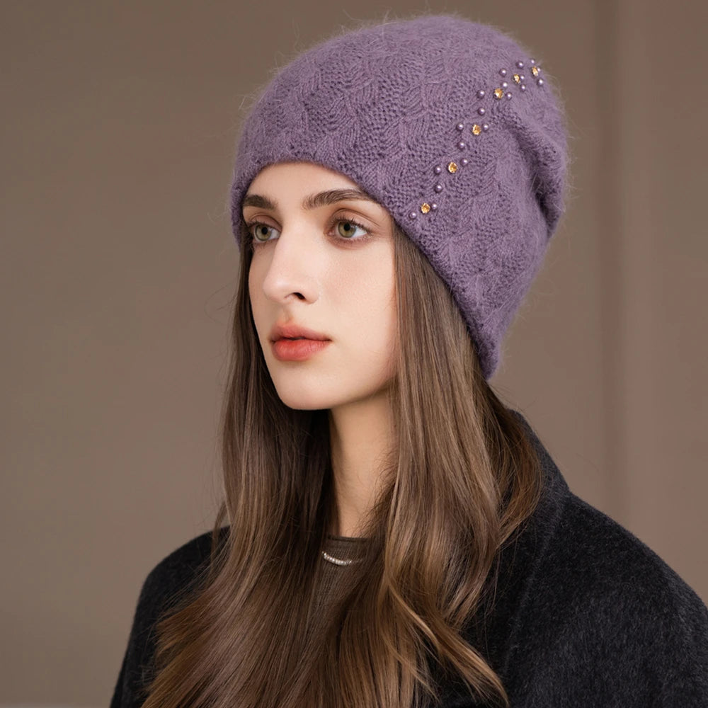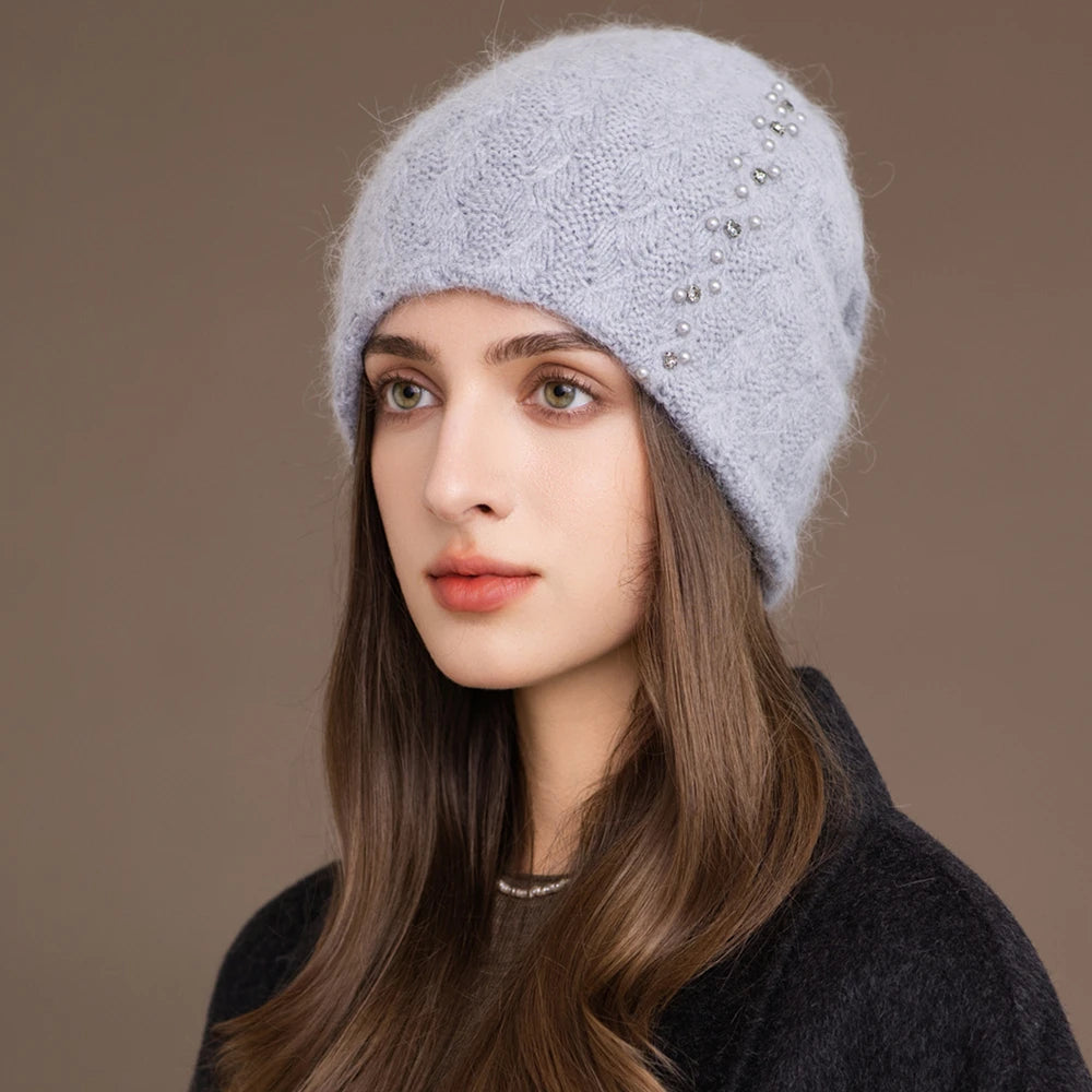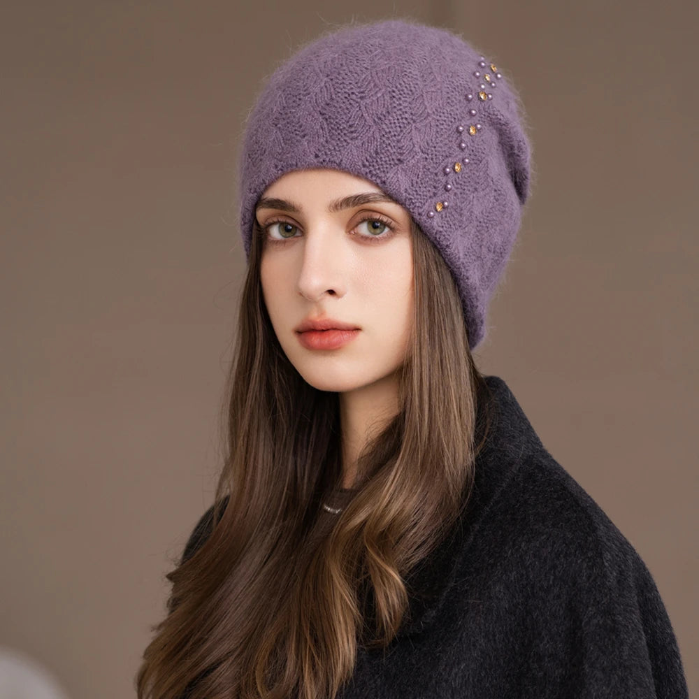 Style Winter Women Hat Decorate Beanie Hat Rabbit Fur Blend Warm Winter Cap Y...