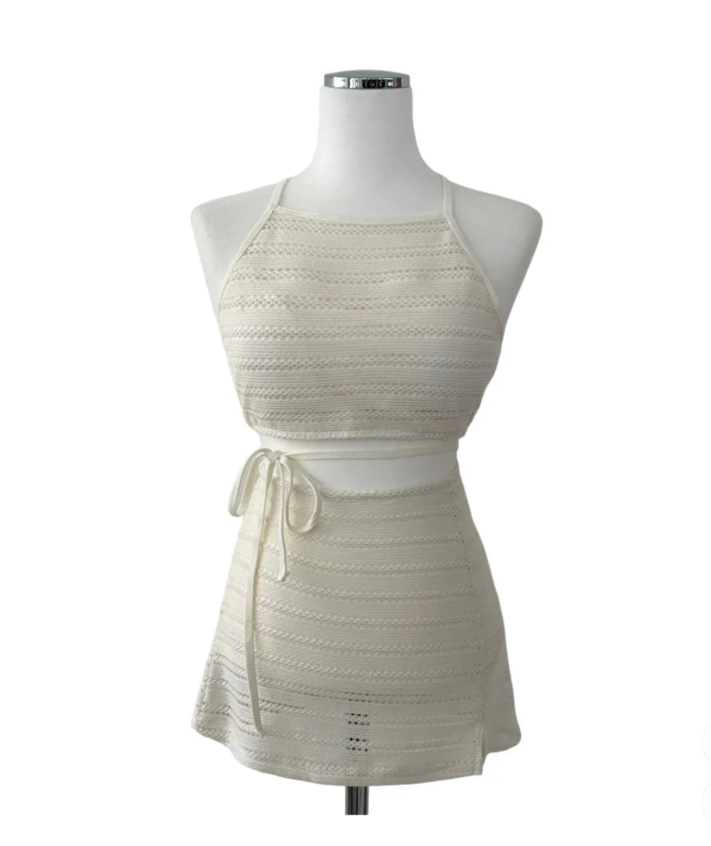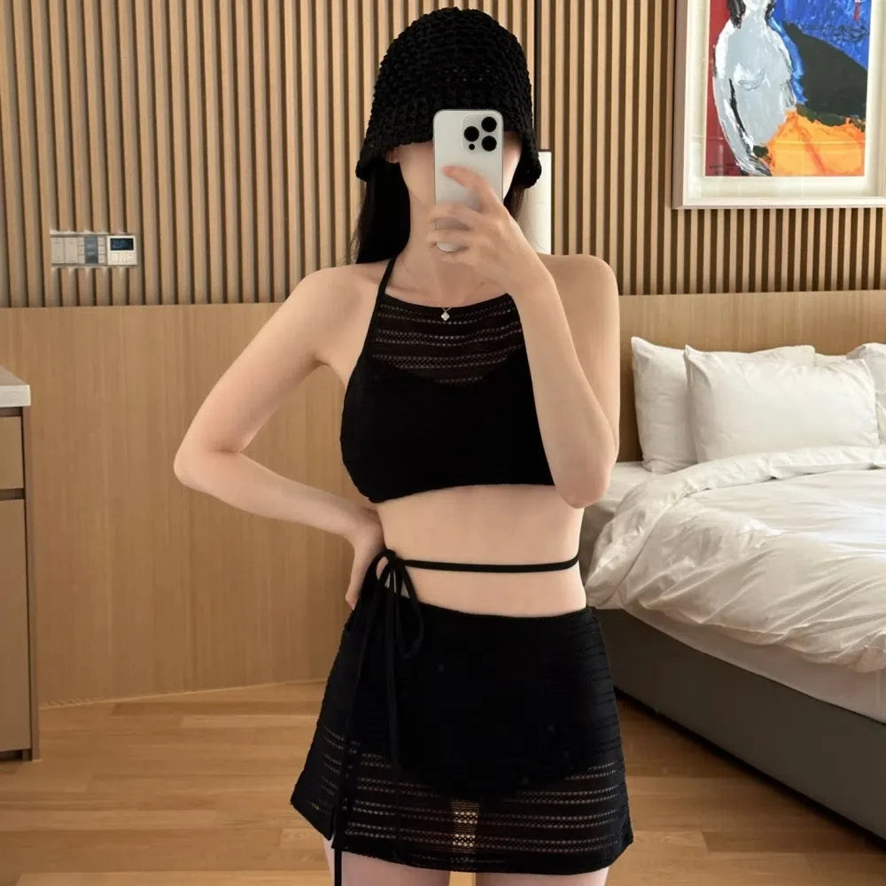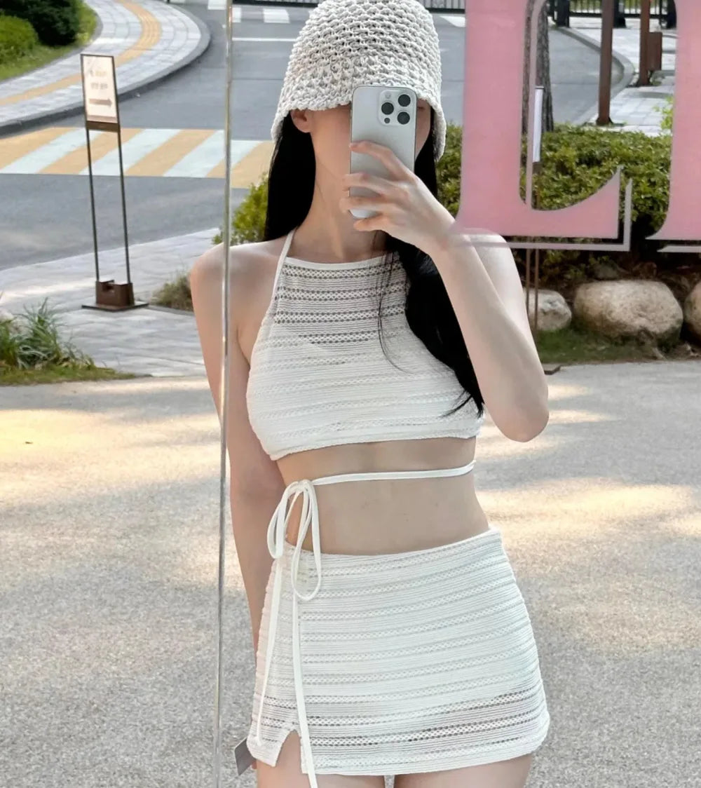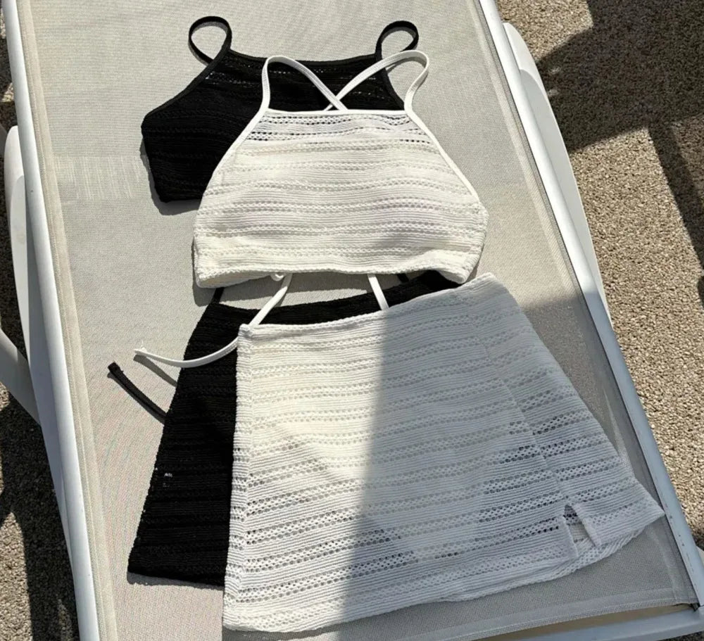 Two Pieces Set Swimsuit Women White Swimwear Sexy High Neck Bikini High Waist