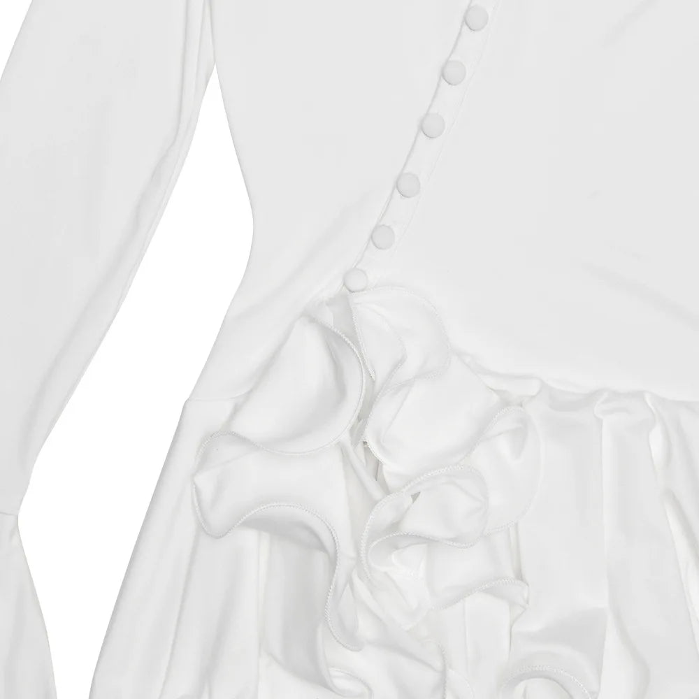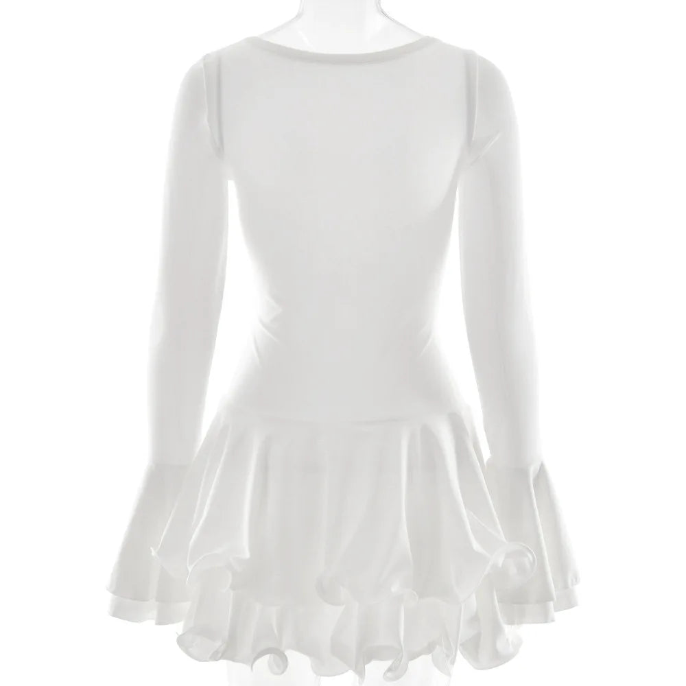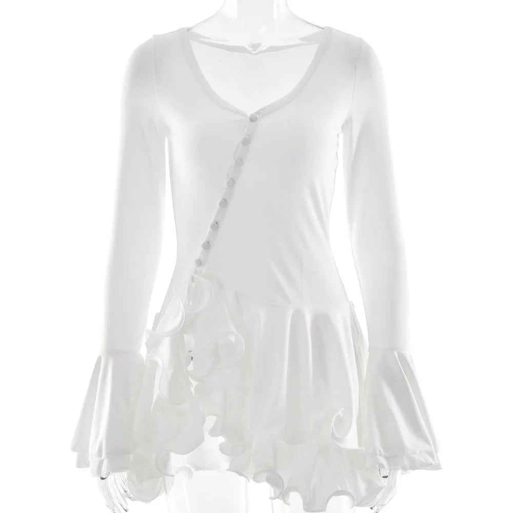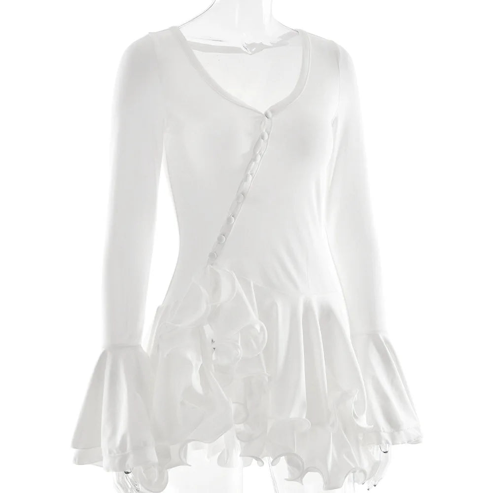 Pink Flare Sleeve Ruffle Pleated Mini Dress Women s Irregular Deep V neck