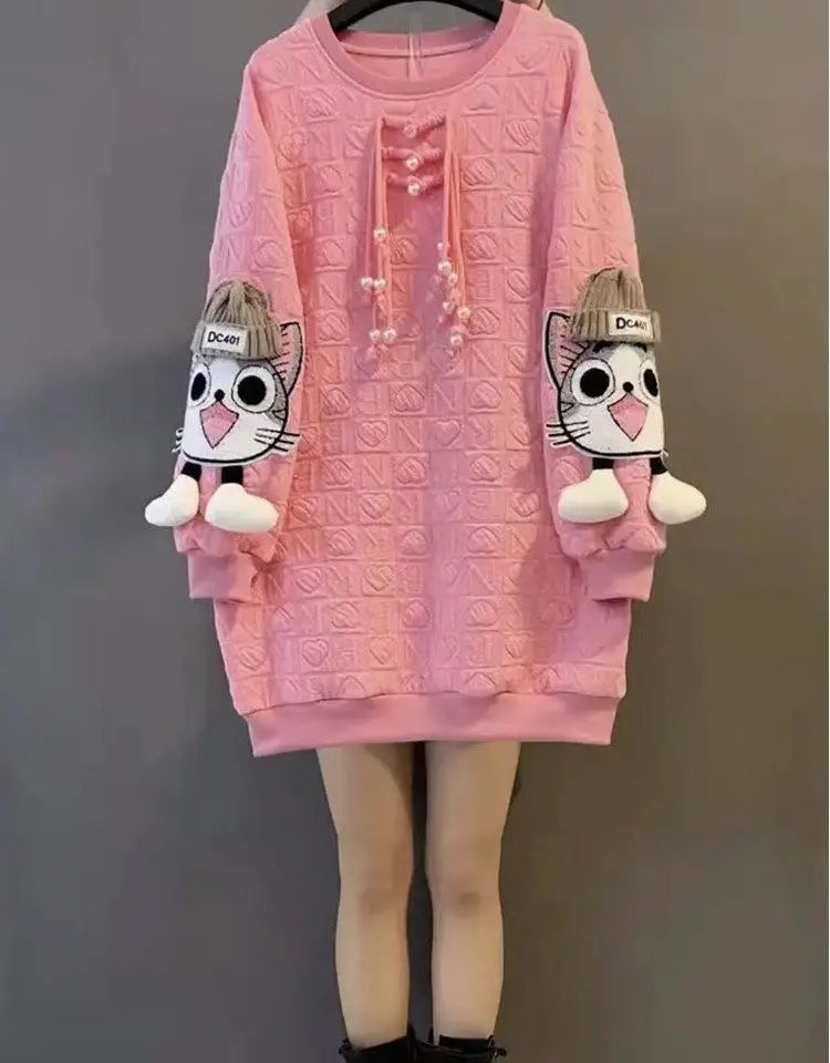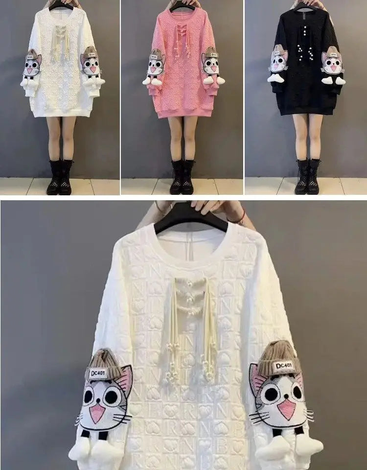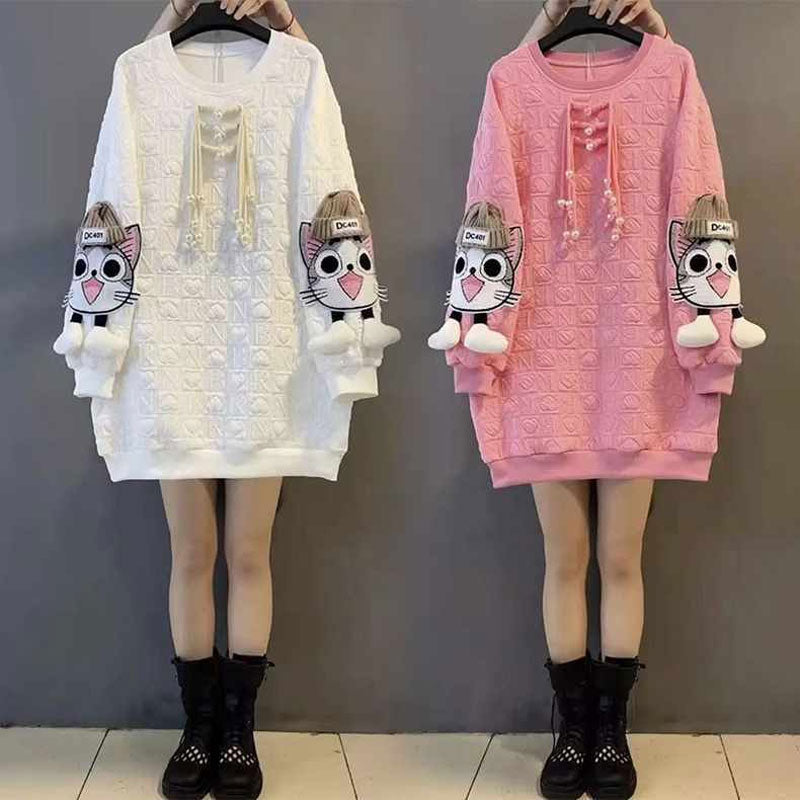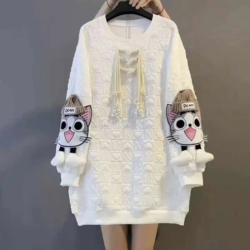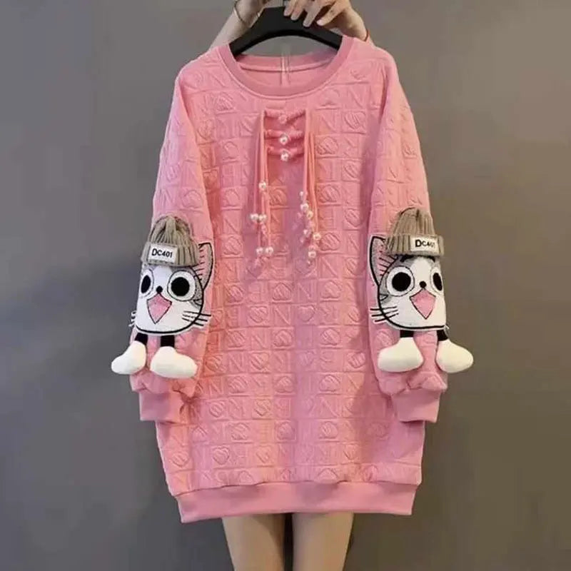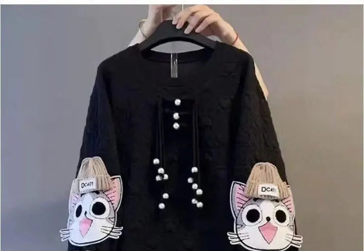 Spring Autumn Casual Loose Pearl Three dimensional Decoration Pullovers Chic ...