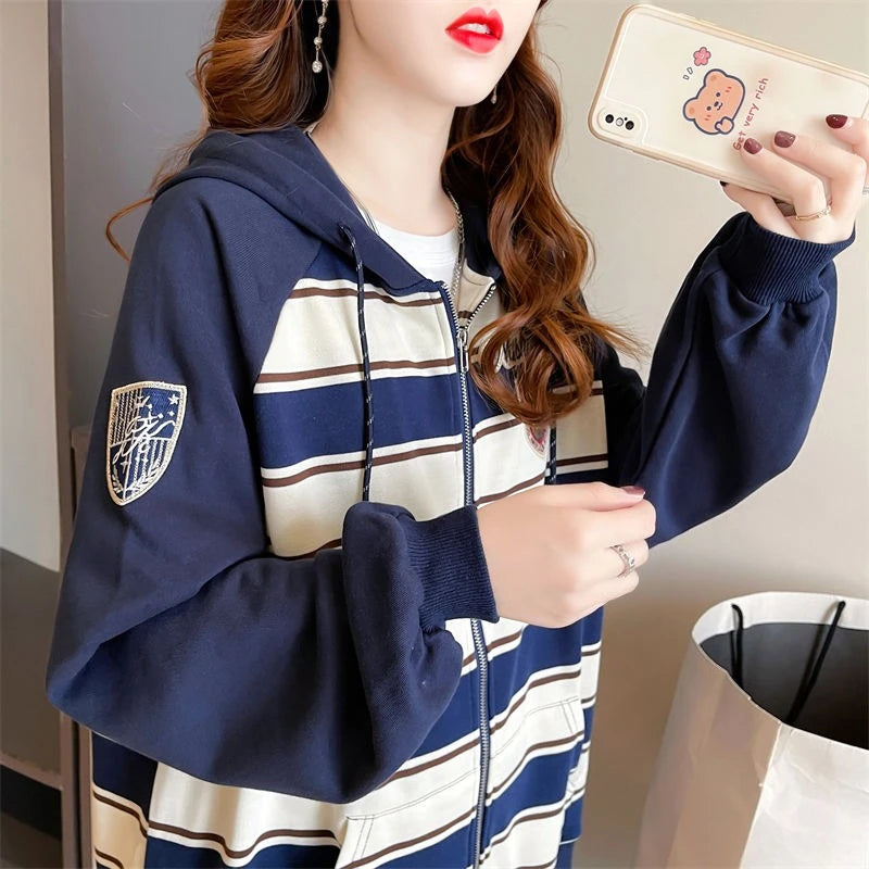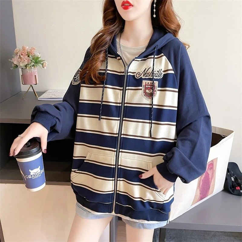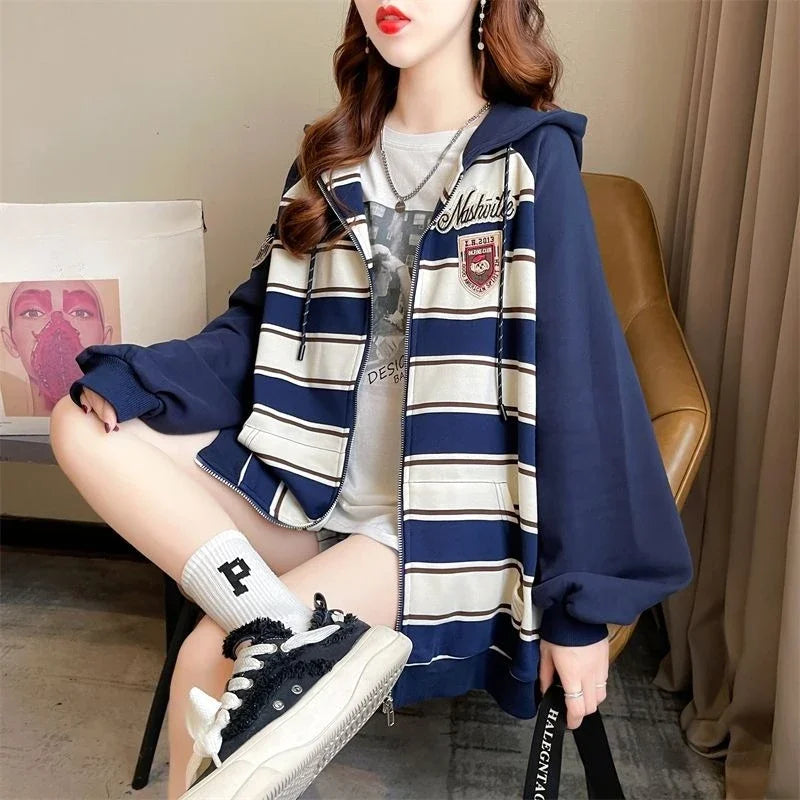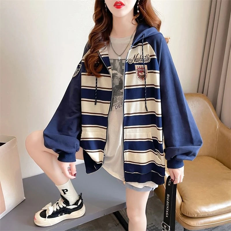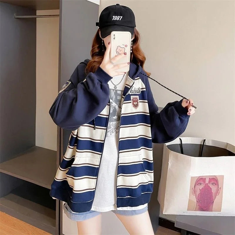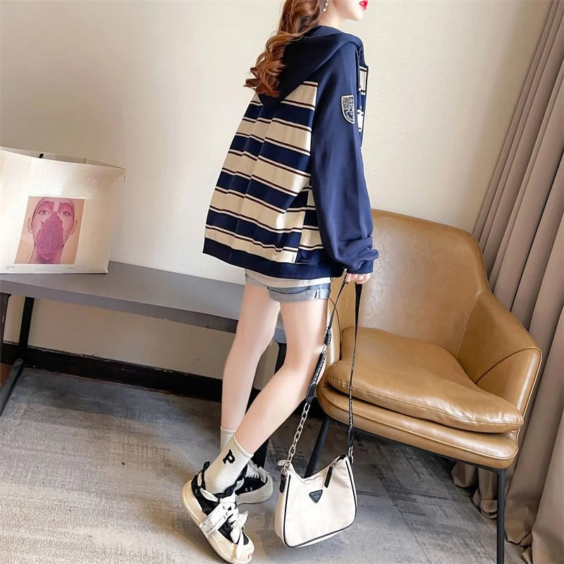 Striped Women s Hoodies Sweatshirts Pocket Female Hooded Top Essential Emo Yo...