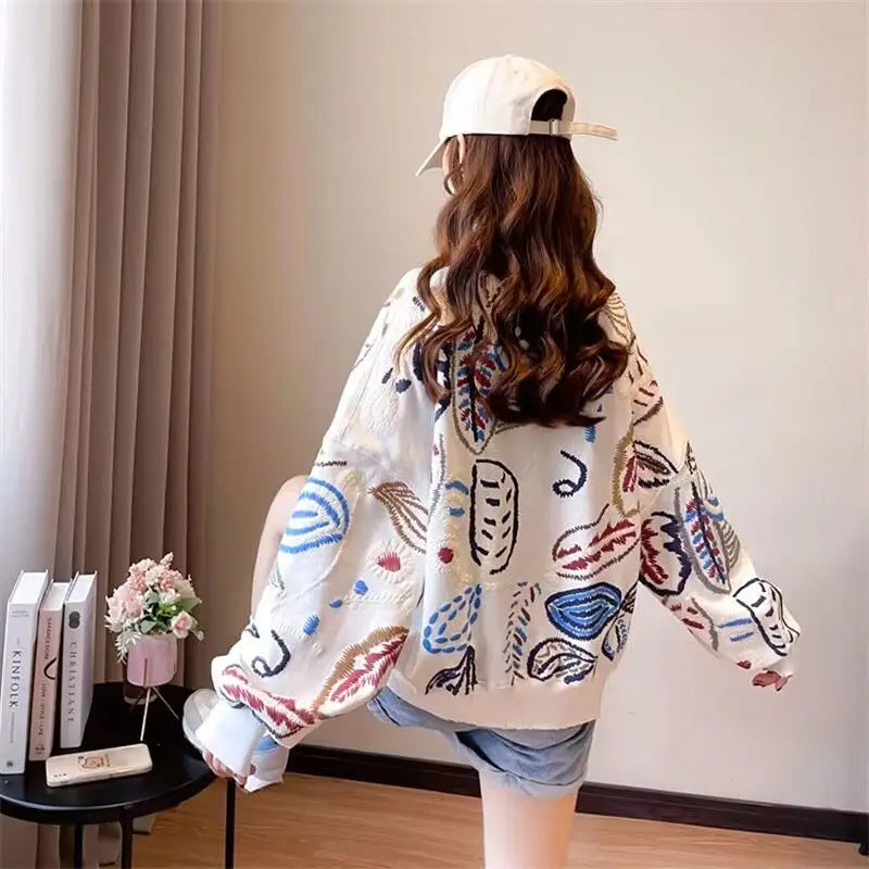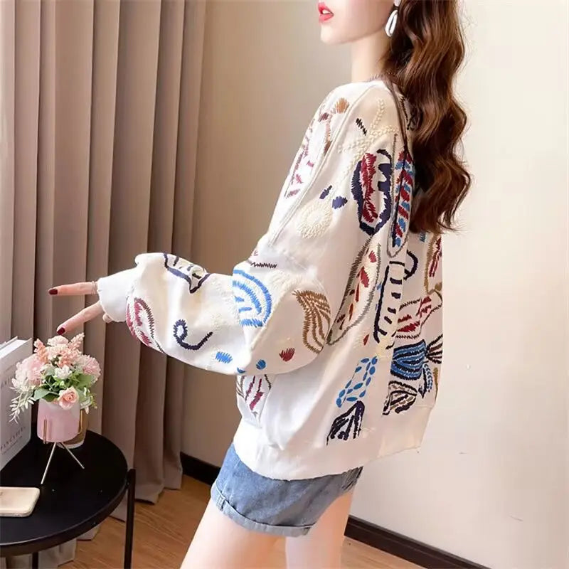Sweatshirt Thin Round Neck Print Medium to Long Fashionable Women s Clothing ...