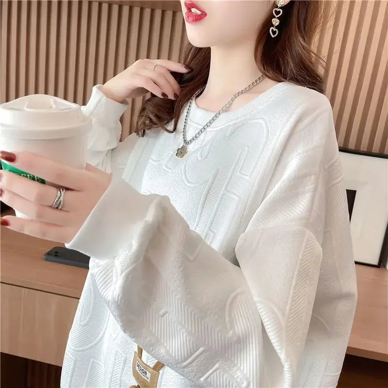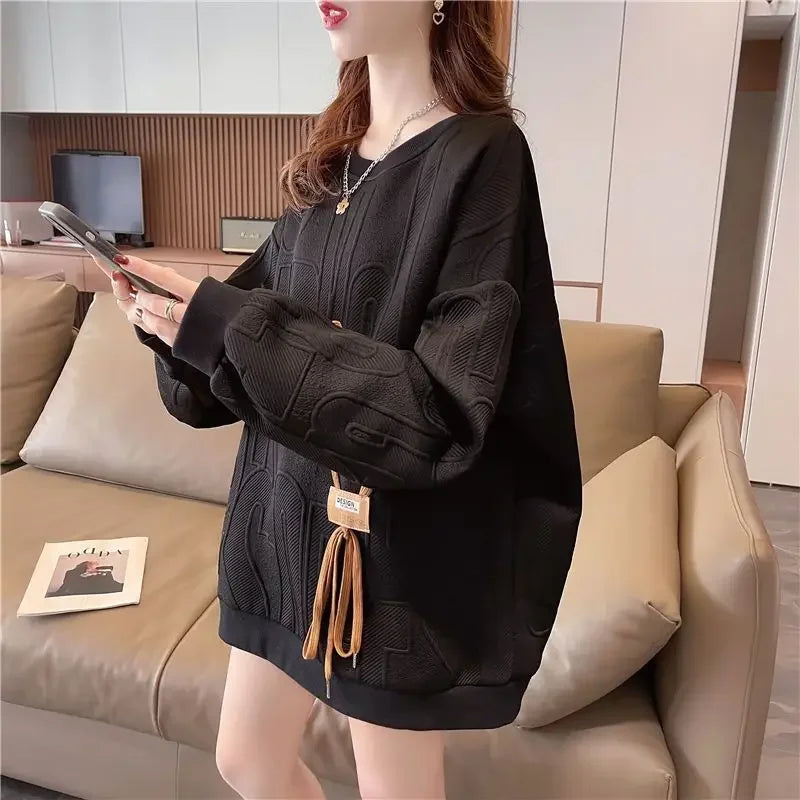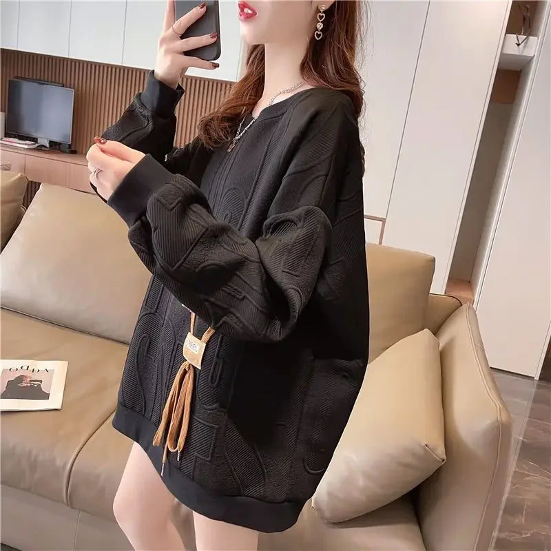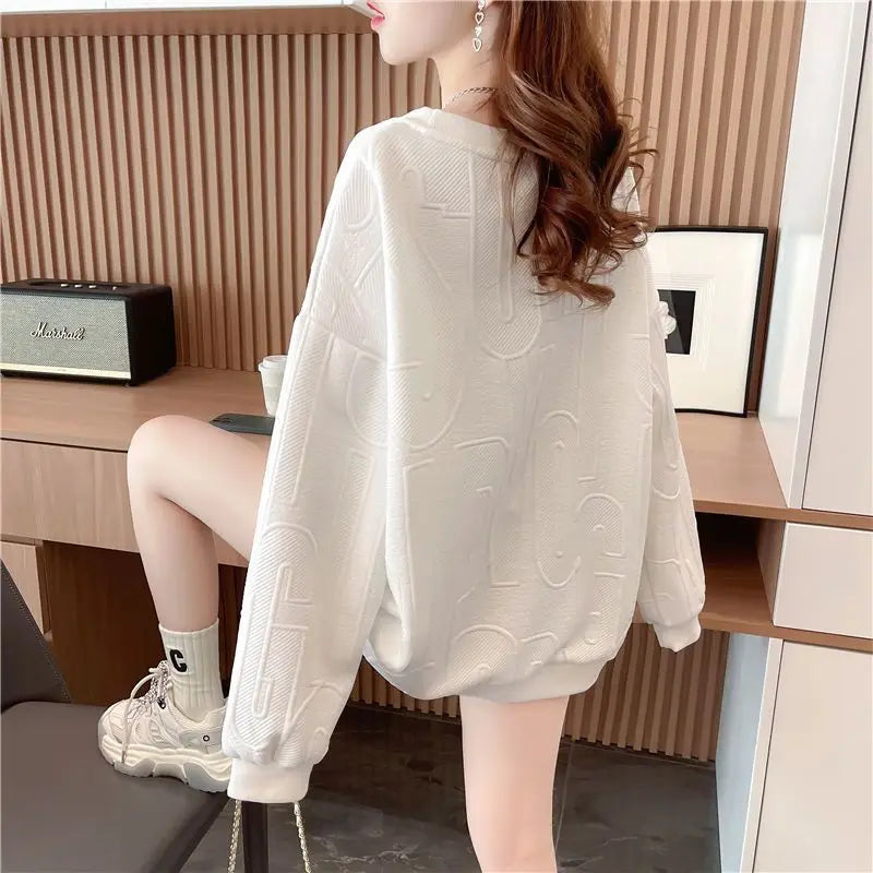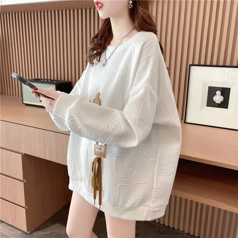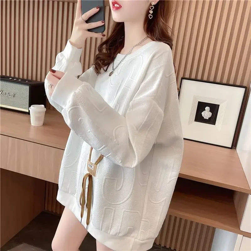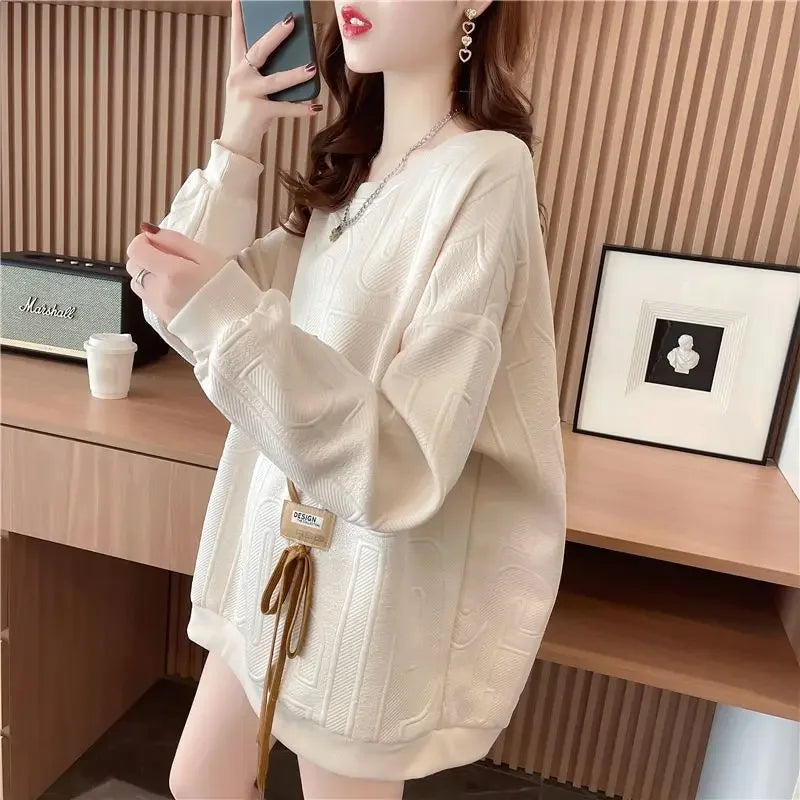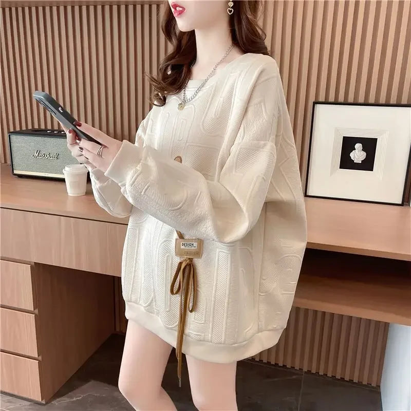 Thin Sweatshirt Women Mid Length Loose Round Neck Sweatshirts
