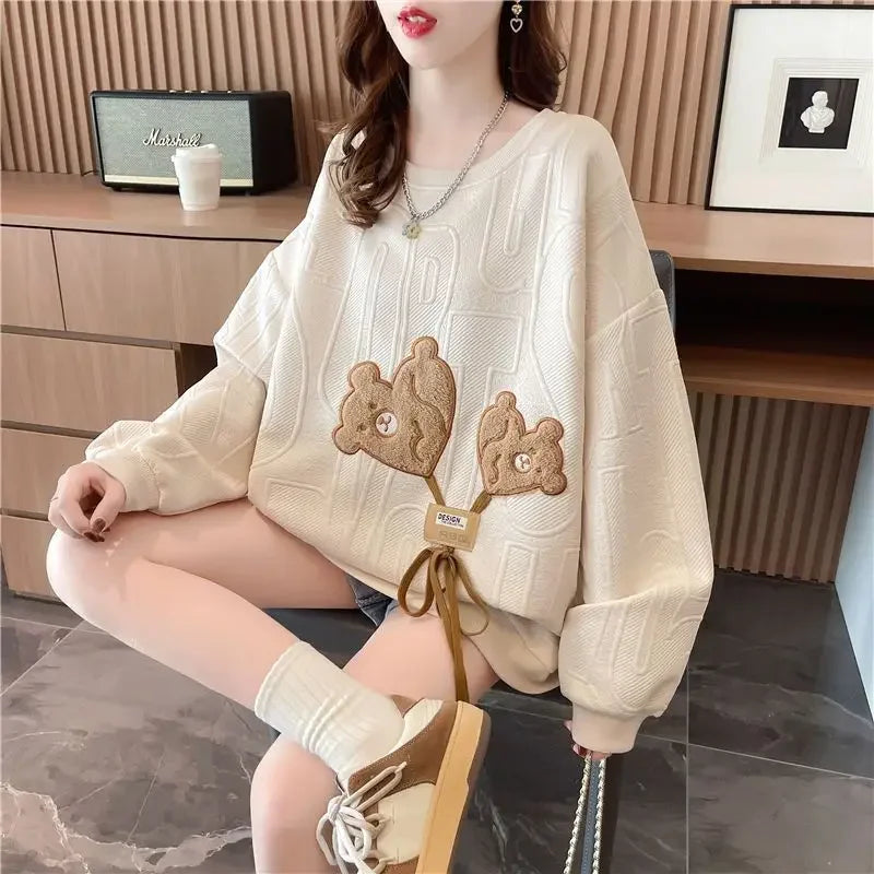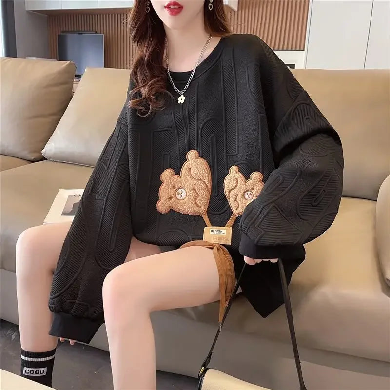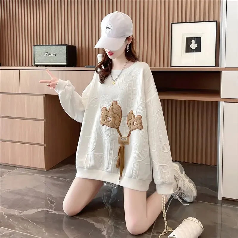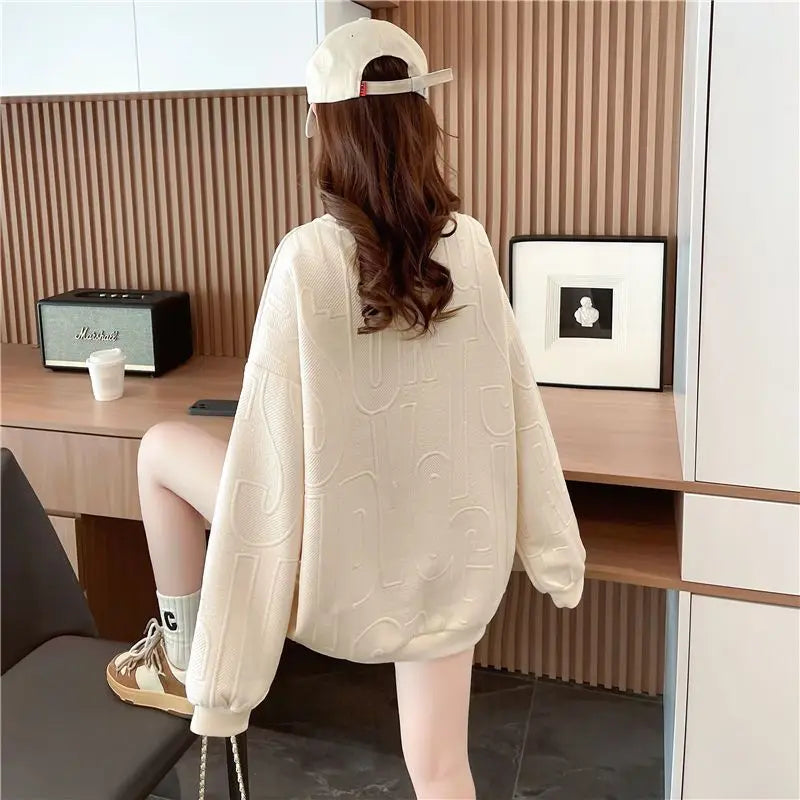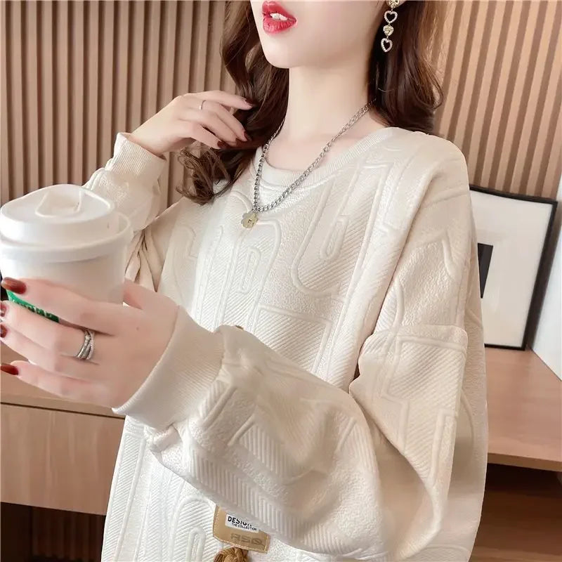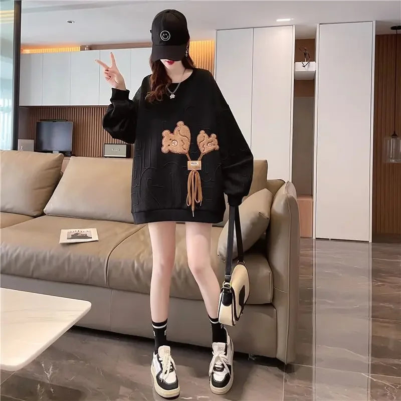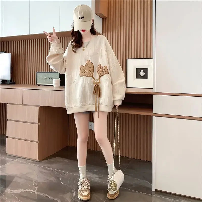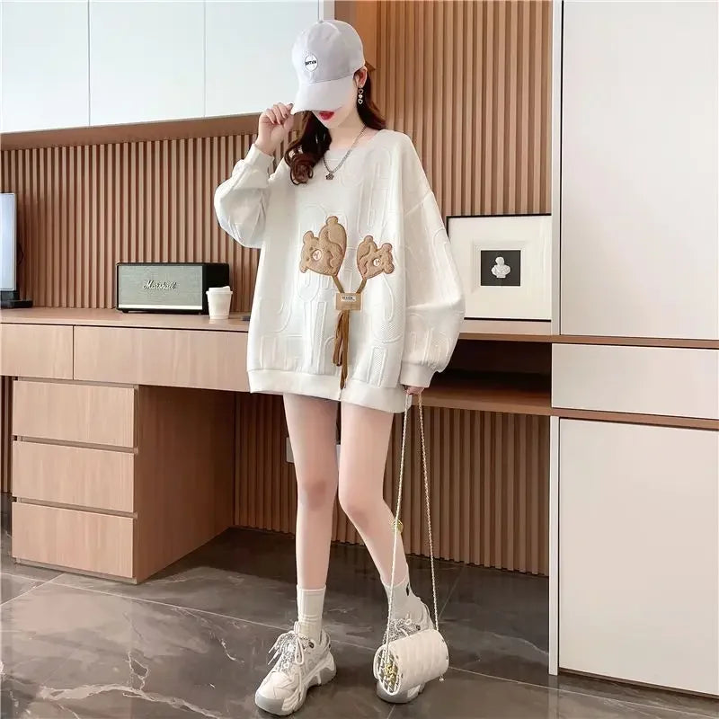 Thin Sweatshirt Women Mid Length Loose Round Neck Sweatshirts