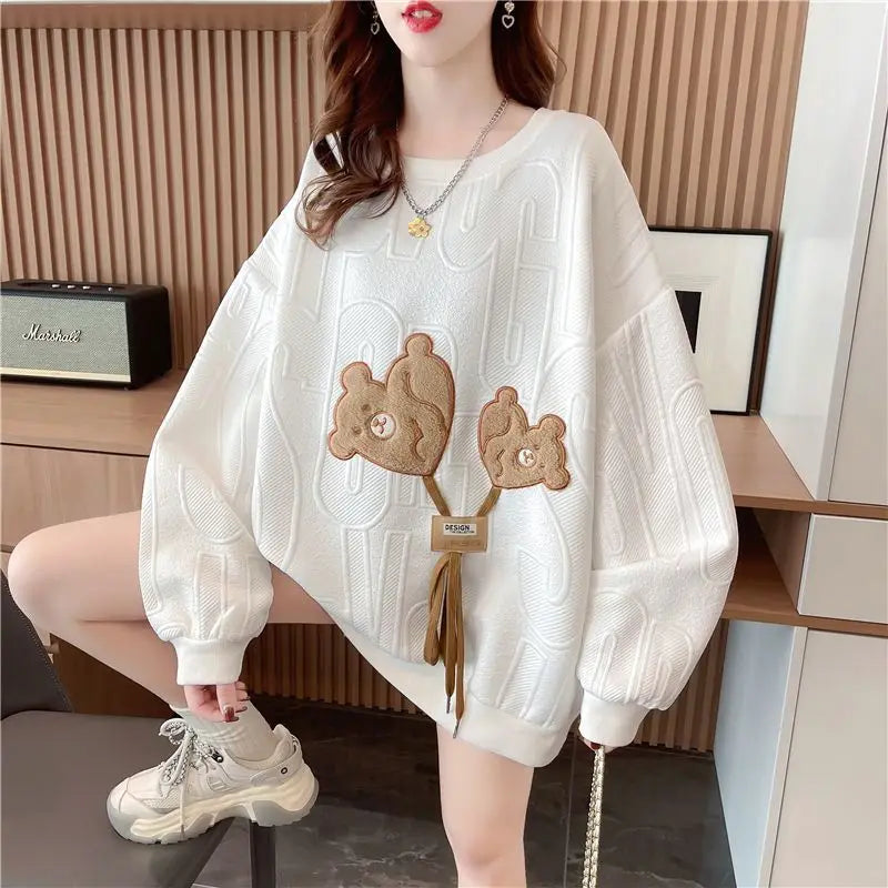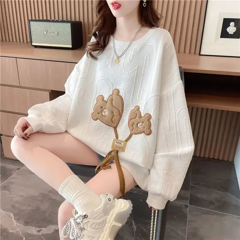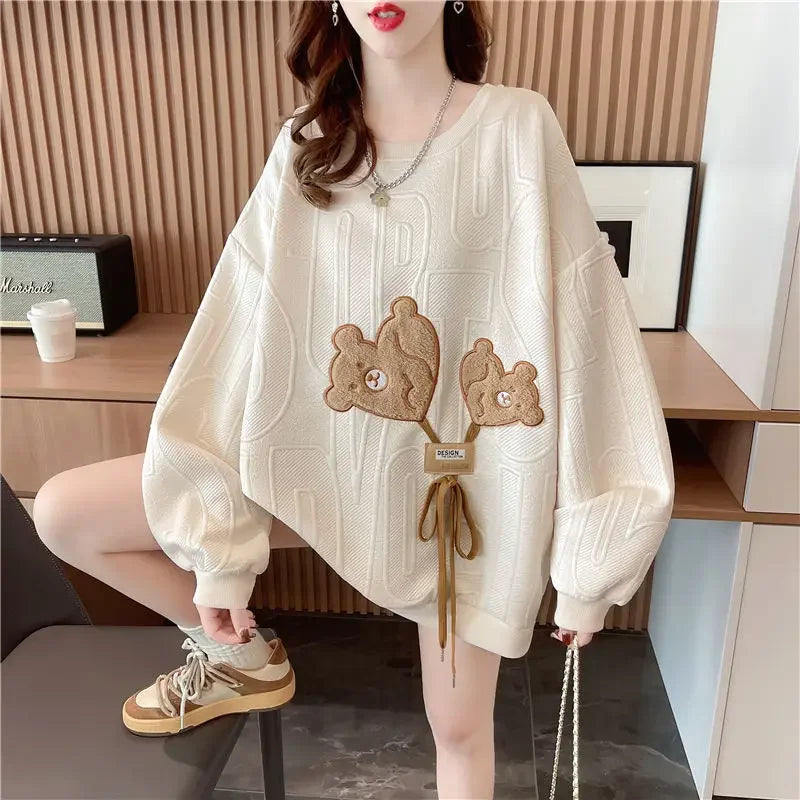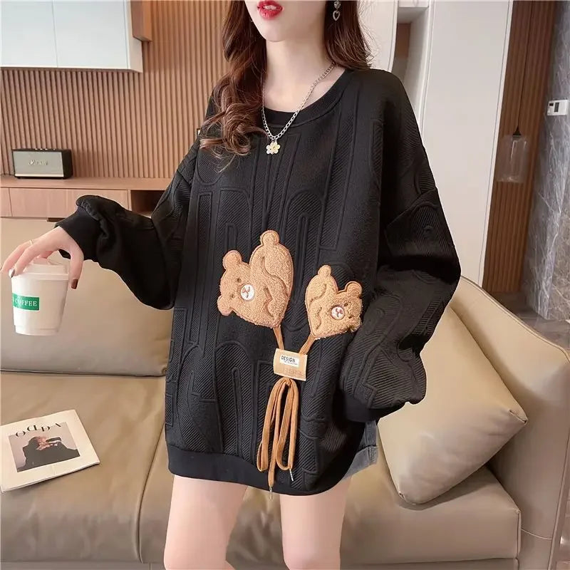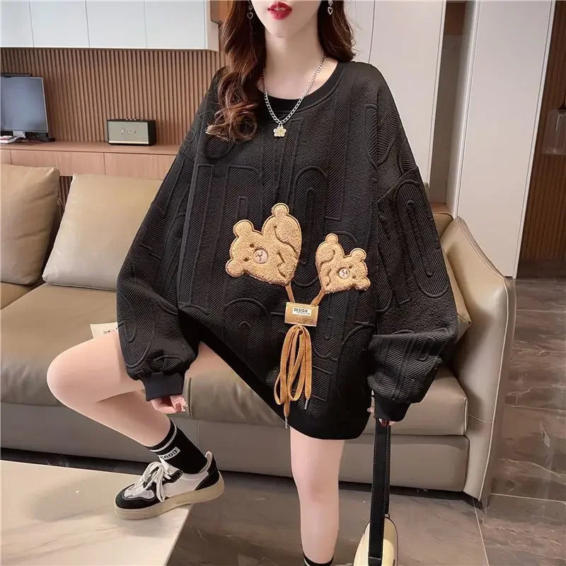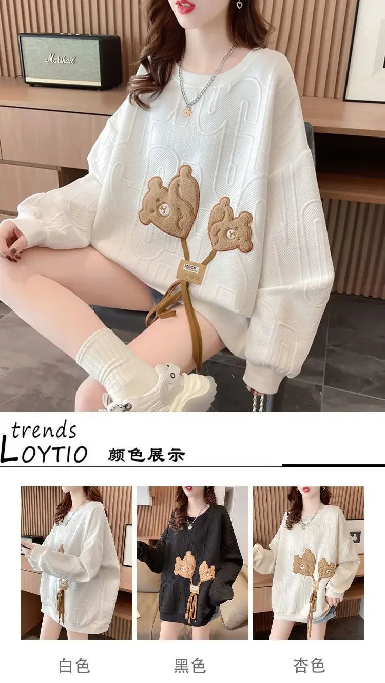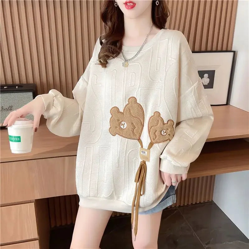 Thin Sweatshirt Women Mid Length Loose Round Neck Sweatshirts