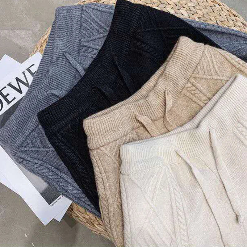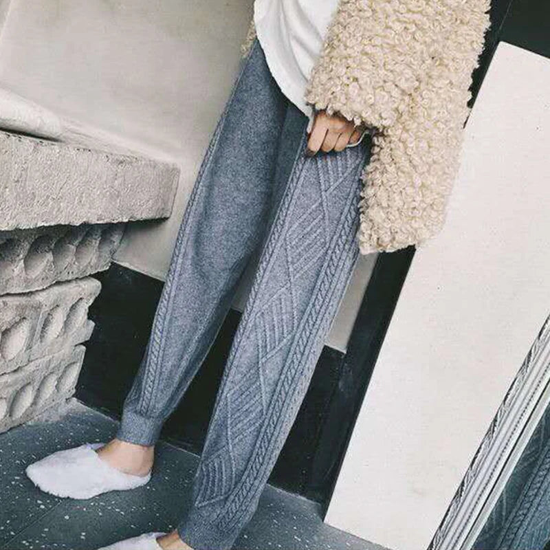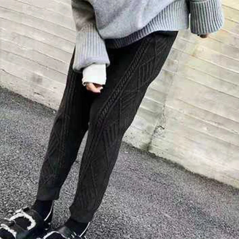 Twists Knitted Wide Leg Pants Women Autumn Winter Lace Up High Waist Thick