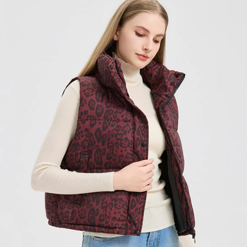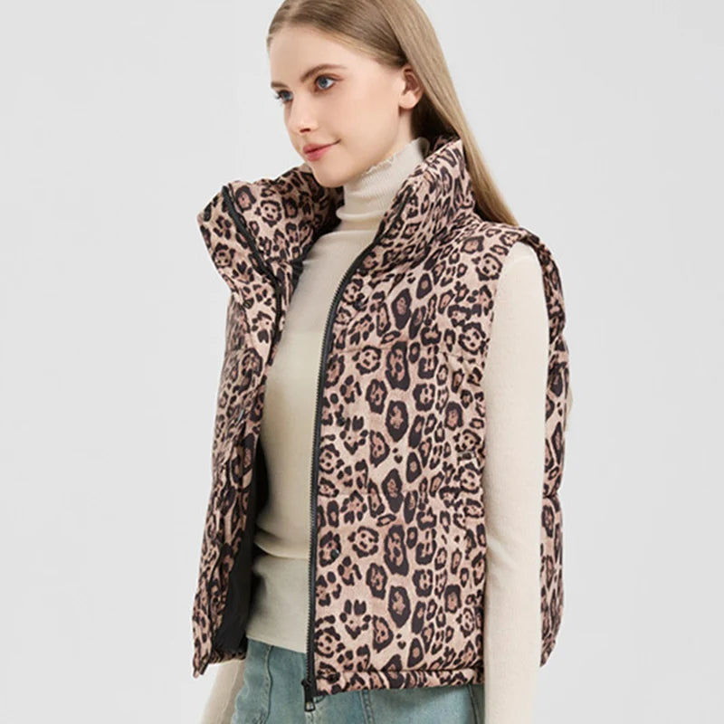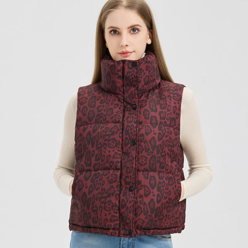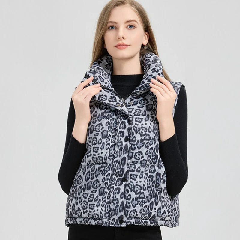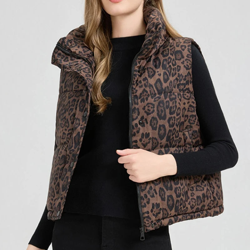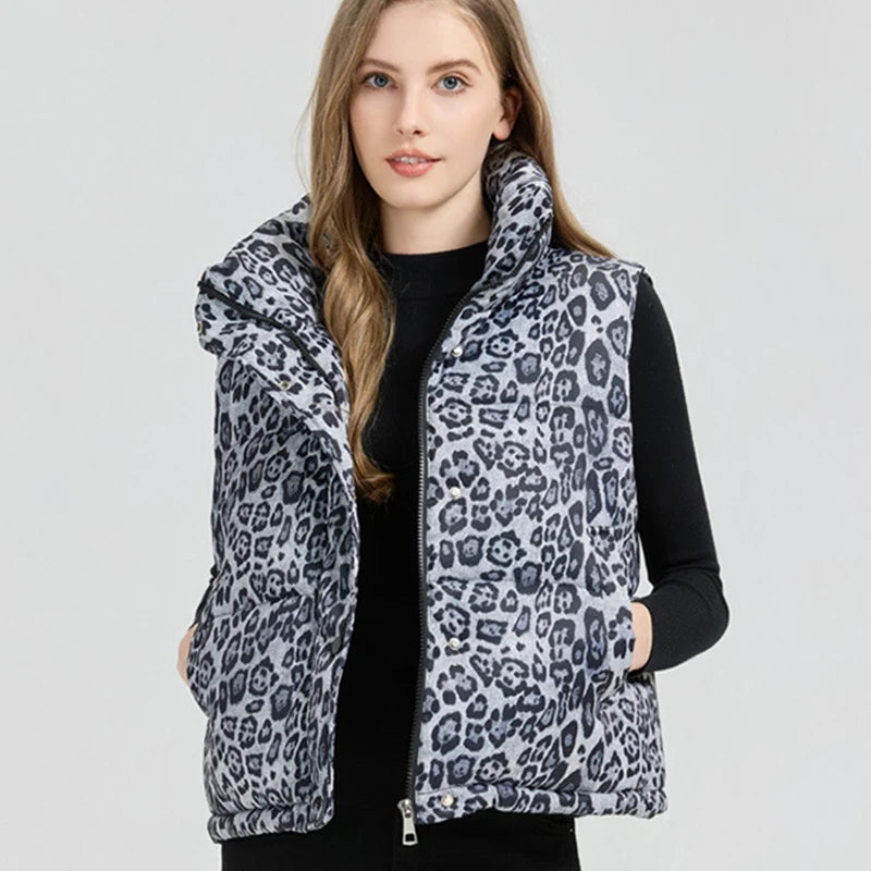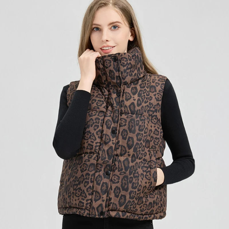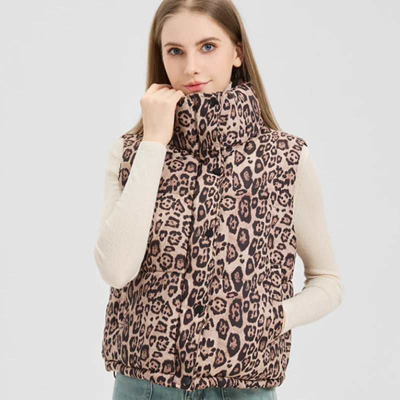 Vintage Leopard Cotton Vest Women Spring Autumn Stand Collar Sleeveless